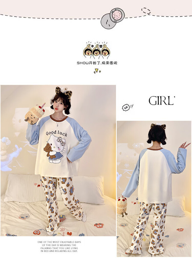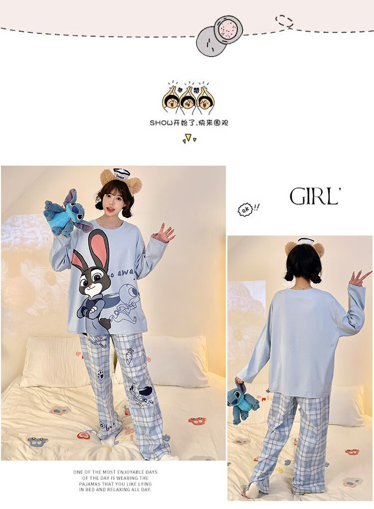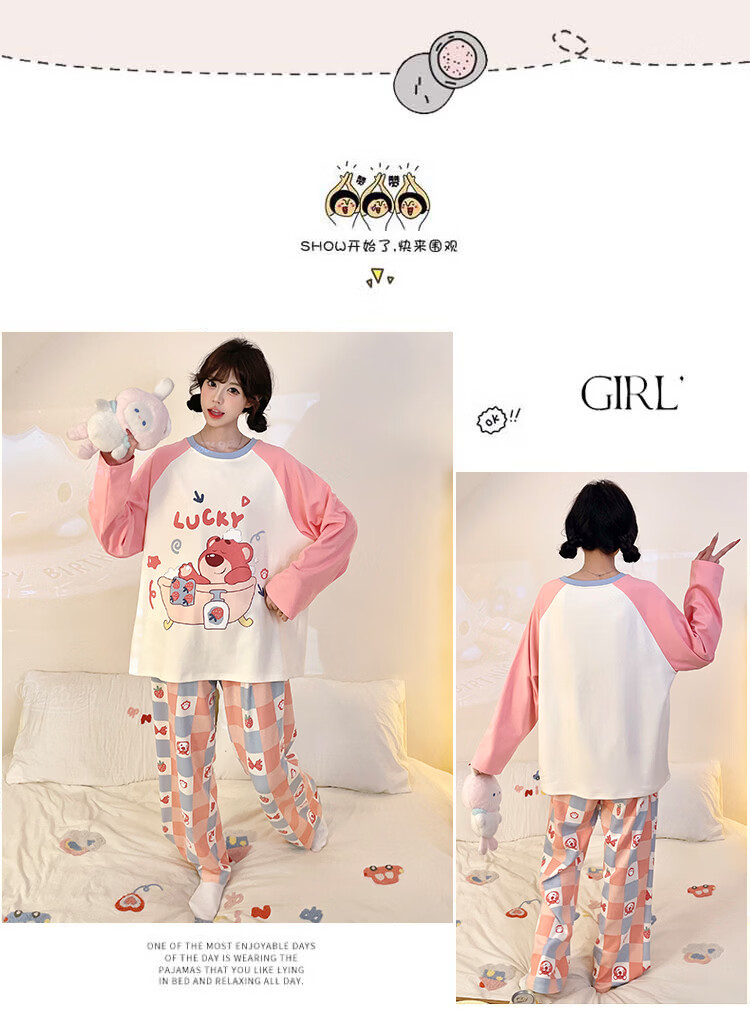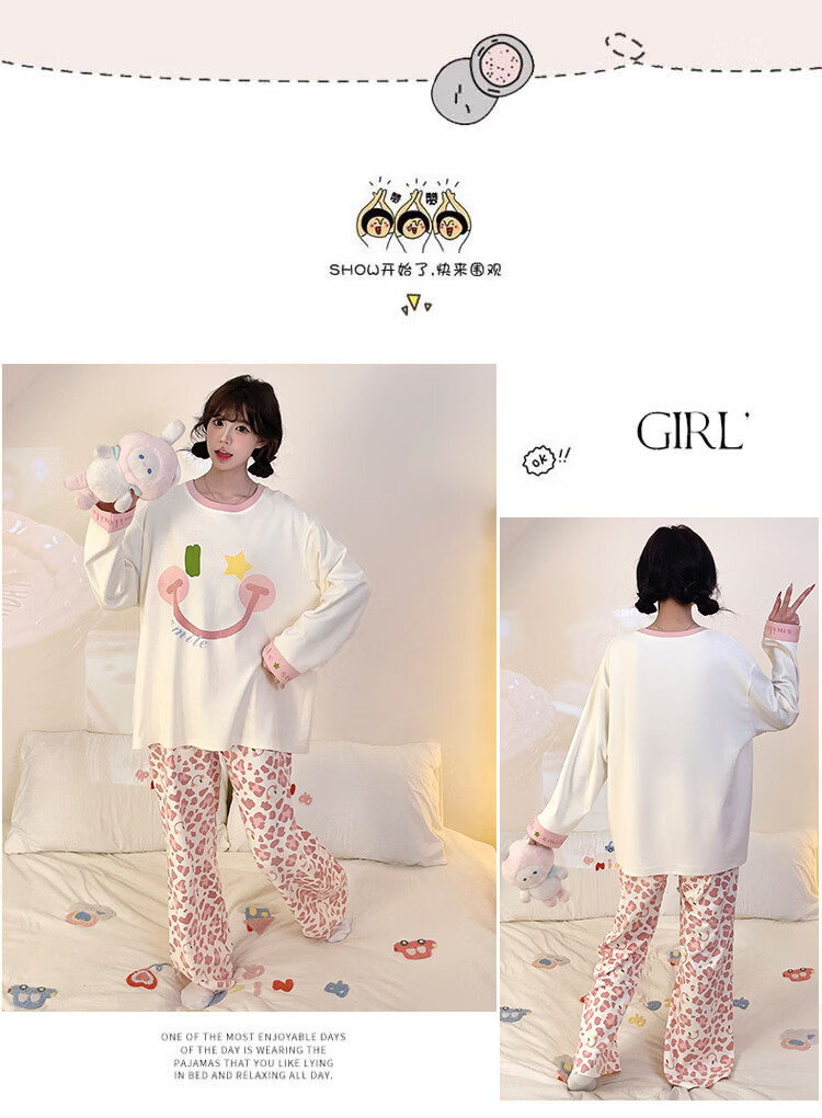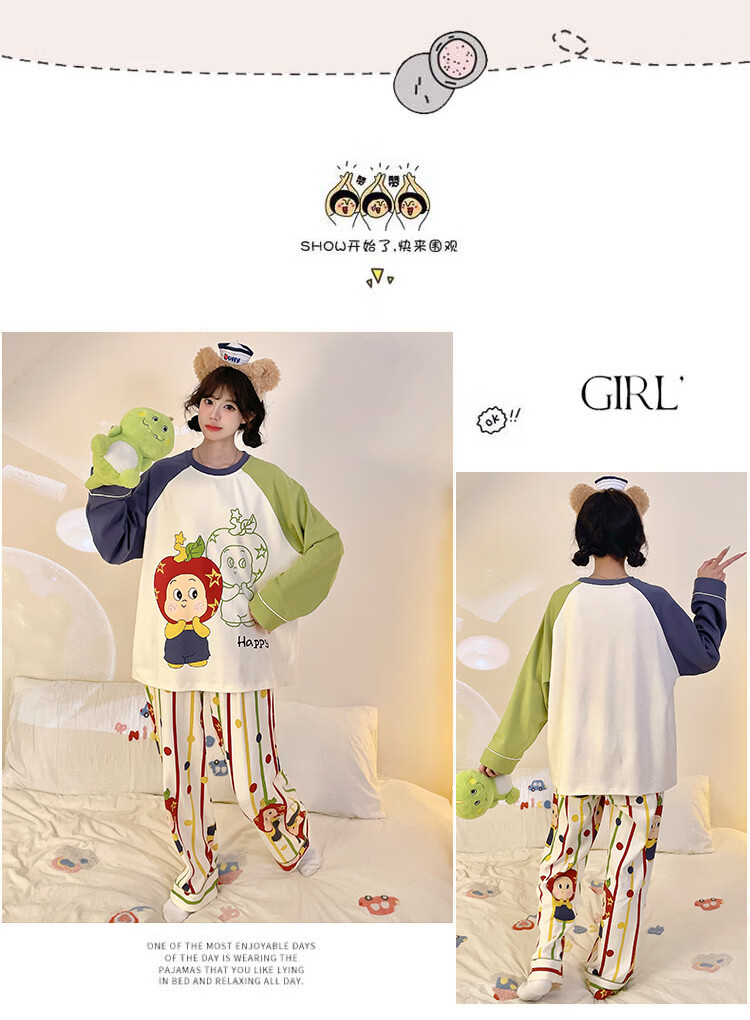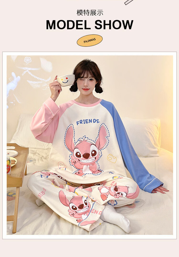 萧淑妃睡衣女春秋季ins风卡通蜡笔小新可爱少女学生大码纯棉家居服套装 星星人 3XL