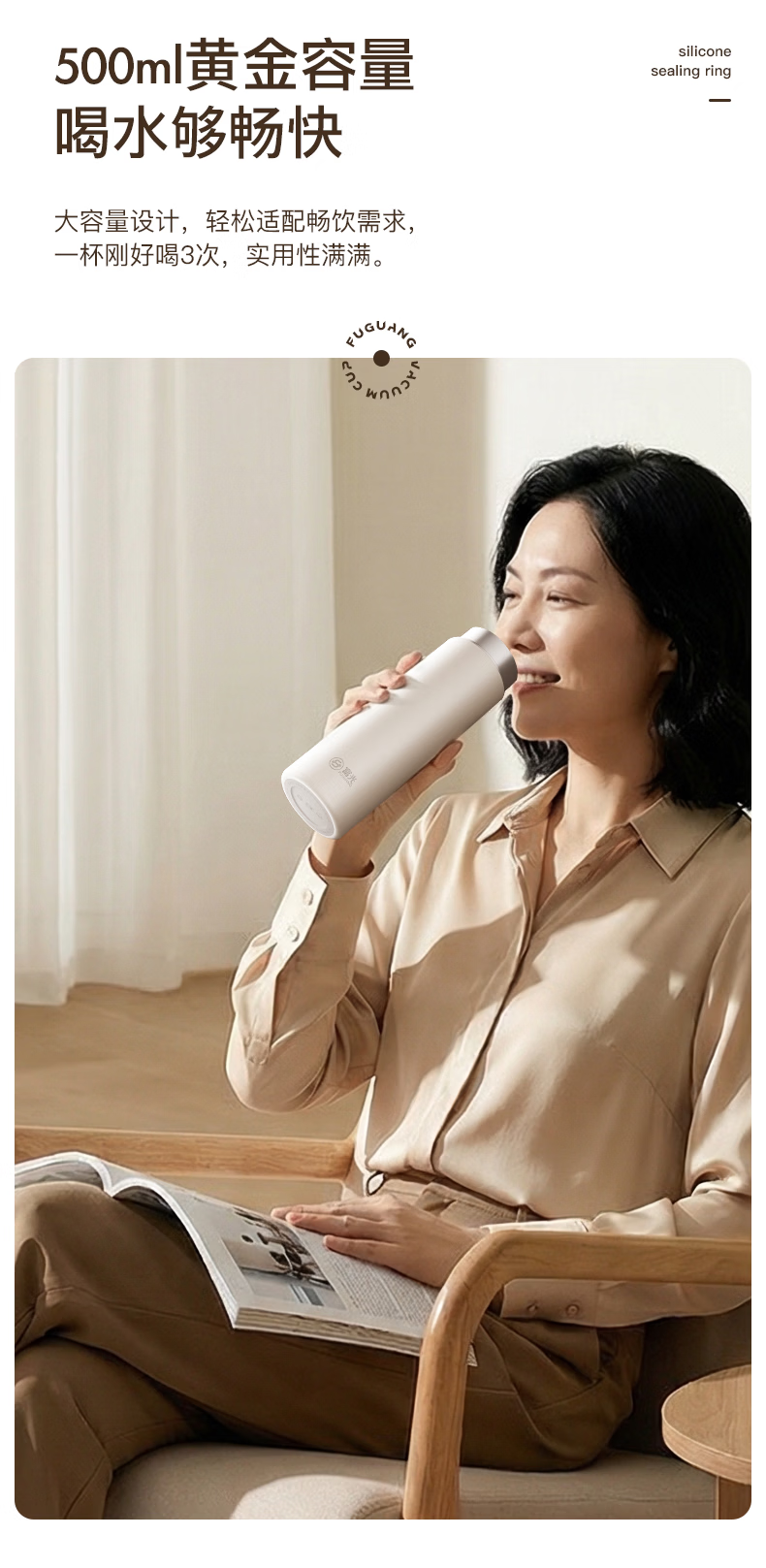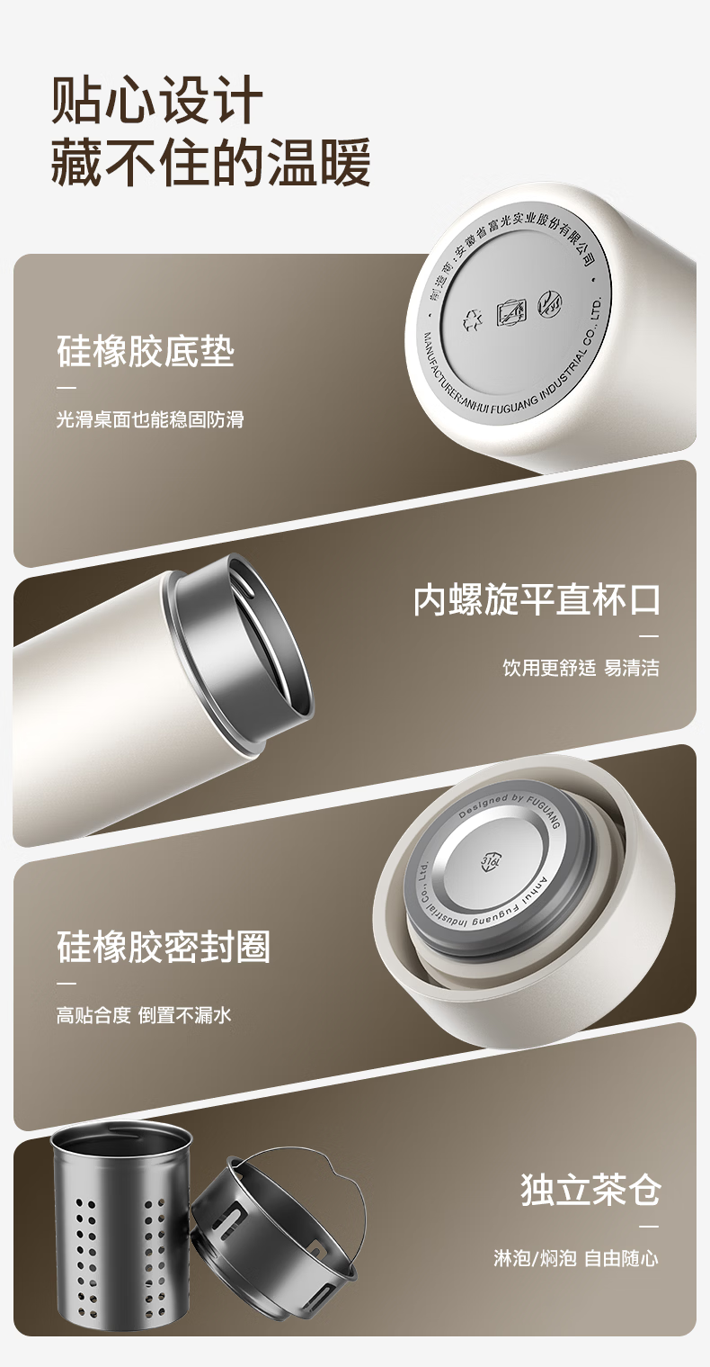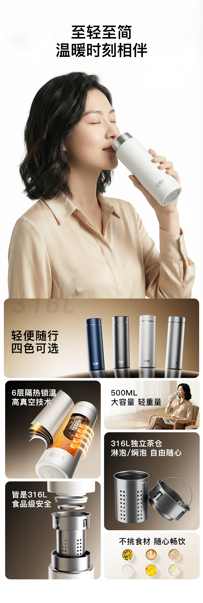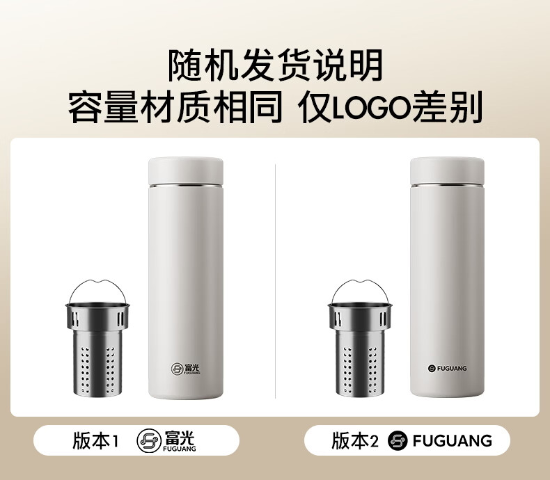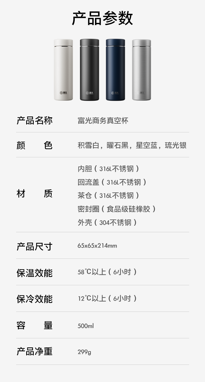 富光保温杯316L不锈钢水杯 商务车载茶水分离泡茶杯 直身大容量水杯 500ML 【旋盖 316L内胆】 琉光银