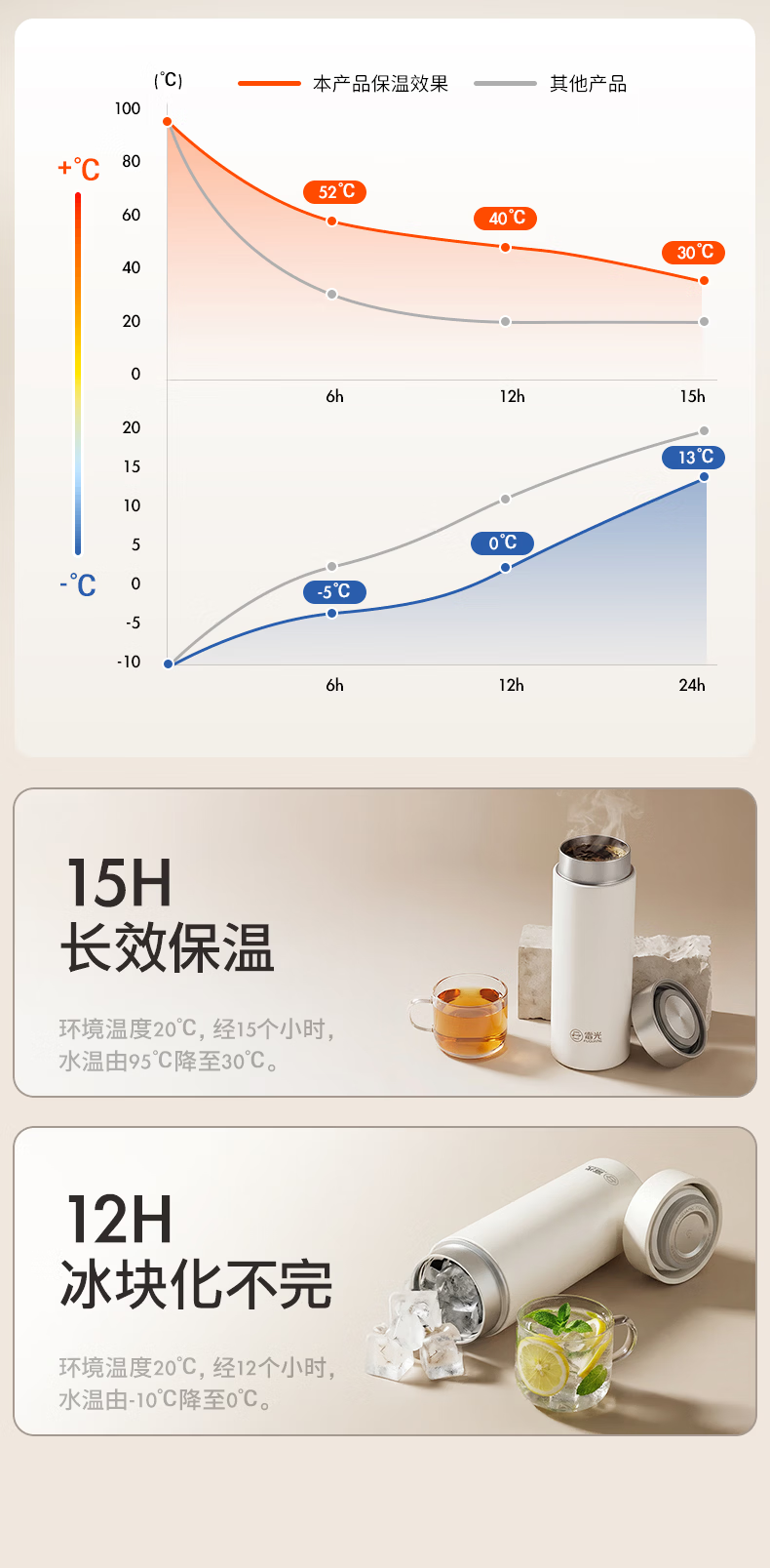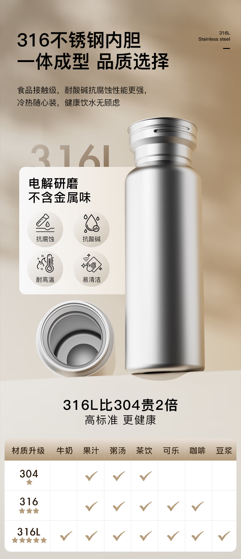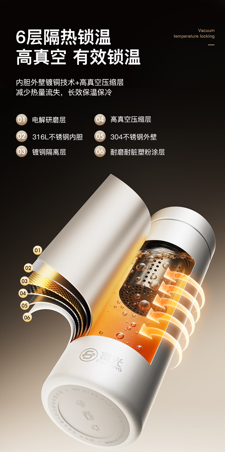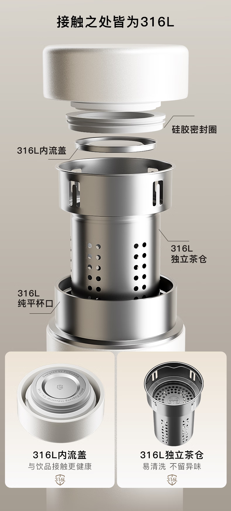 富光保温杯316L不锈钢水杯 商务车载茶水分离泡茶杯 直身大容量水杯 500ML 【旋盖 316L内胆】 琉光银