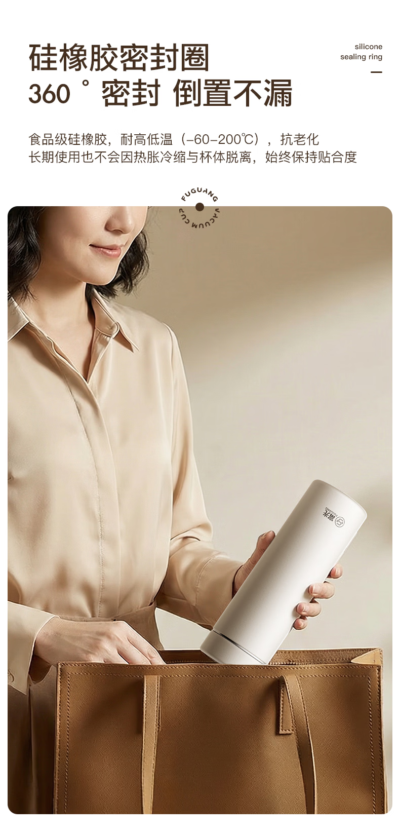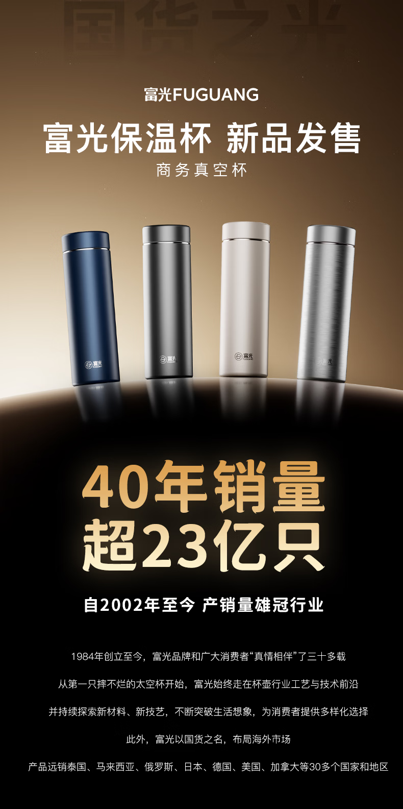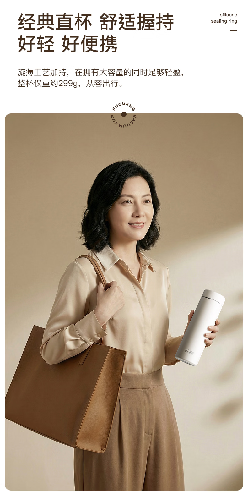 富光不锈钢保温杯马克水杯子大容量办公泡茶咖啡男女士便携简约带盖 黑色420ml