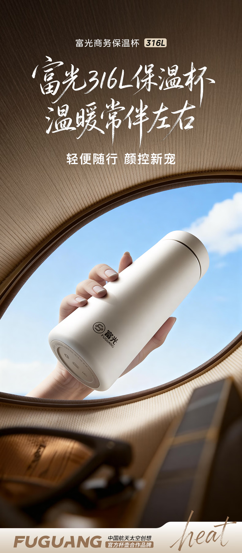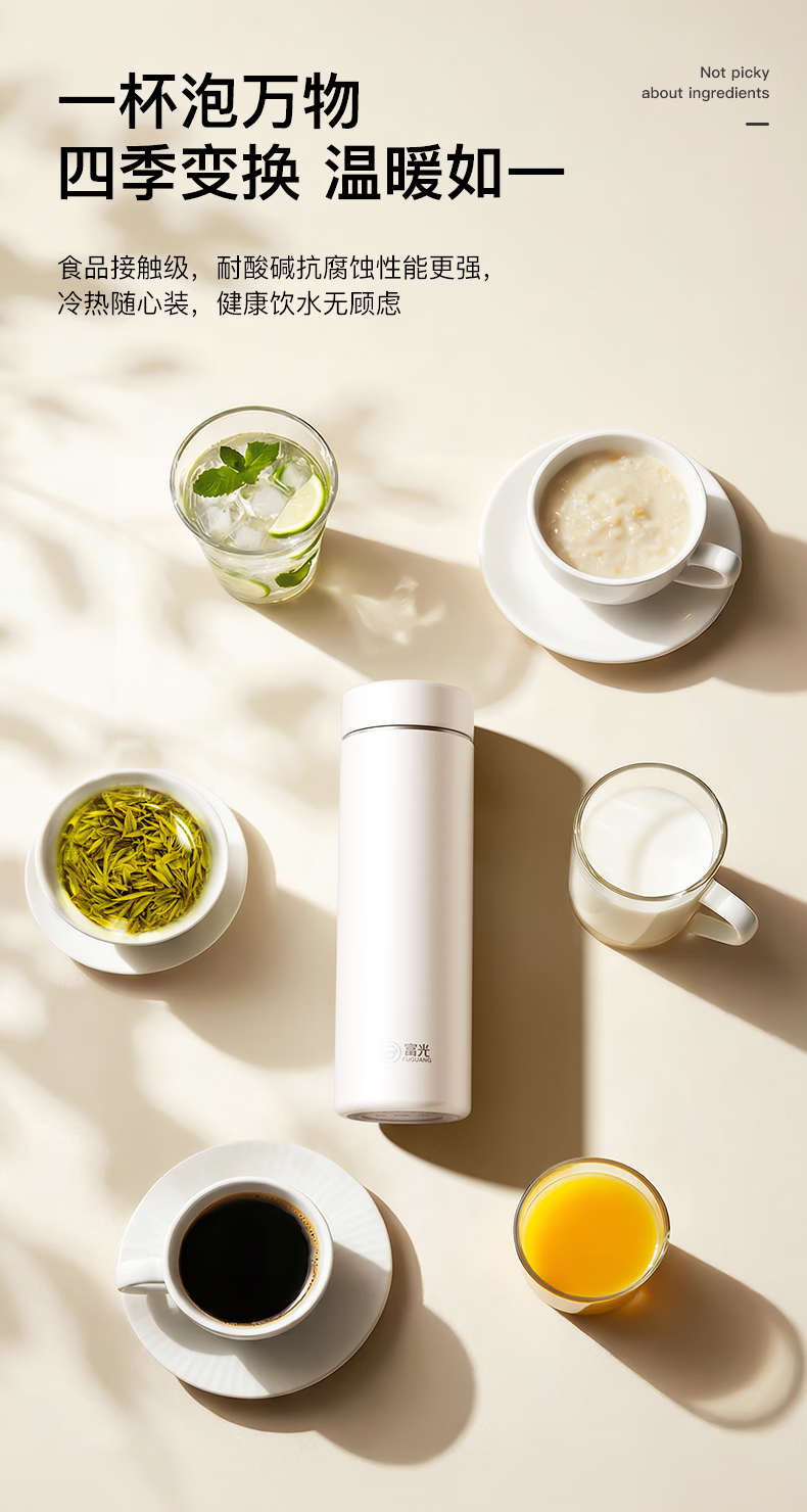 富光保温杯女高颜值大容量水杯304不锈钢便携学生水杯子星空 白色350ml