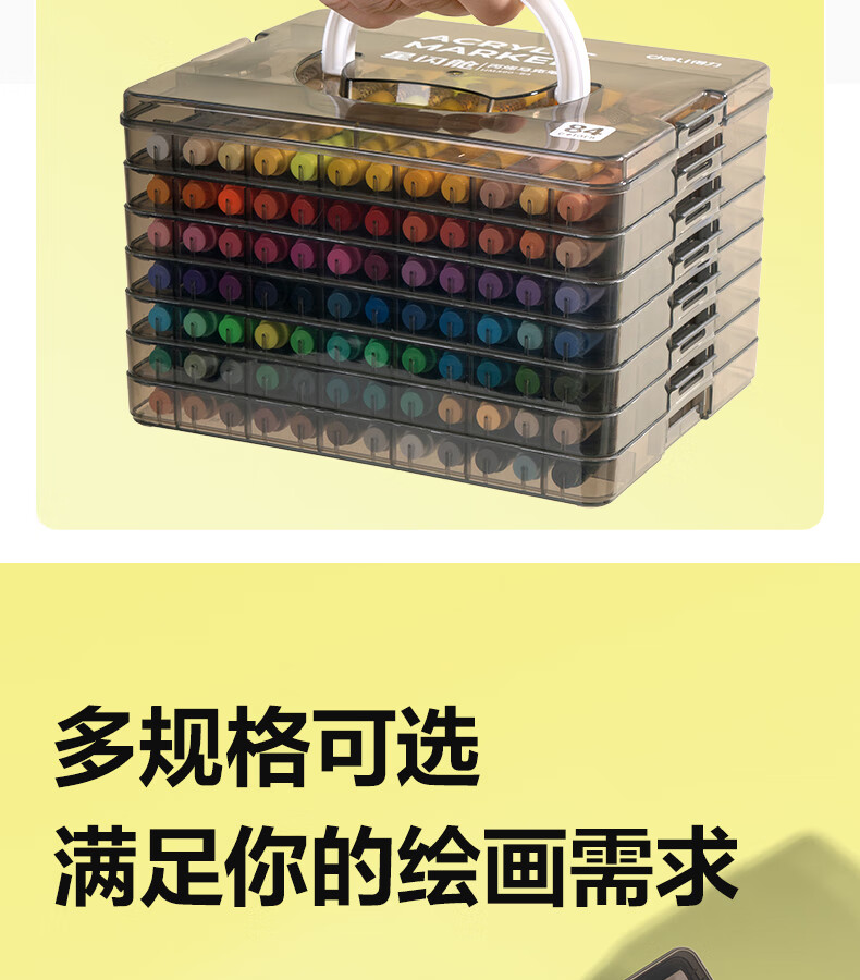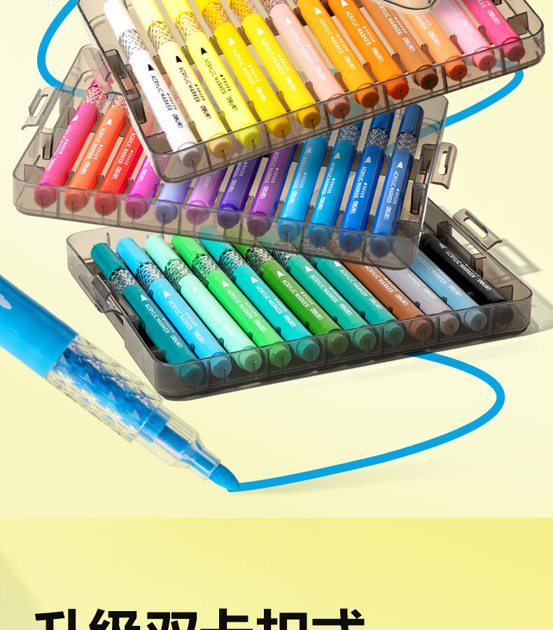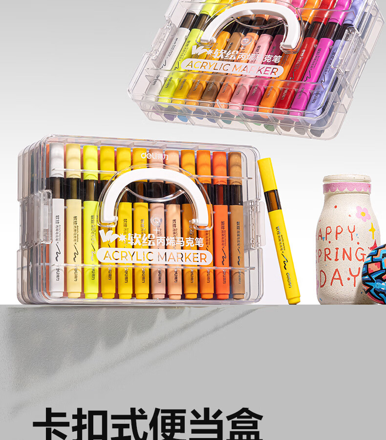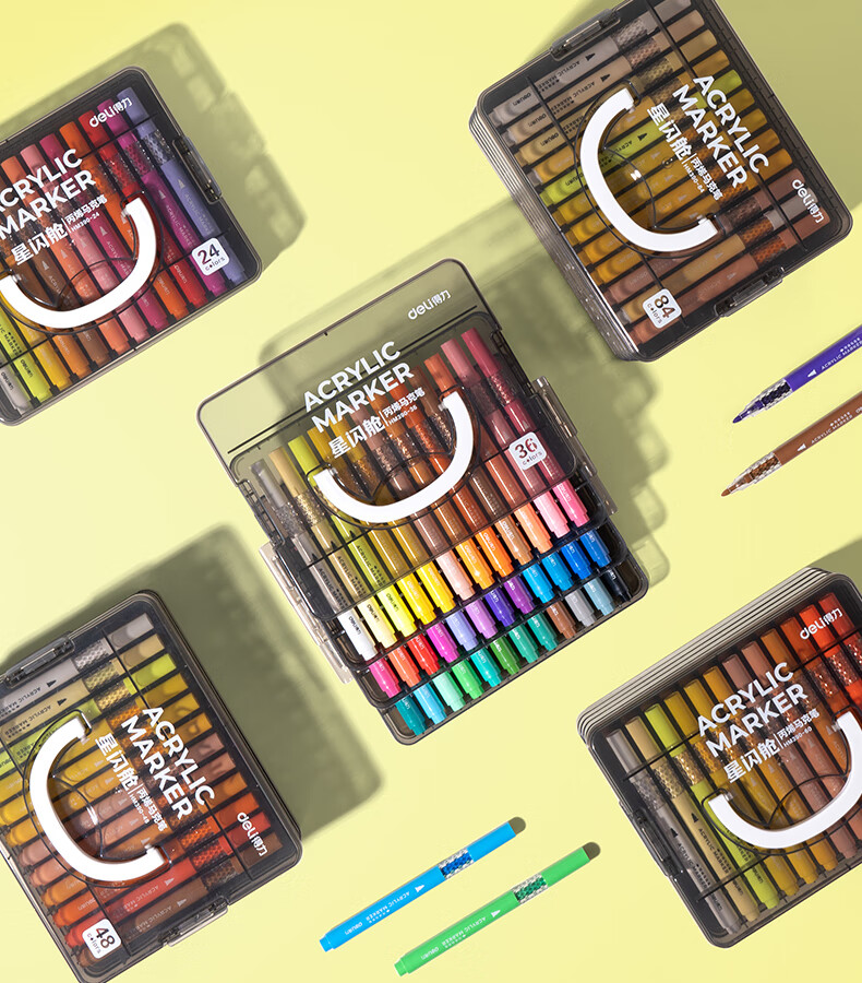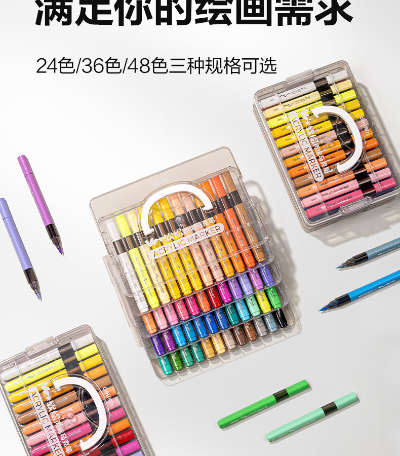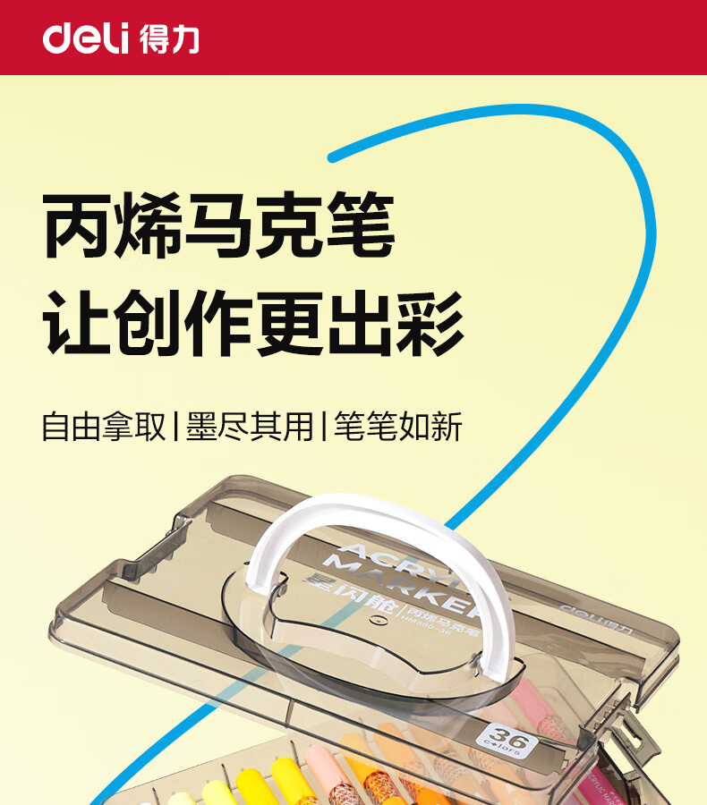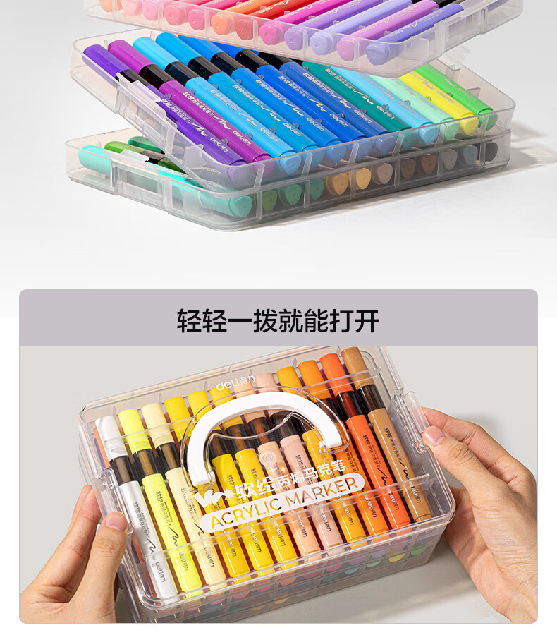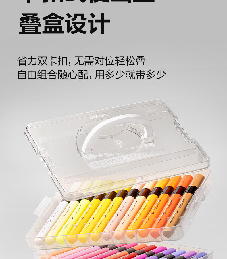 得力丙烯马克笔小蛮腰层叠盒便携收纳强覆盖力可水洗可叠色儿童小学生美术生绘画用幼儿园透明可视笔杆 【36色丨小蛮腰层叠盒】丙烯马克笔