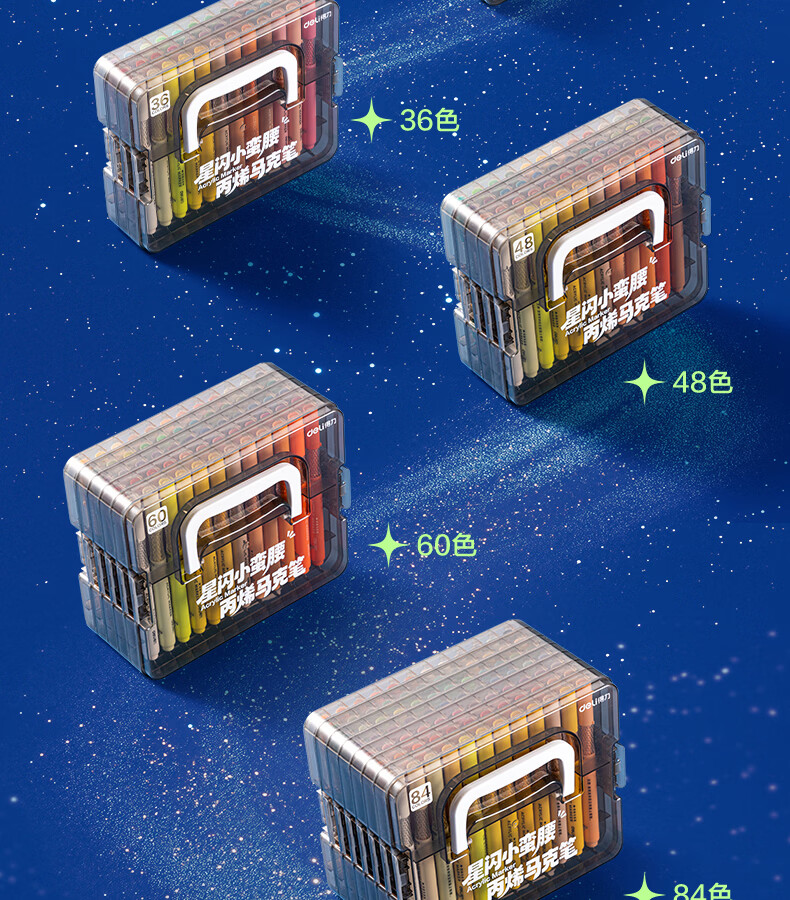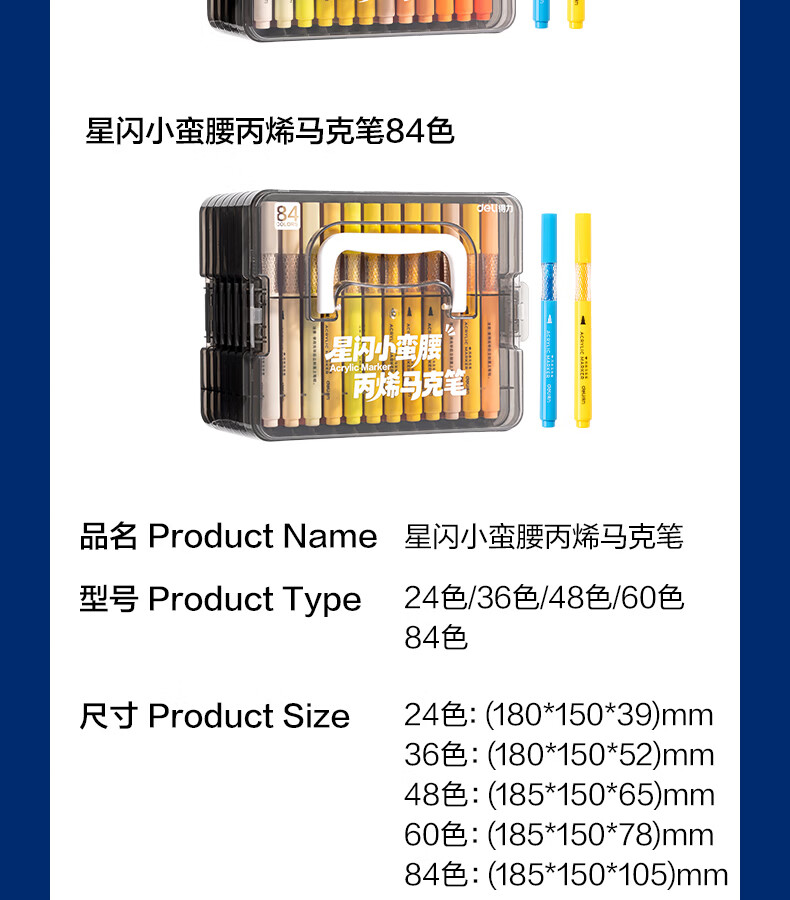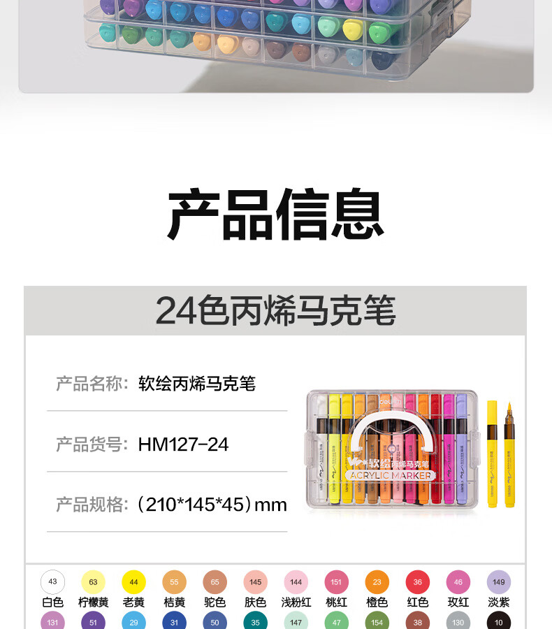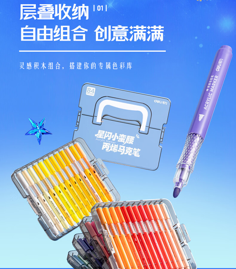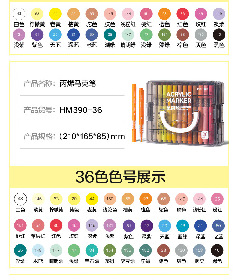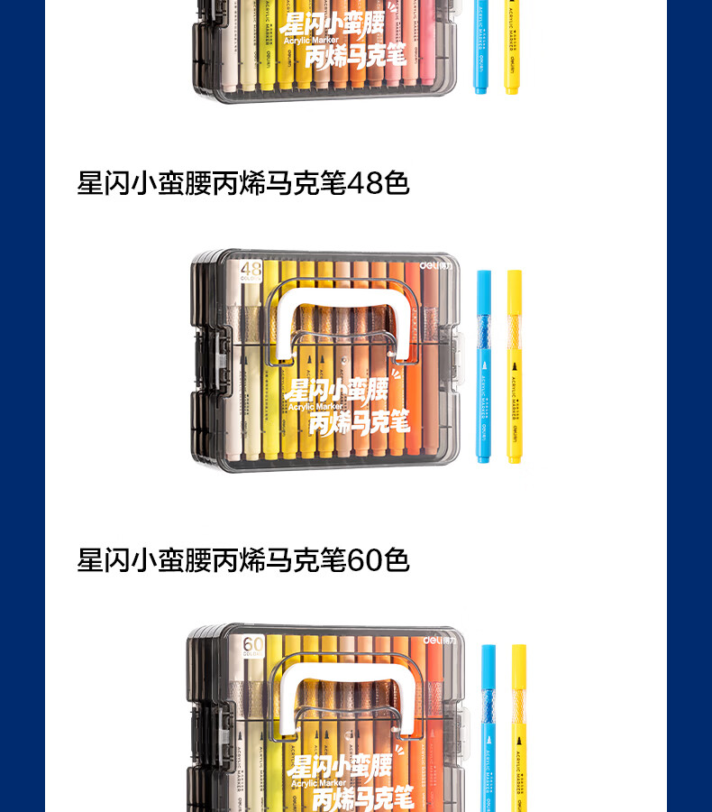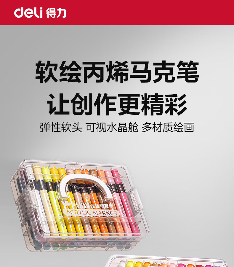 得力丙烯马克笔小蛮腰层叠盒便携收纳强覆盖力可水洗可叠色儿童小学生美术生绘画用幼儿园透明可视笔杆 【36色丨小蛮腰层叠盒】丙烯马克笔