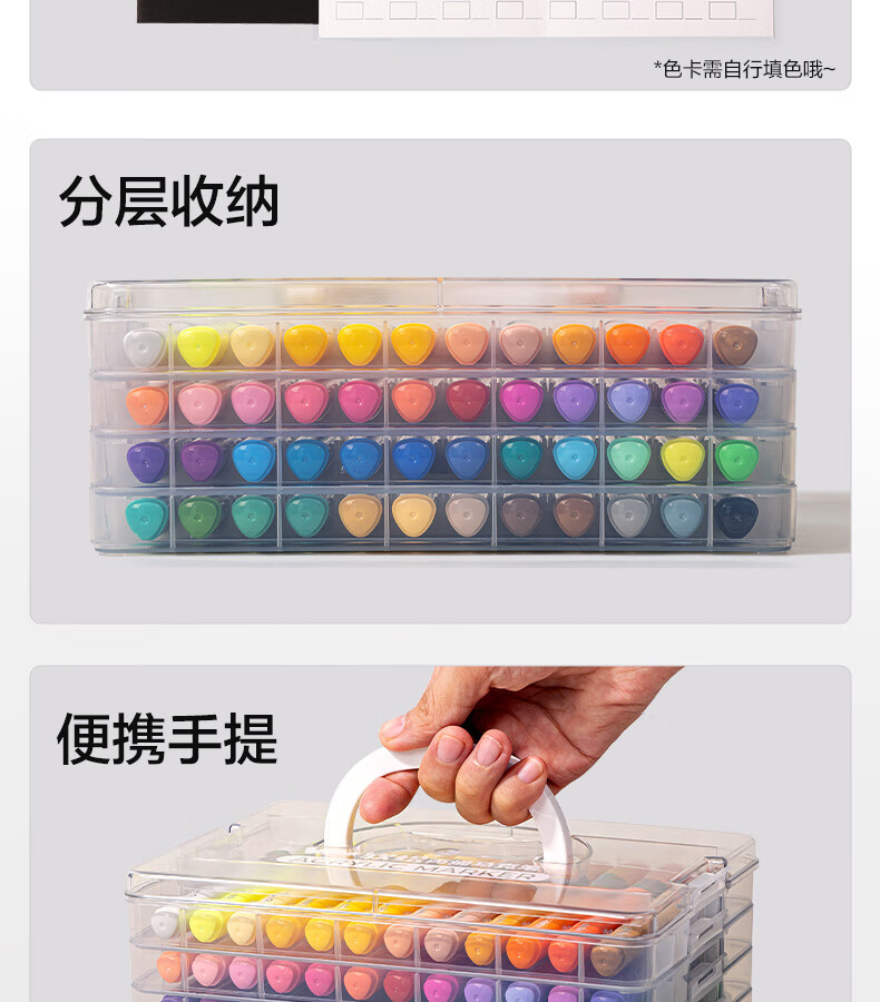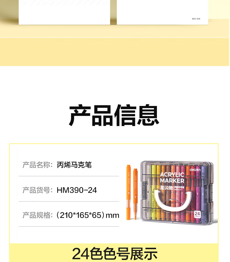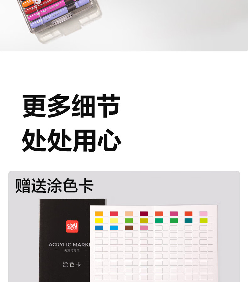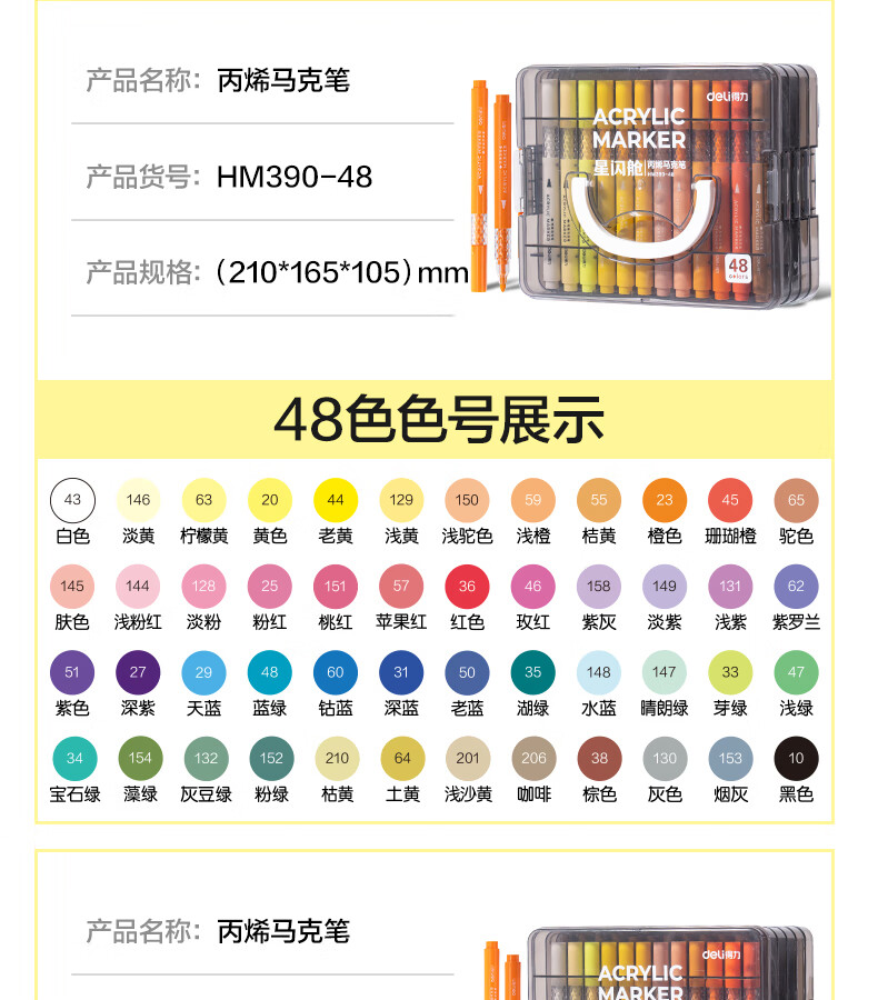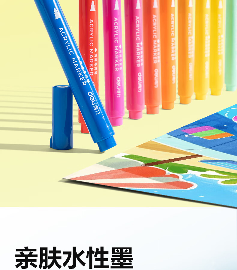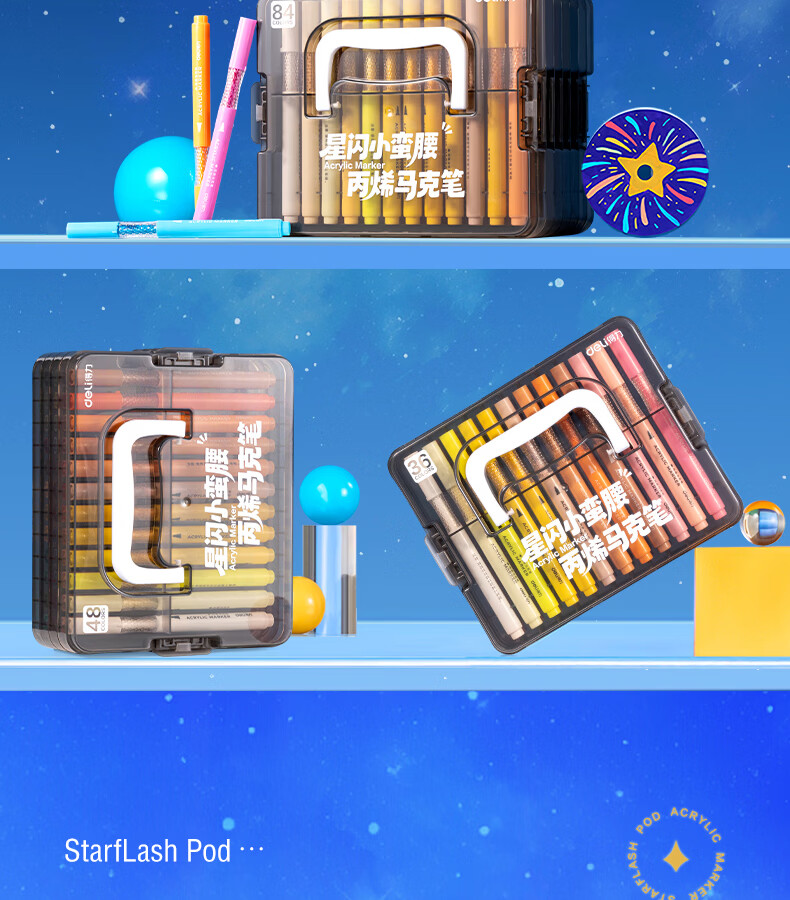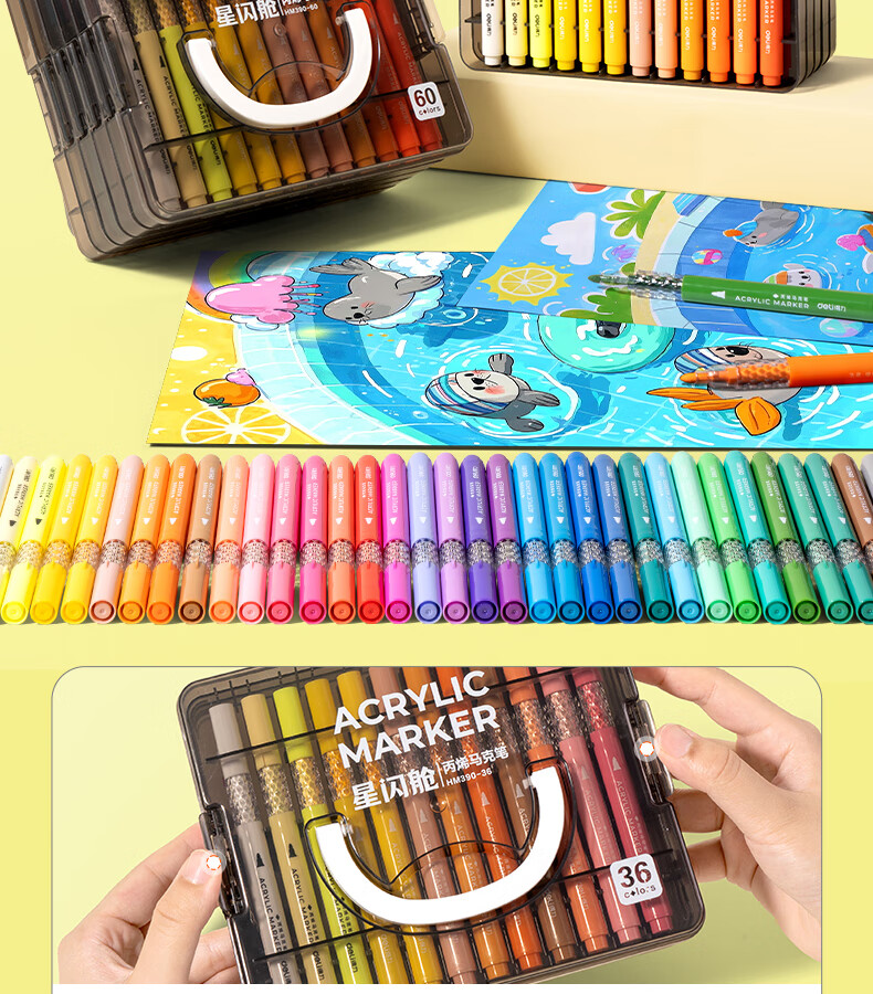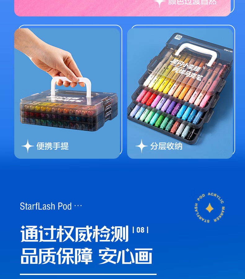 得力丙烯马克笔小蛮腰层叠盒便携收纳强覆盖力可水洗可叠色儿童小学生美术生绘画用幼儿园透明可视笔杆 【36色丨小蛮腰层叠盒】丙烯马克笔
