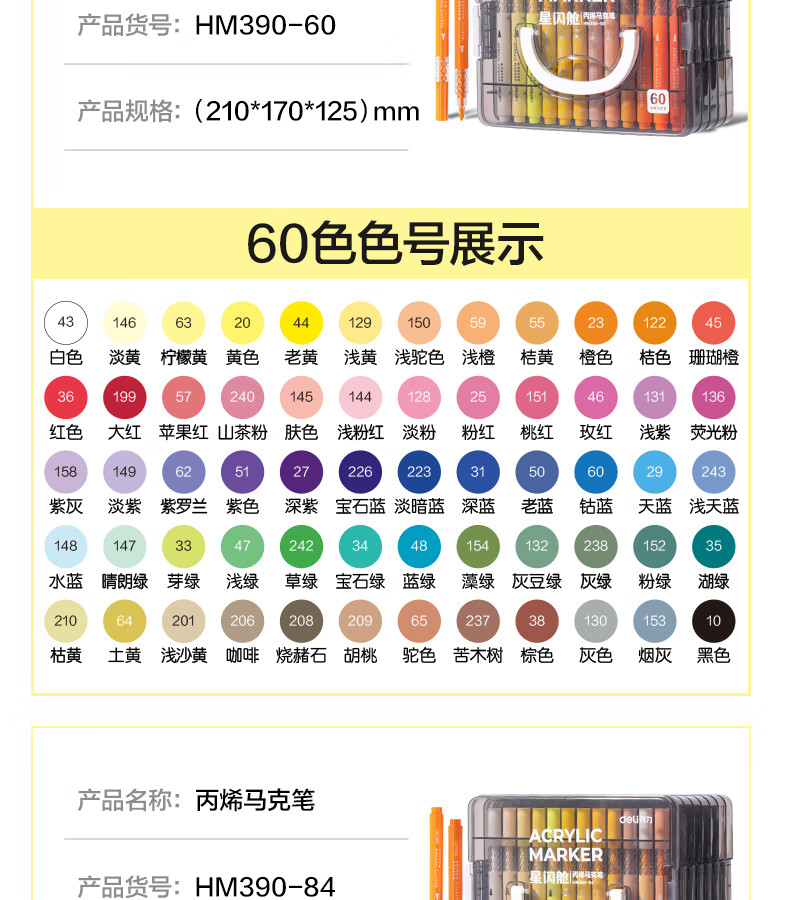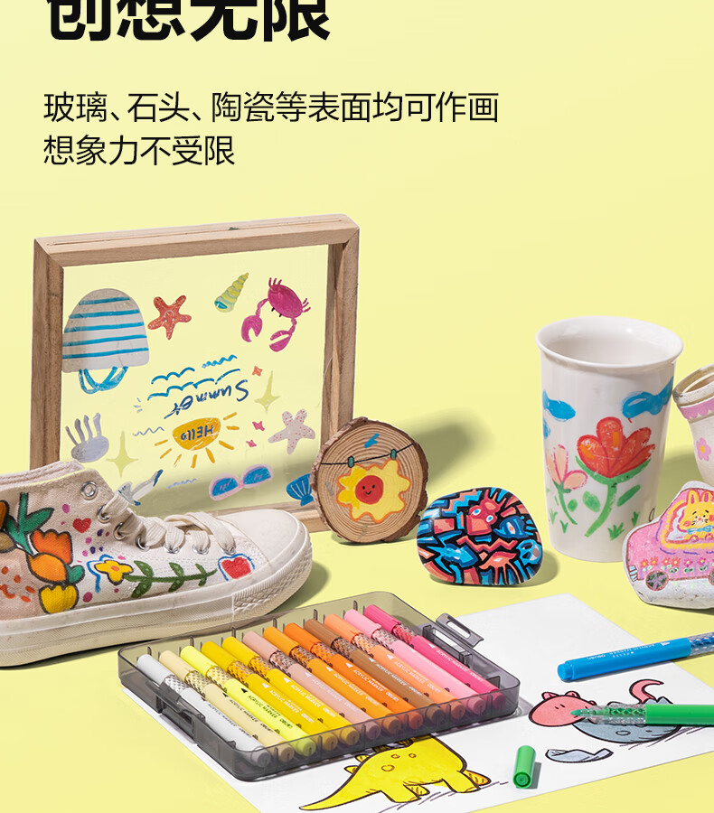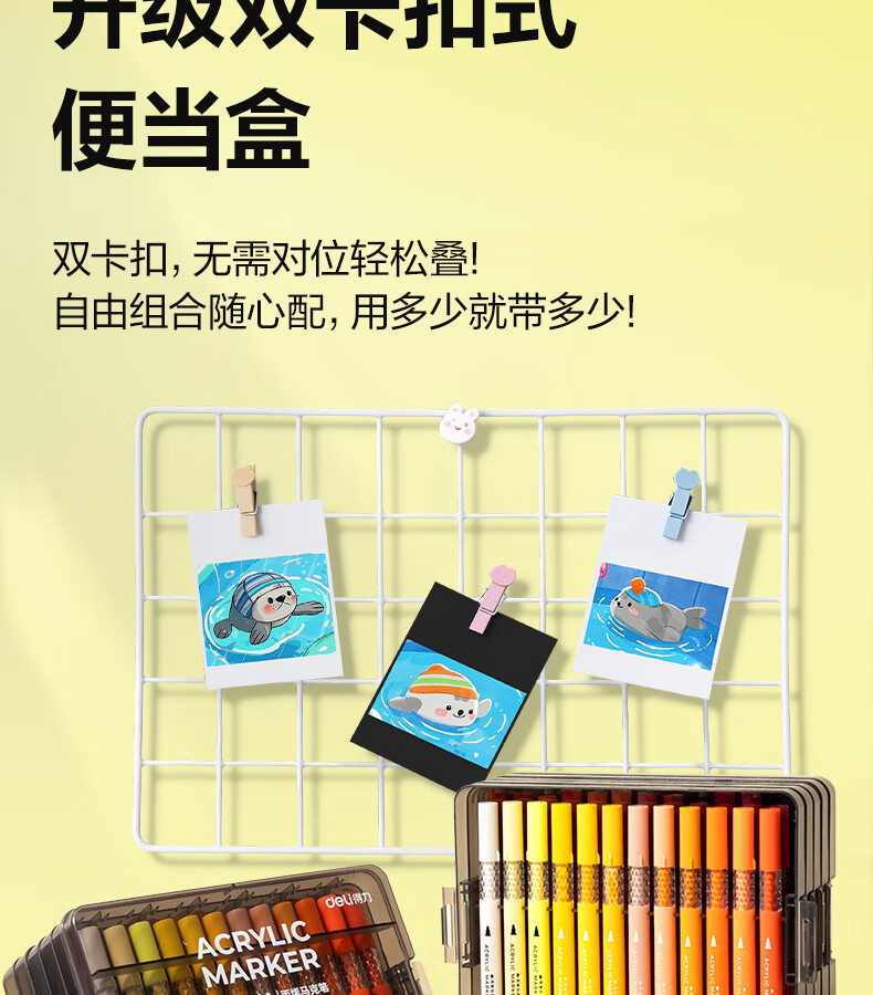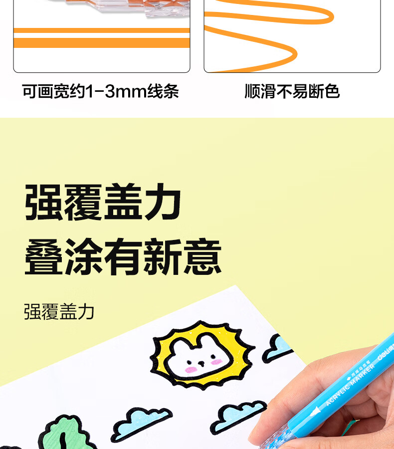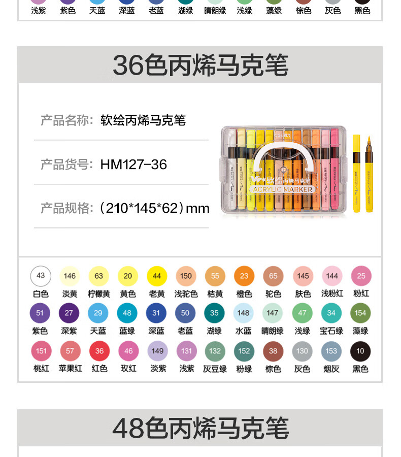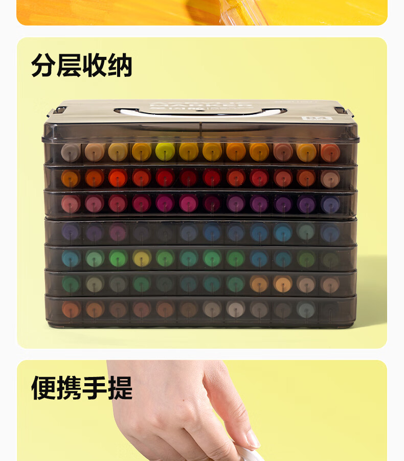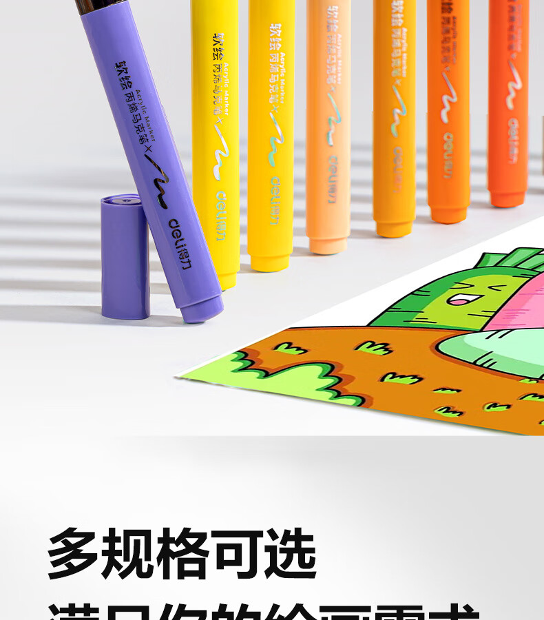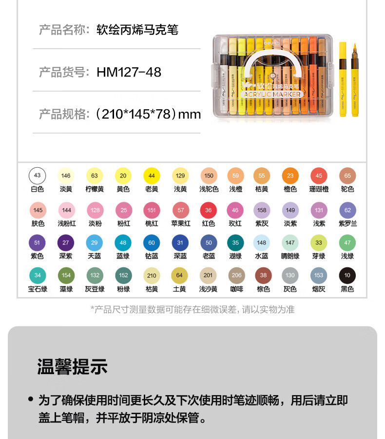得力丙烯马克笔小蛮腰层叠盒便携收纳强覆盖力可水洗可叠色儿童小学生美术生绘画用幼儿园透明可视笔杆 【36色丨小蛮腰层叠盒】丙烯马克笔