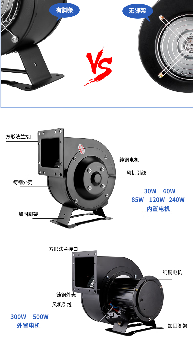 胜意兴FLJ小型工频离心风机220V多翼式气拱门鼓风机380V气模专用吹风机 150FLJ17有边有脚240W【220v】