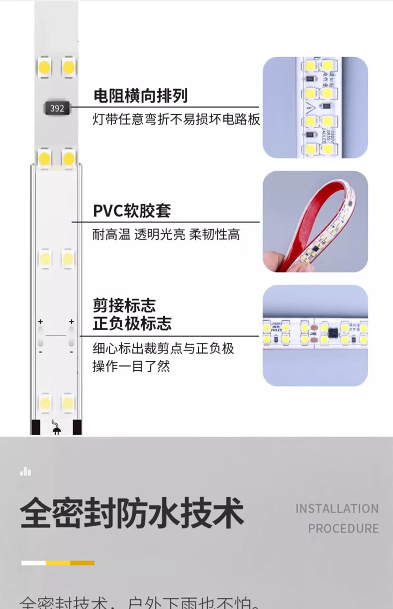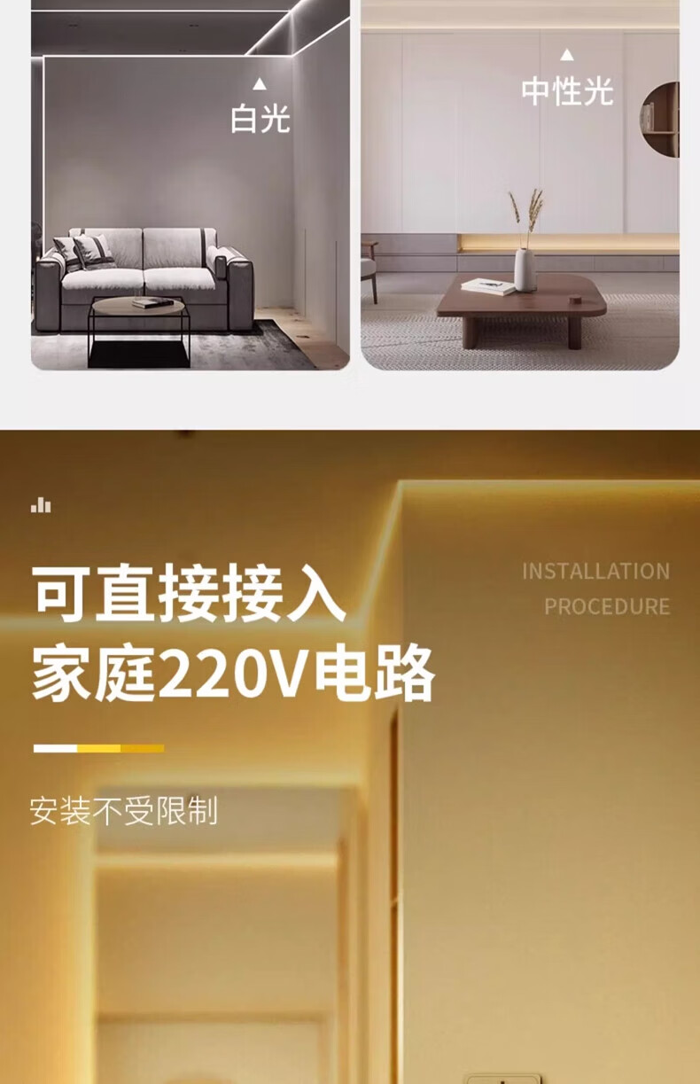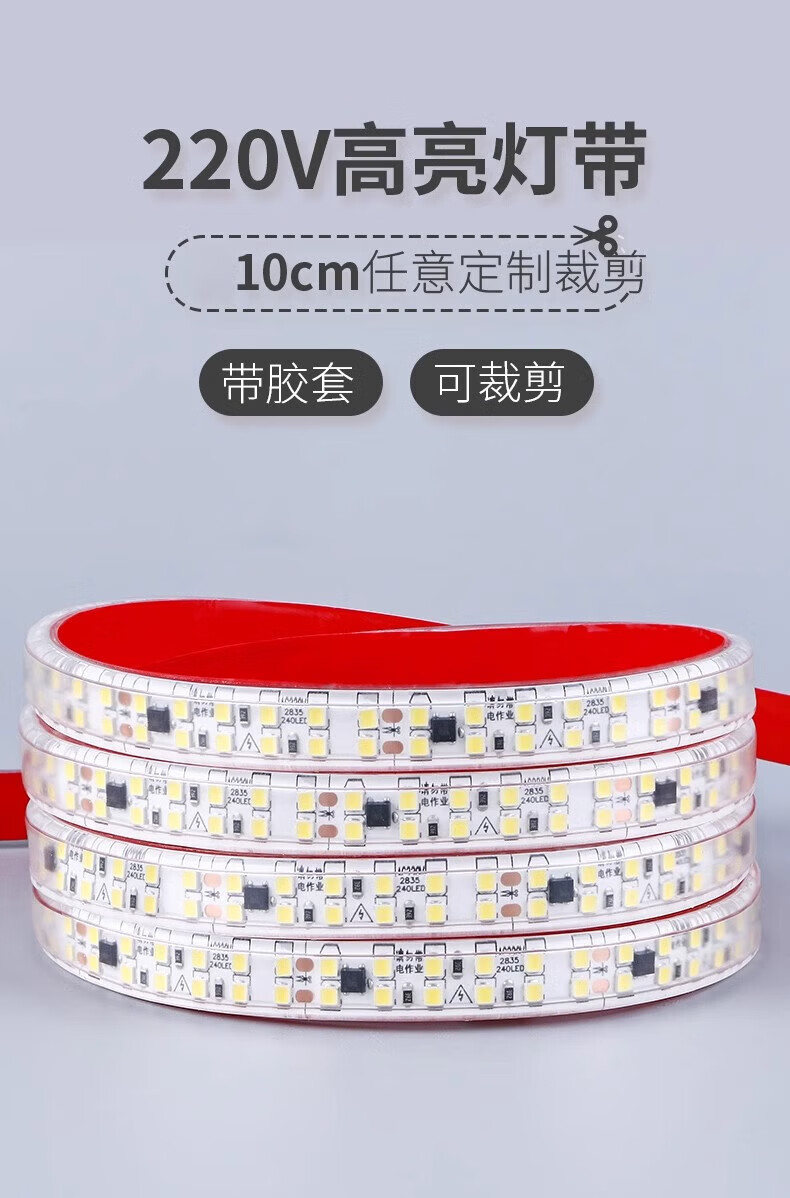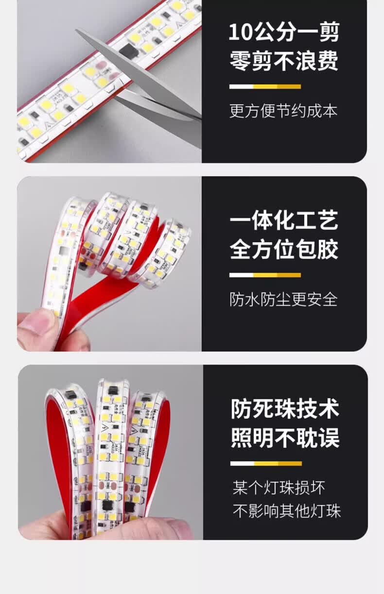 DENGZX免驱动led灯带线性灯220V防水户外照明酒店别墅工程条装饰线形灯 1米价220V免驱高压防水包胶款【120珠】 6000K白光