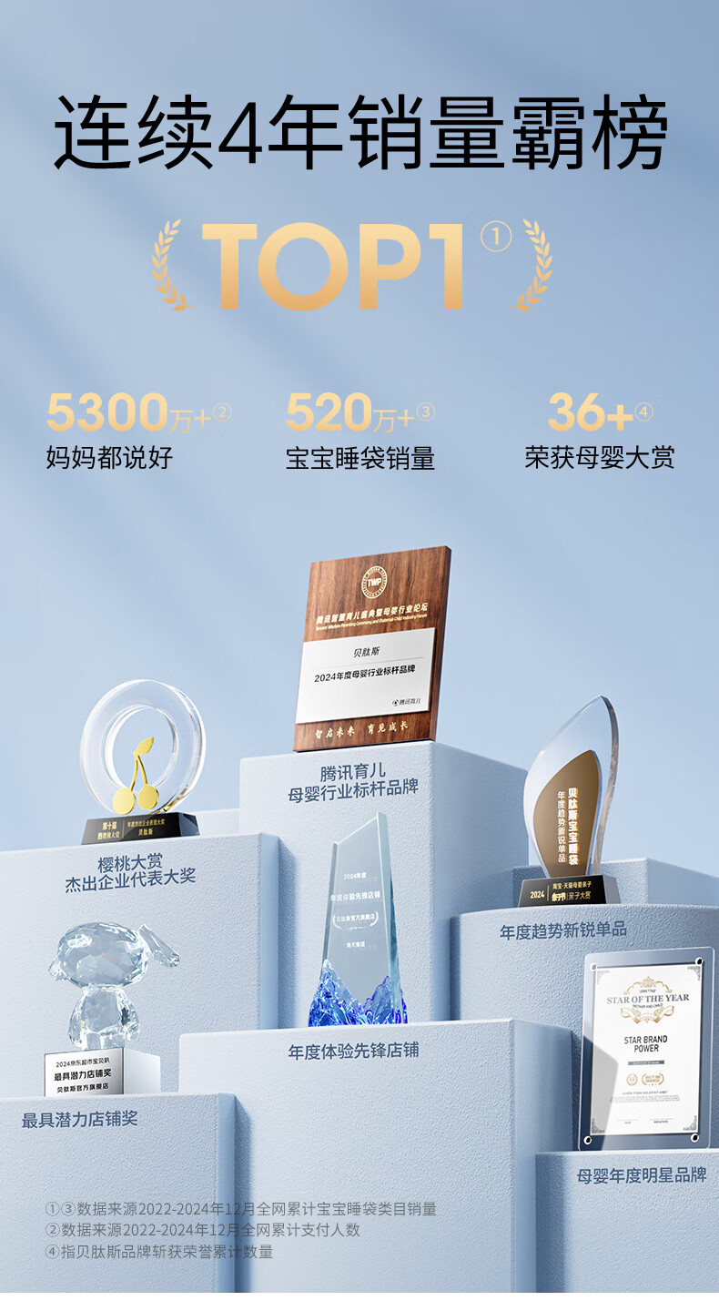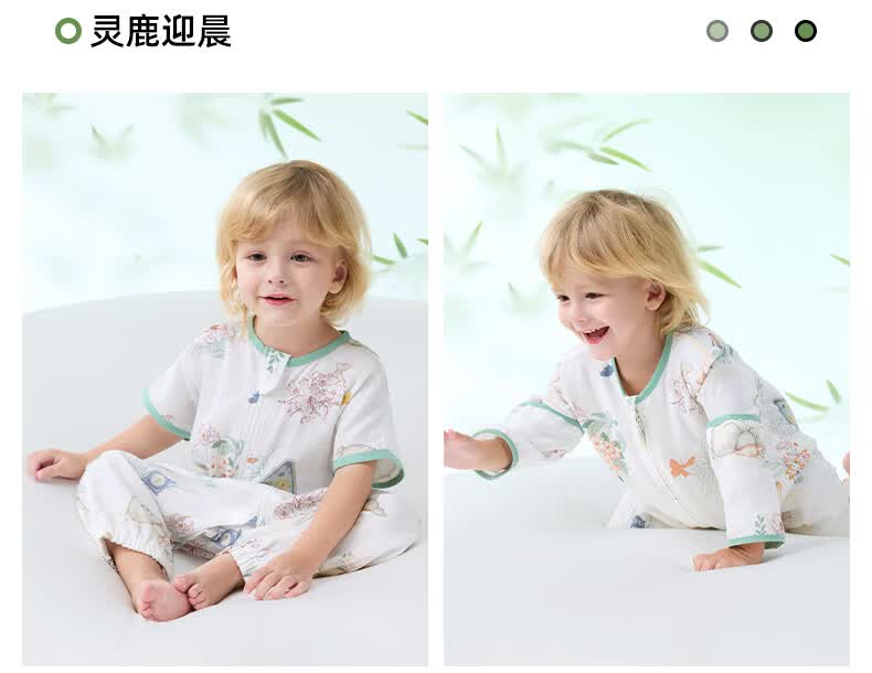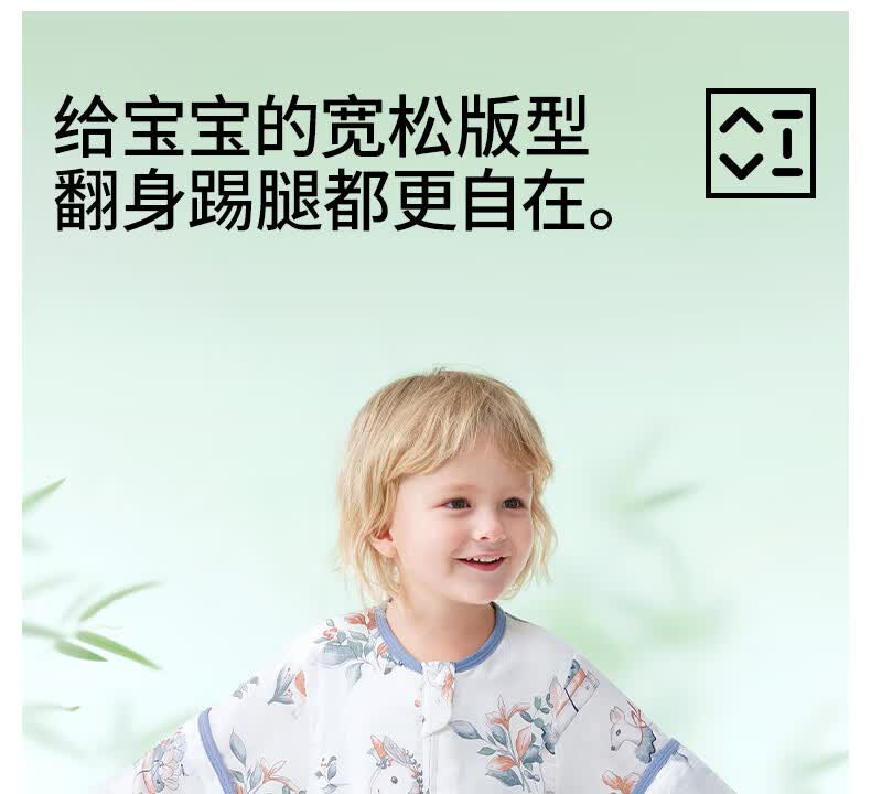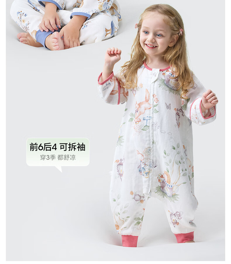 贝肽斯婴儿睡袋春秋竹棉纱布宝宝睡衣分腿儿童防踢被睡袋前6后4乔兔 S