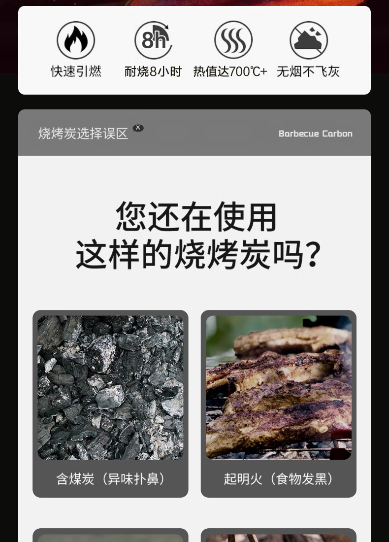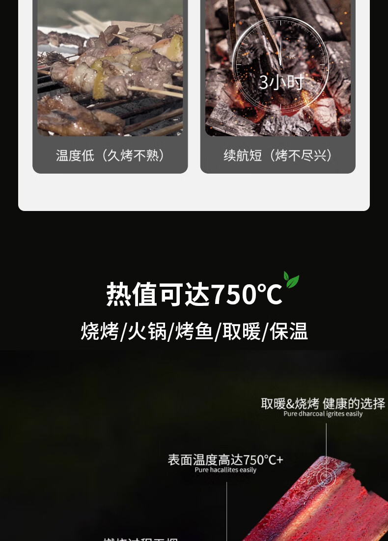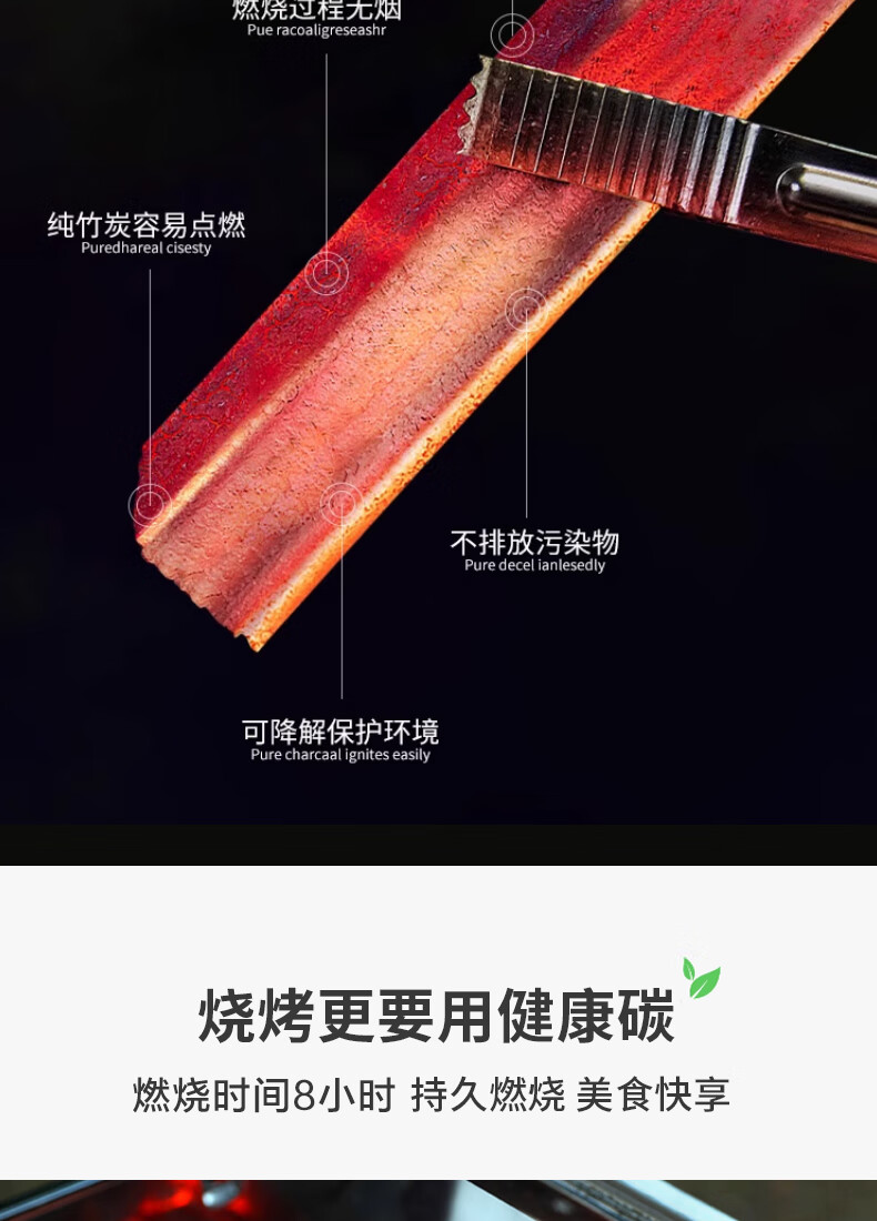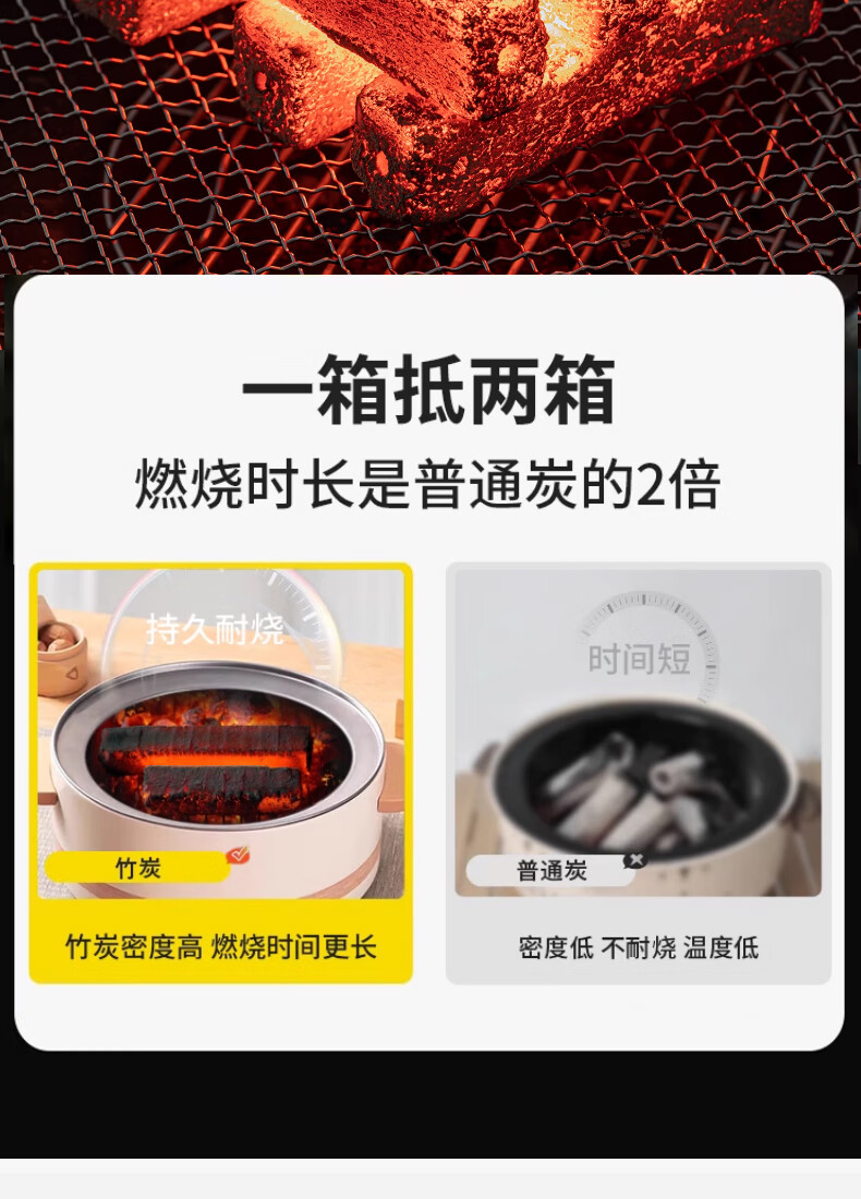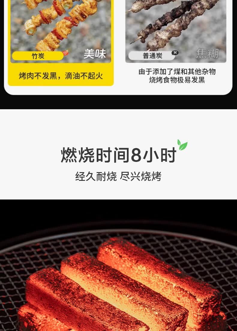 MOON LENCE无烟烧烤木炭竹炭烧烤炉烧烤木碳条形空心 围炉取暖火锅炭 8斤