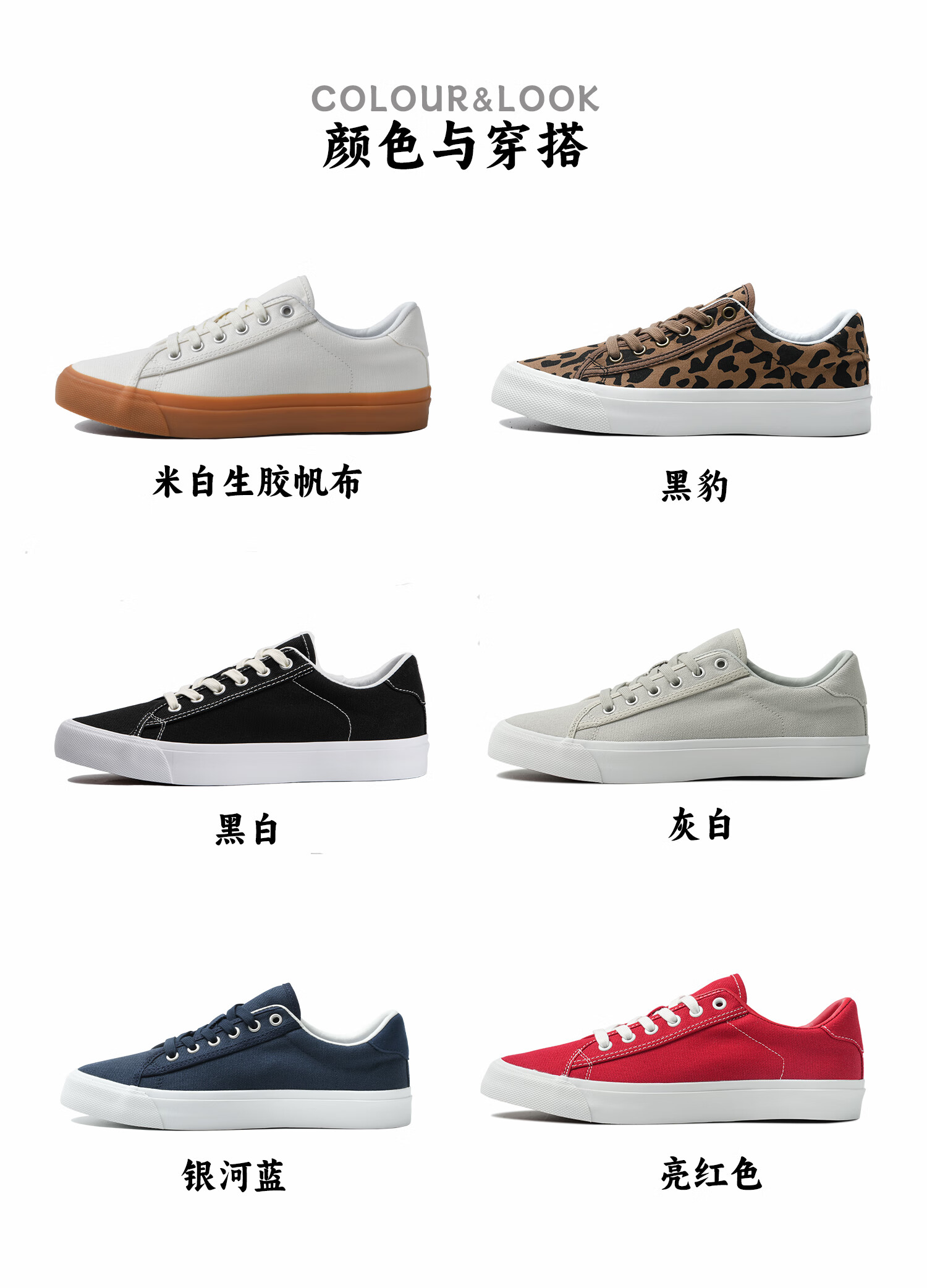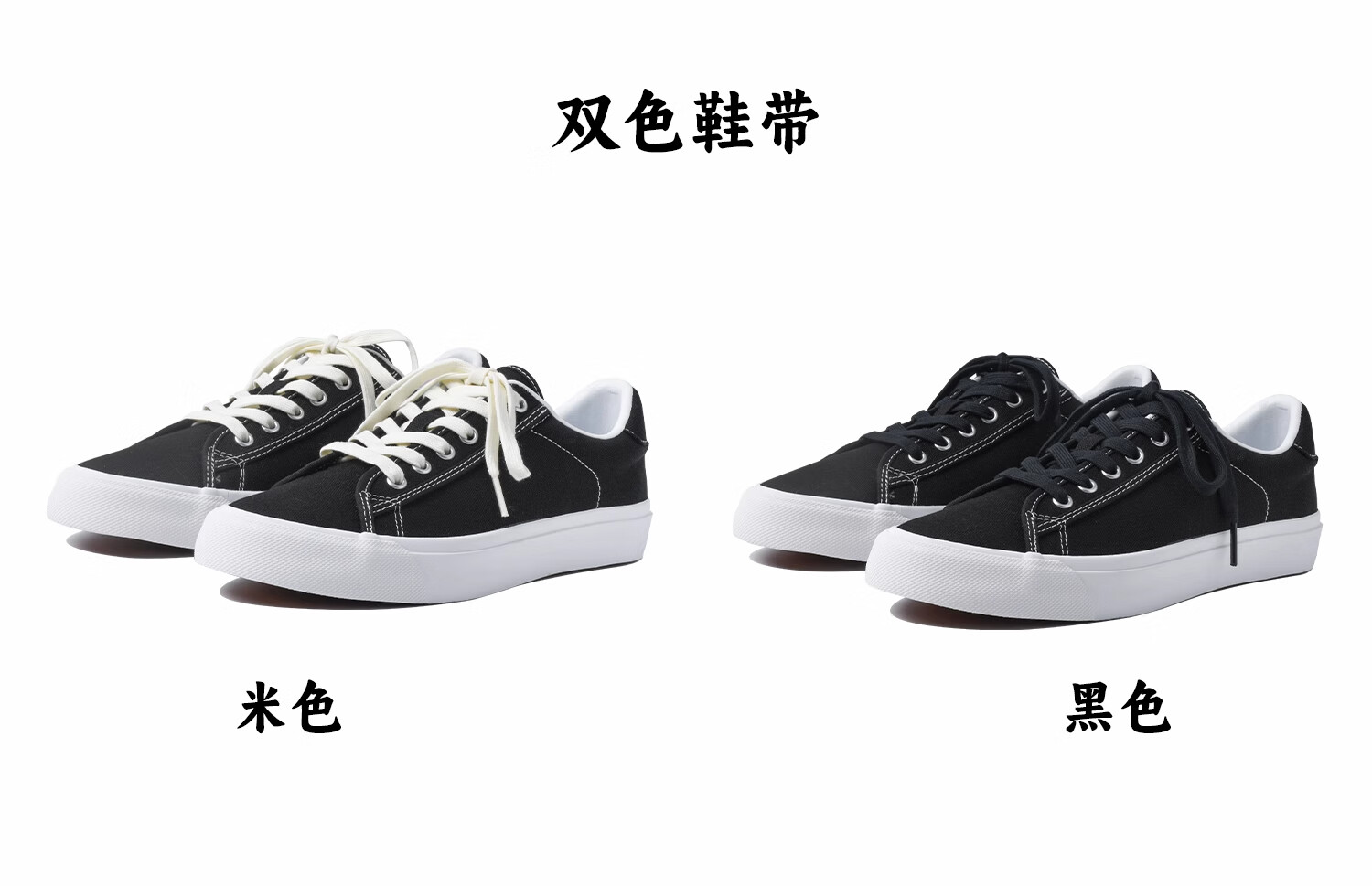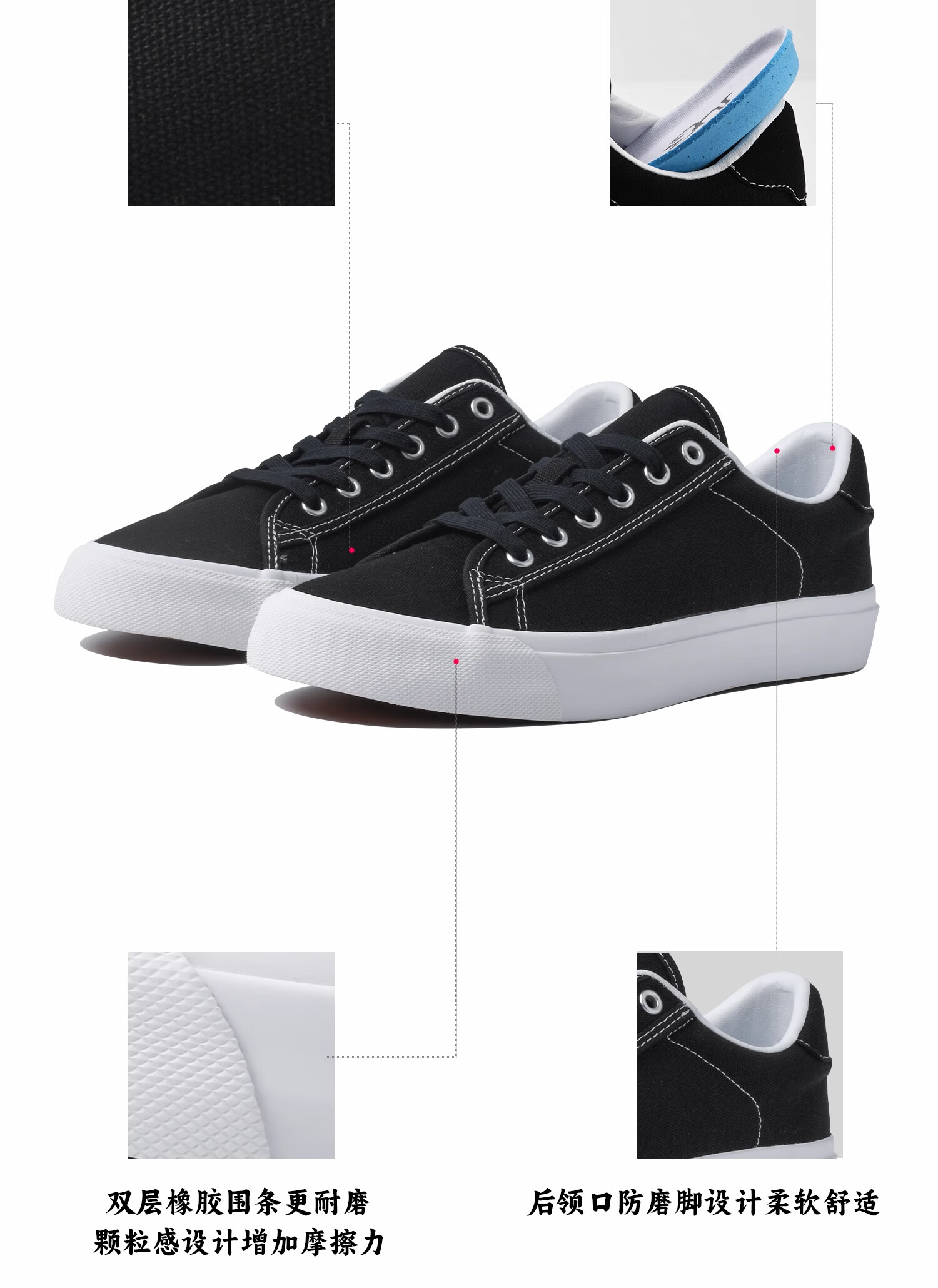 极路客春季新款小白鞋情侣款百搭帆布鞋透气休闲鞋减震滑板鞋 黑白色 43