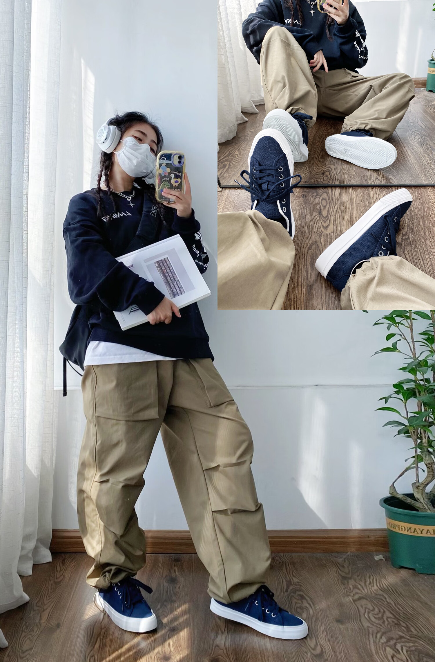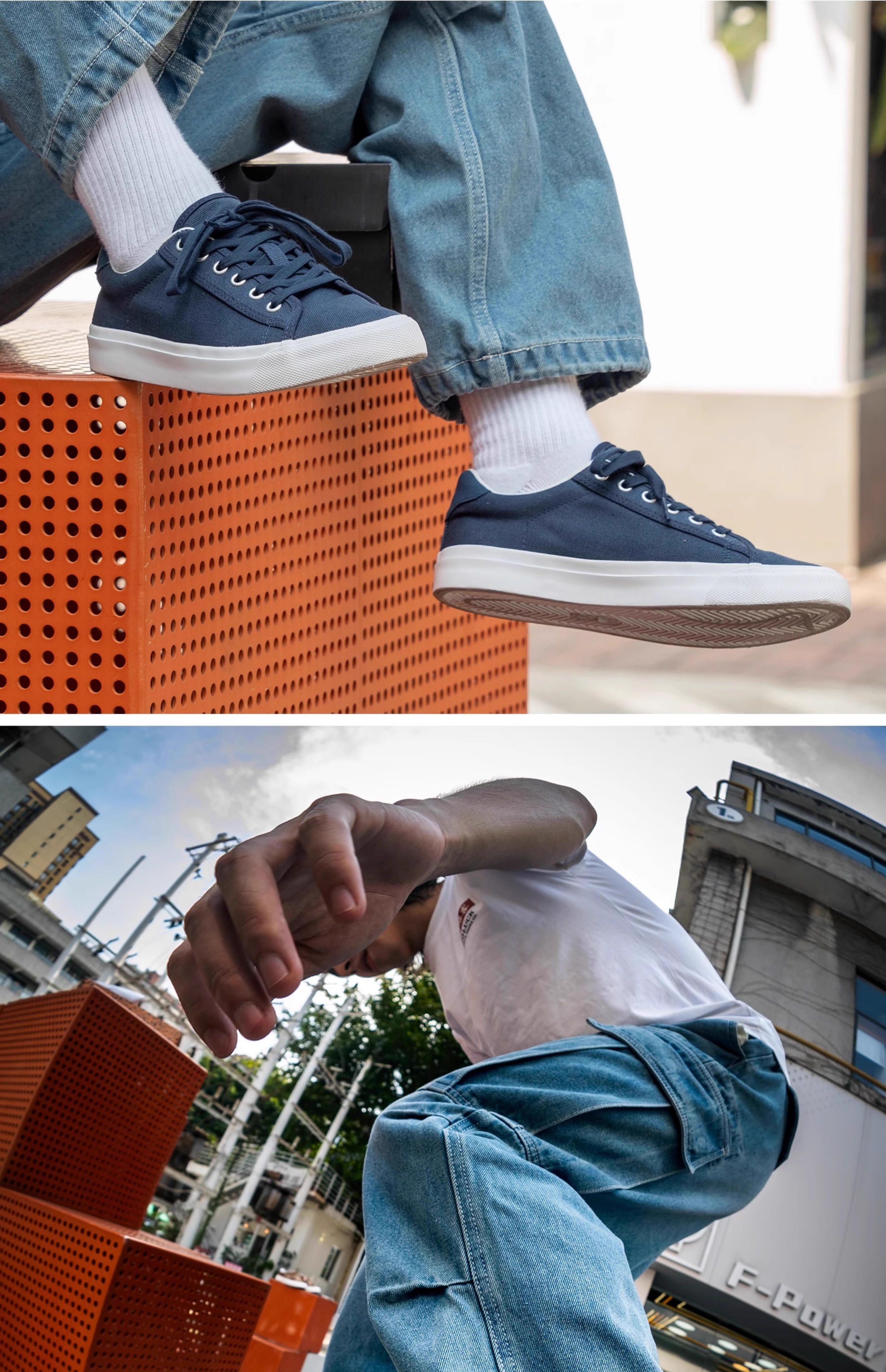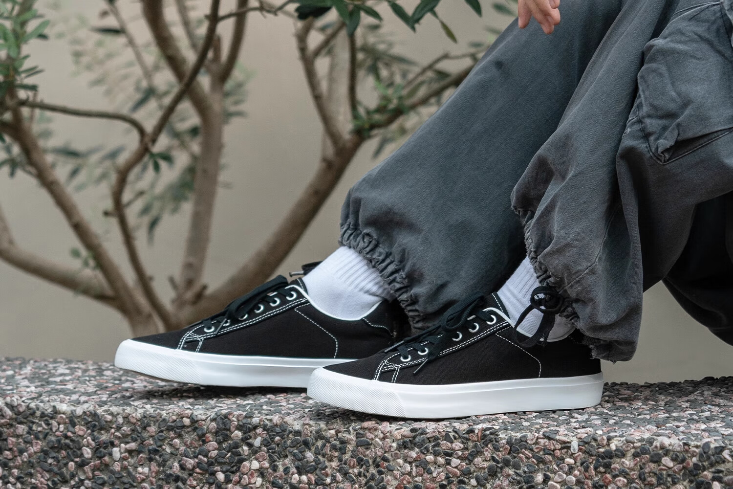 极路客春季新款小白鞋情侣款百搭帆布鞋透气休闲鞋减震滑板鞋 黑白色 43