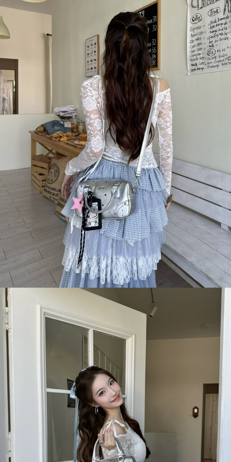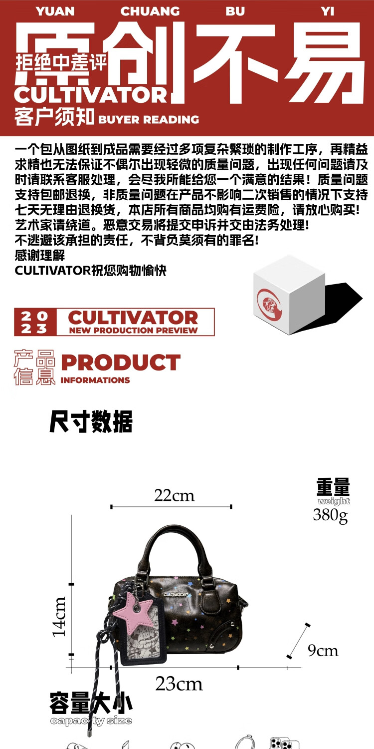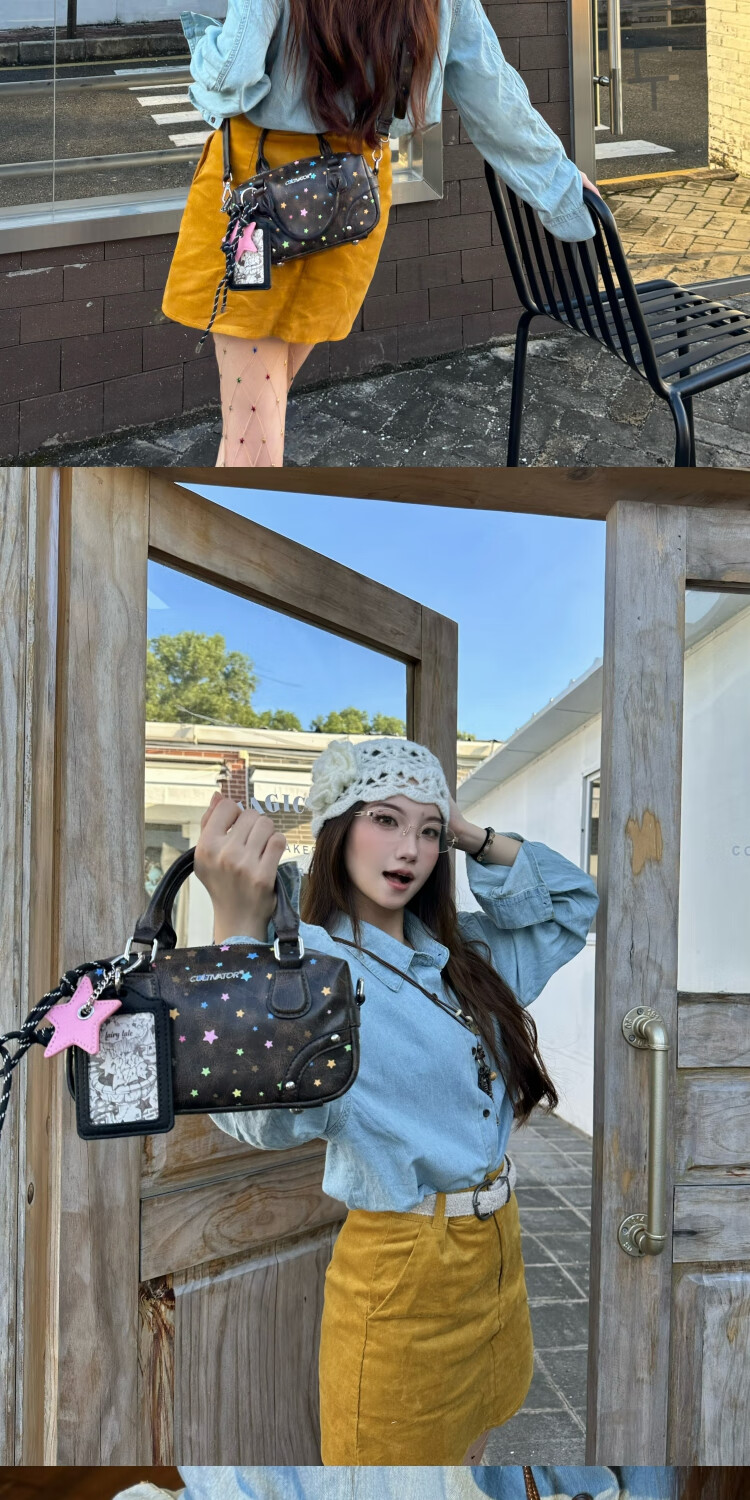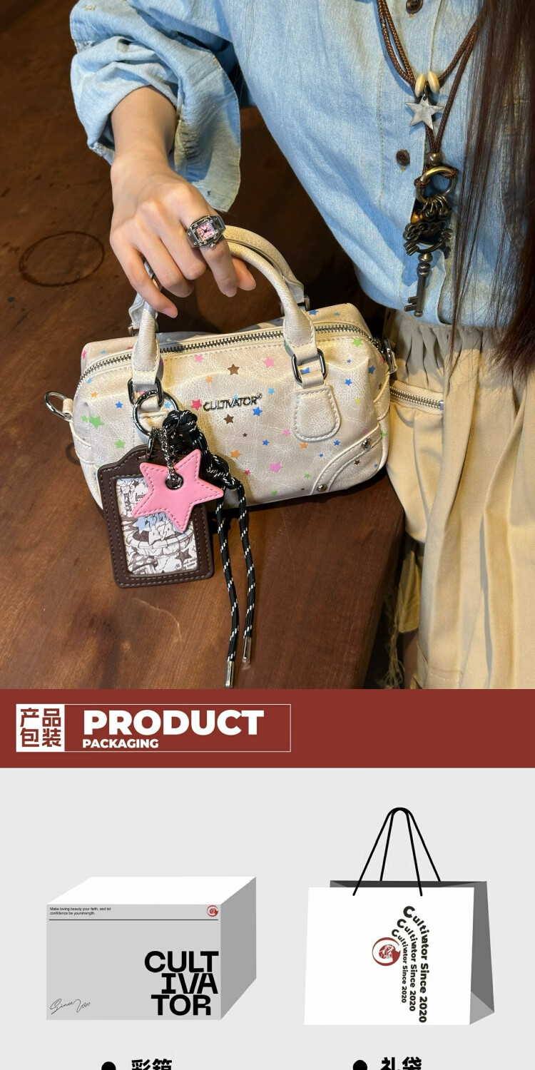 CULTIVATOR原创小众复古星星撞色卡套斜挎波士顿2025秋冬【生日礼物】 银色(预售 下单后15天内发出)