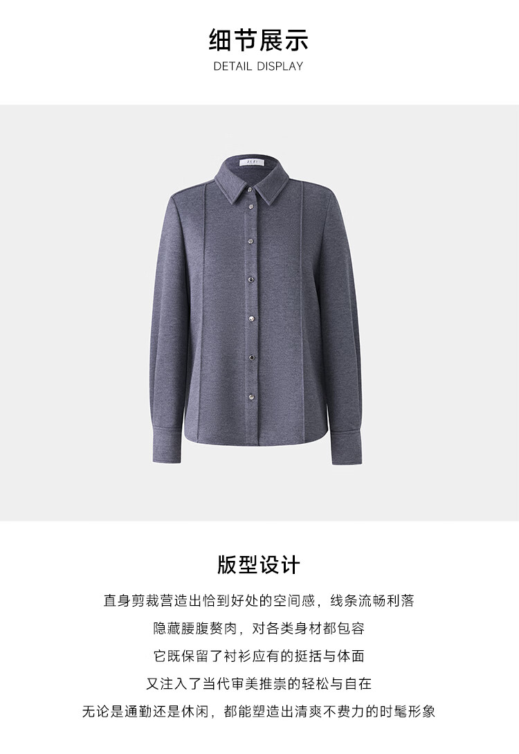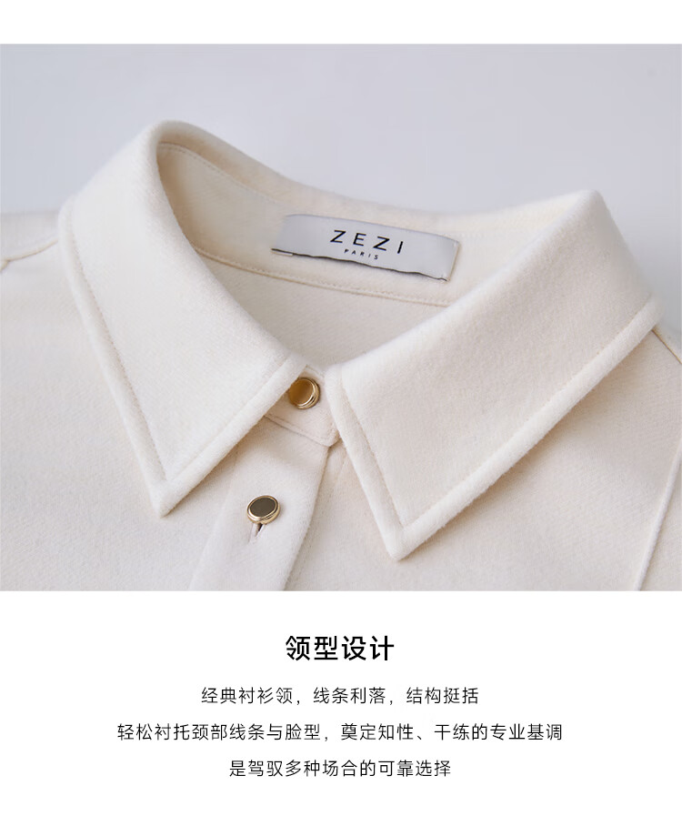 ZEZI弹力舒适羊毛衬衫时尚休闲女士衬衣磨毛保暖厚款秋冬新品通勤女装 优雅黑 L (115-125斤)