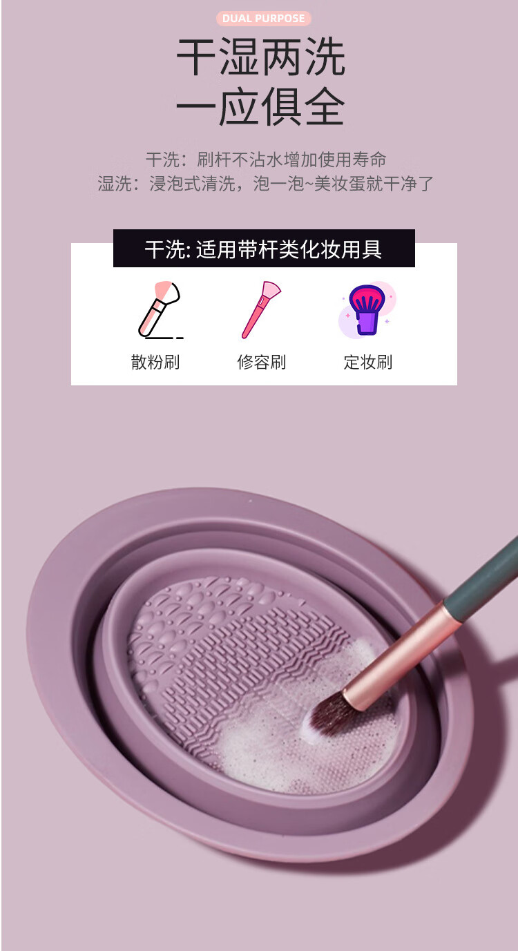 YAHLIGS硅胶洗刷碗化妆刷子粉扑清洗器工具清洁液晾晒网兜美妆蛋套装 清洗液+紫色清洗碗+网兜 1件