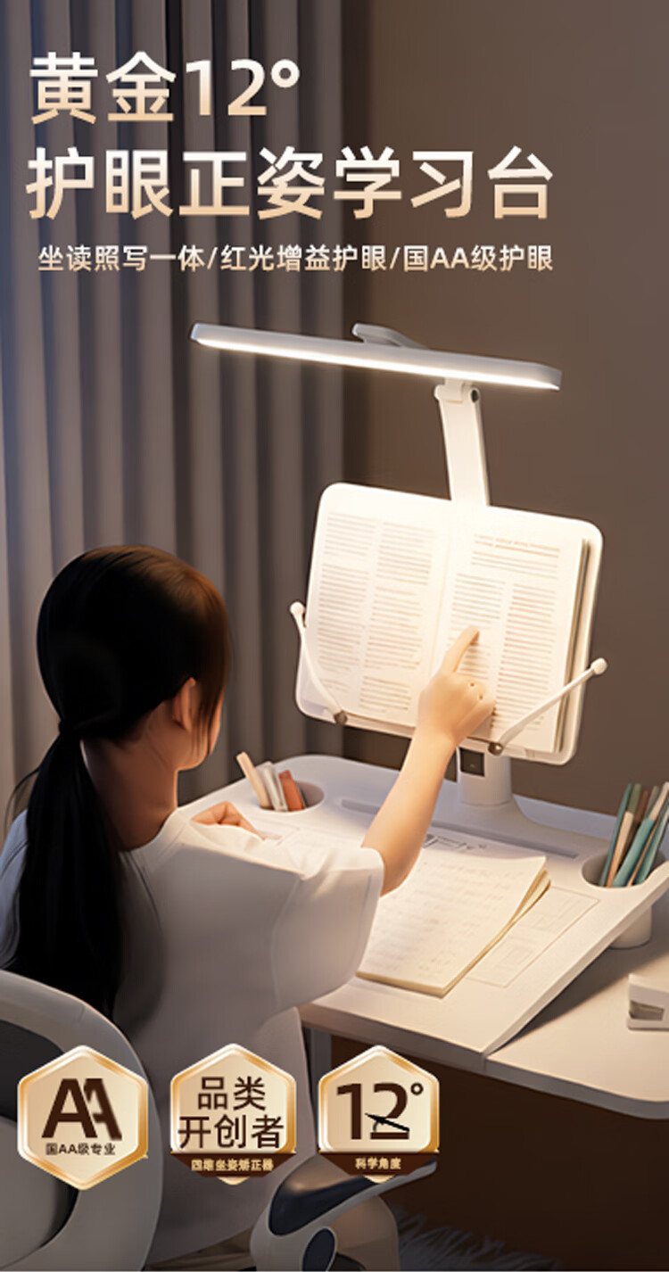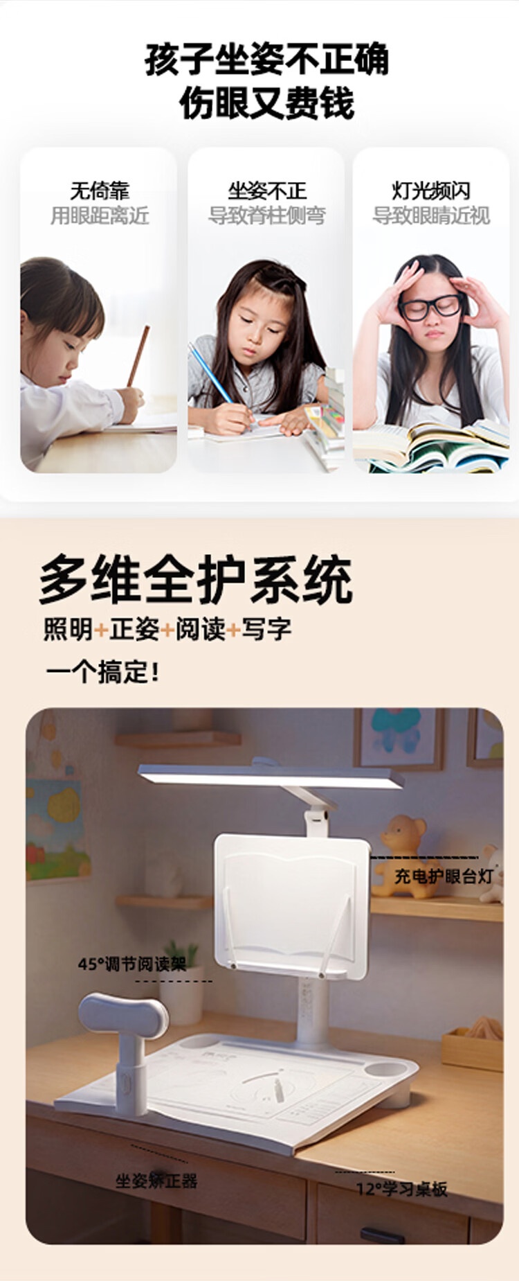 眼护士儿童台灯护眼学习专用防近视学生写字作业护眼灯充电书桌阅读台灯 【红光护眼灯】矫正+书架+学习台 触摸开关
