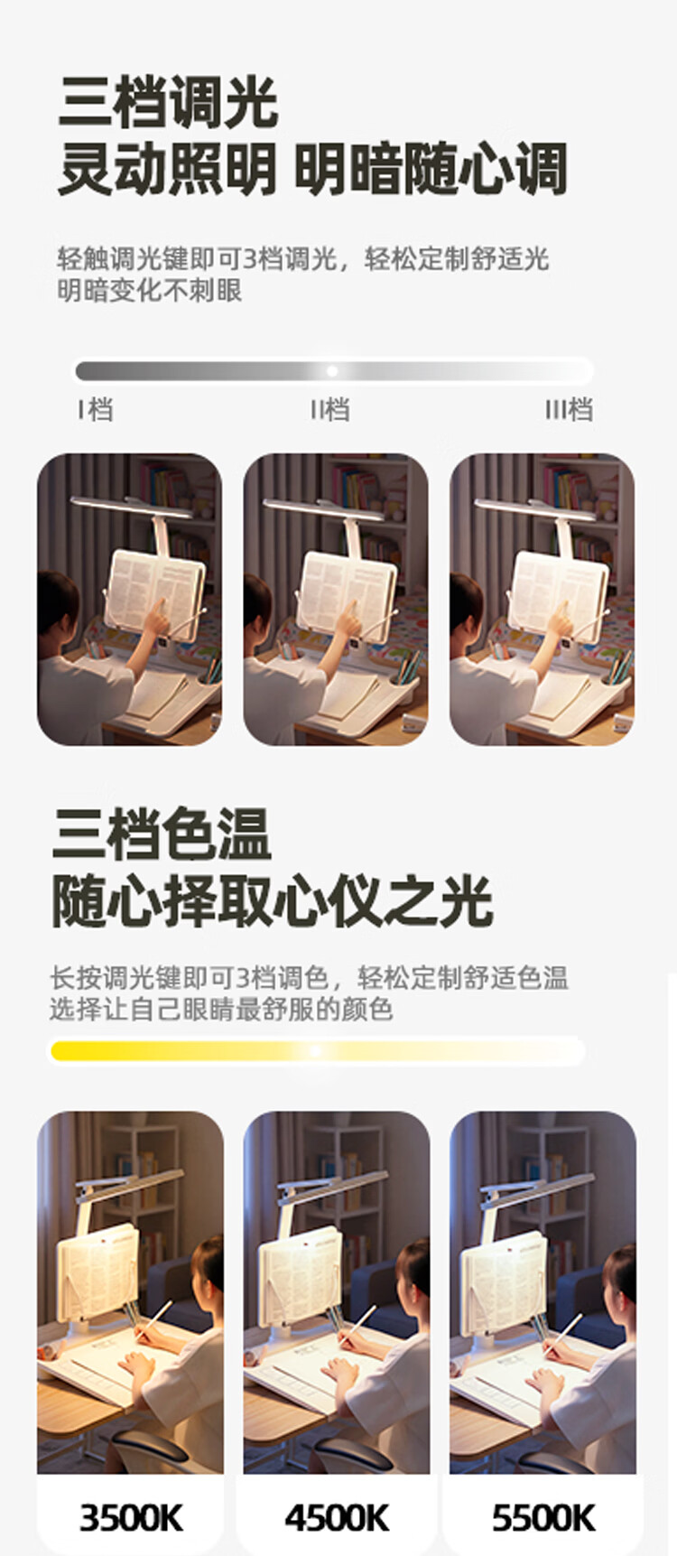 闪凯森防眩目护眼灯学习专用新国标定时儿童阅读书桌台灯夹长条灯 防眩夹式【800MM】吊柜/定制书桌/常规书桌