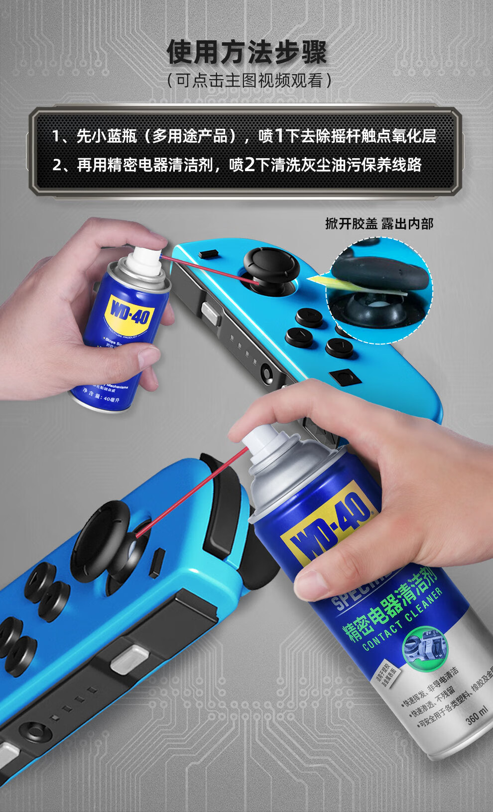 WD-40清洁剂wd40 switch游戏手柄漂移修复主板线路板精密电器清洗 wd-40精密电器清洁剂360ML升级装