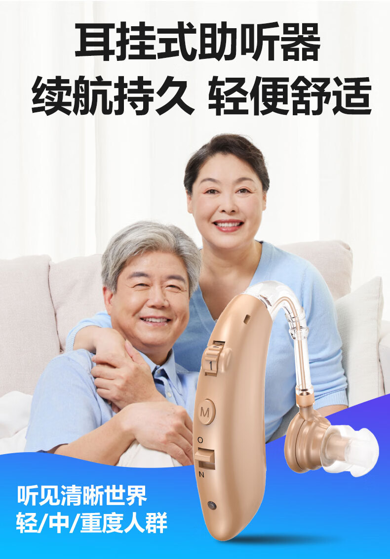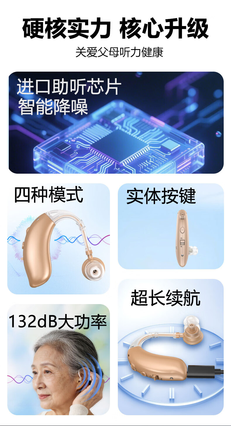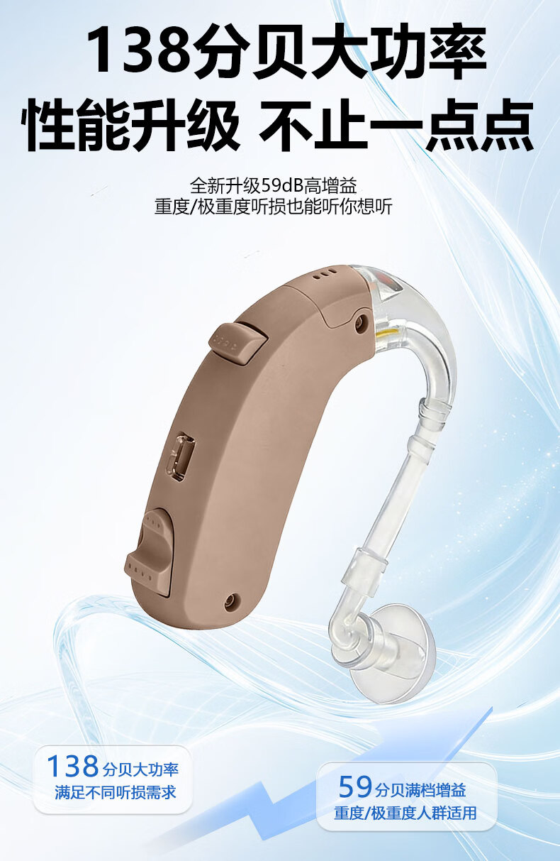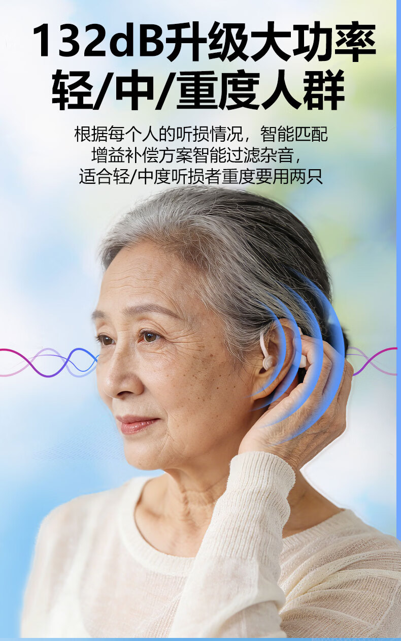嘉鸥医用级大功率耳背式助听器老年人专用正品无线隐形长续航重度老人 蓝色双耳/左右通用/ 中/重度专用/132大分贝