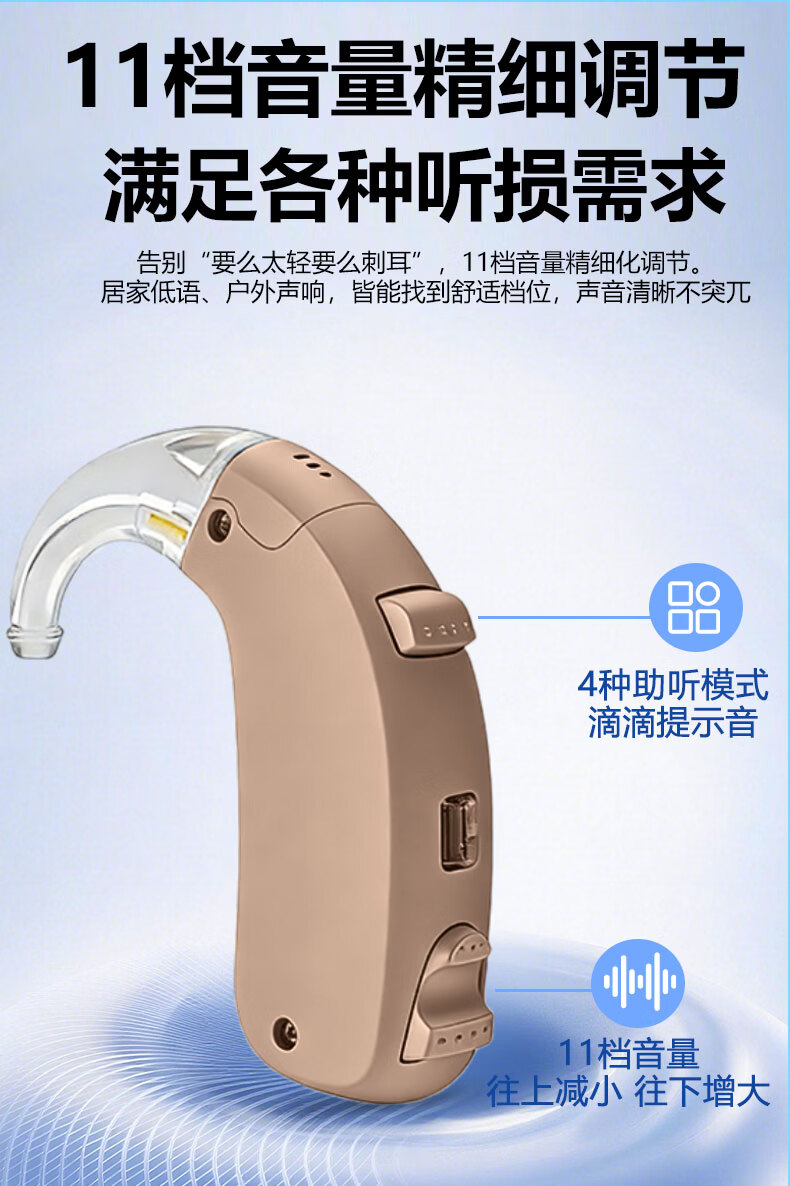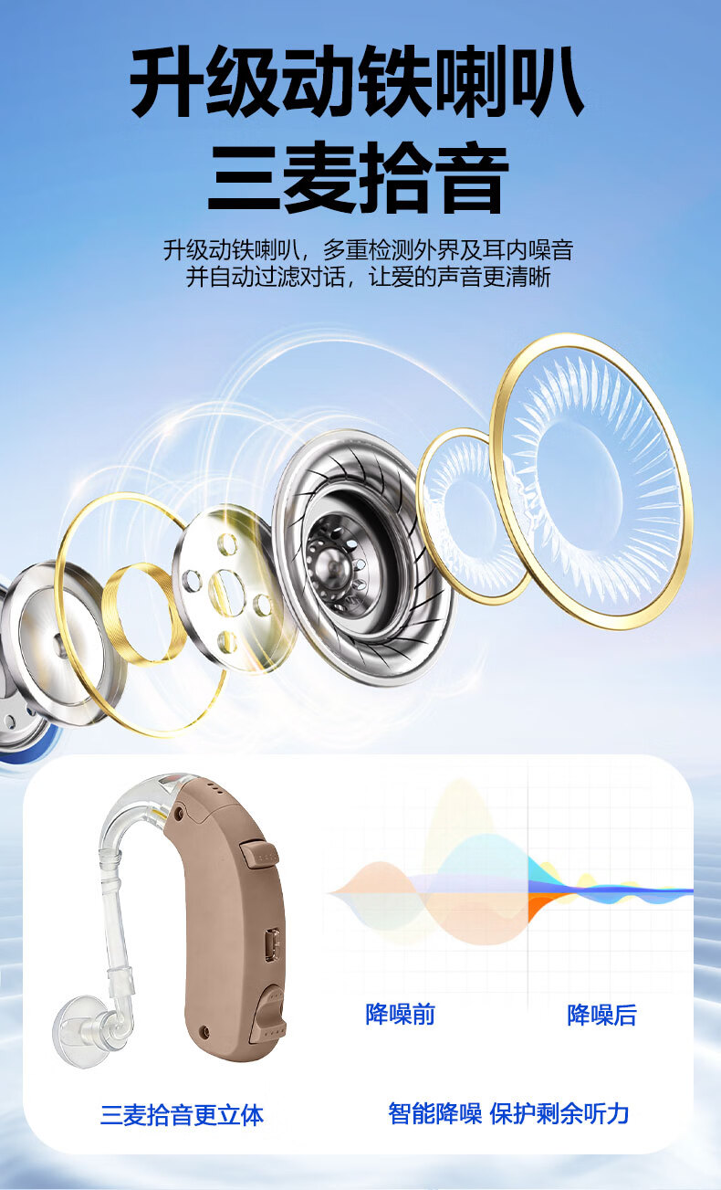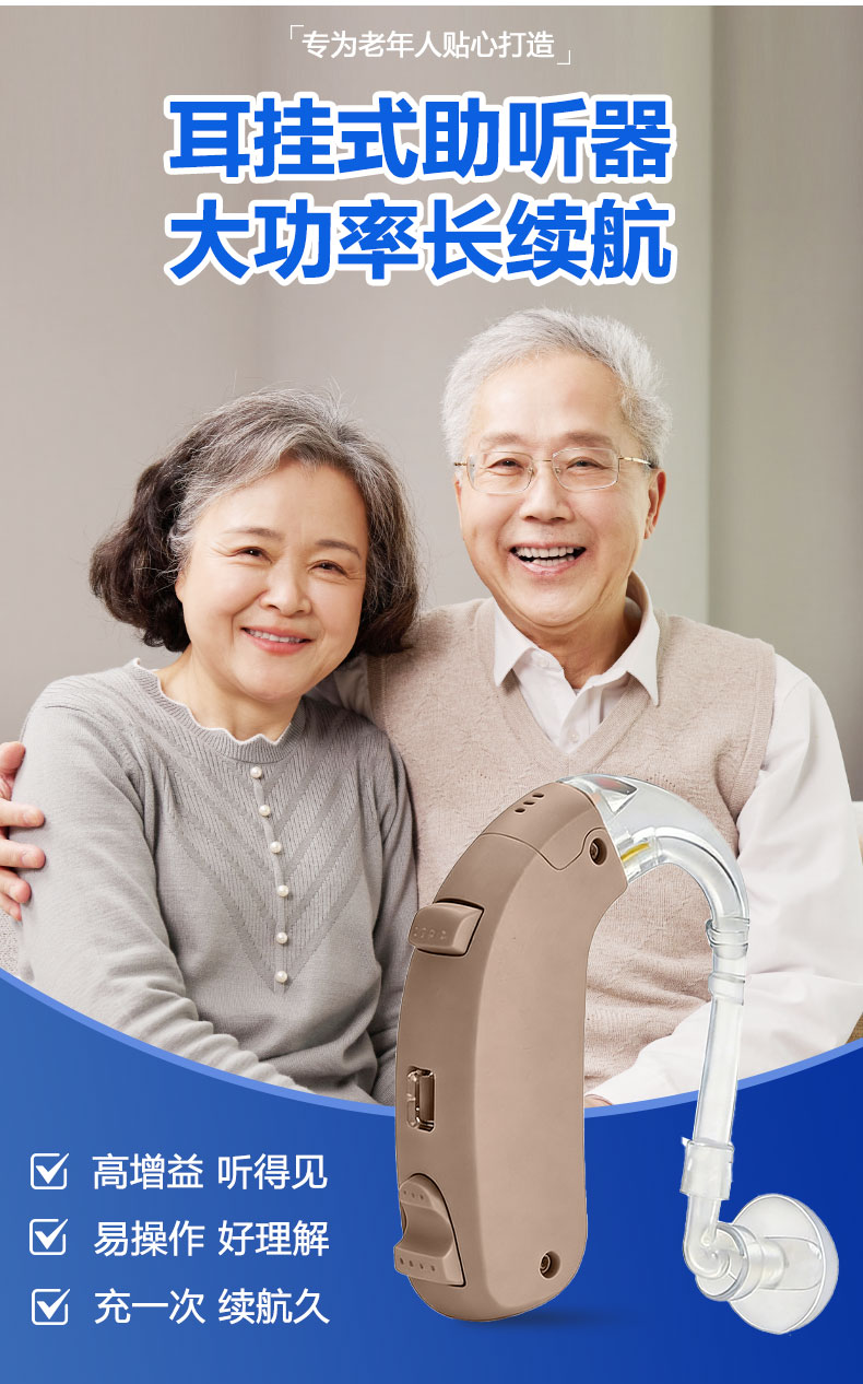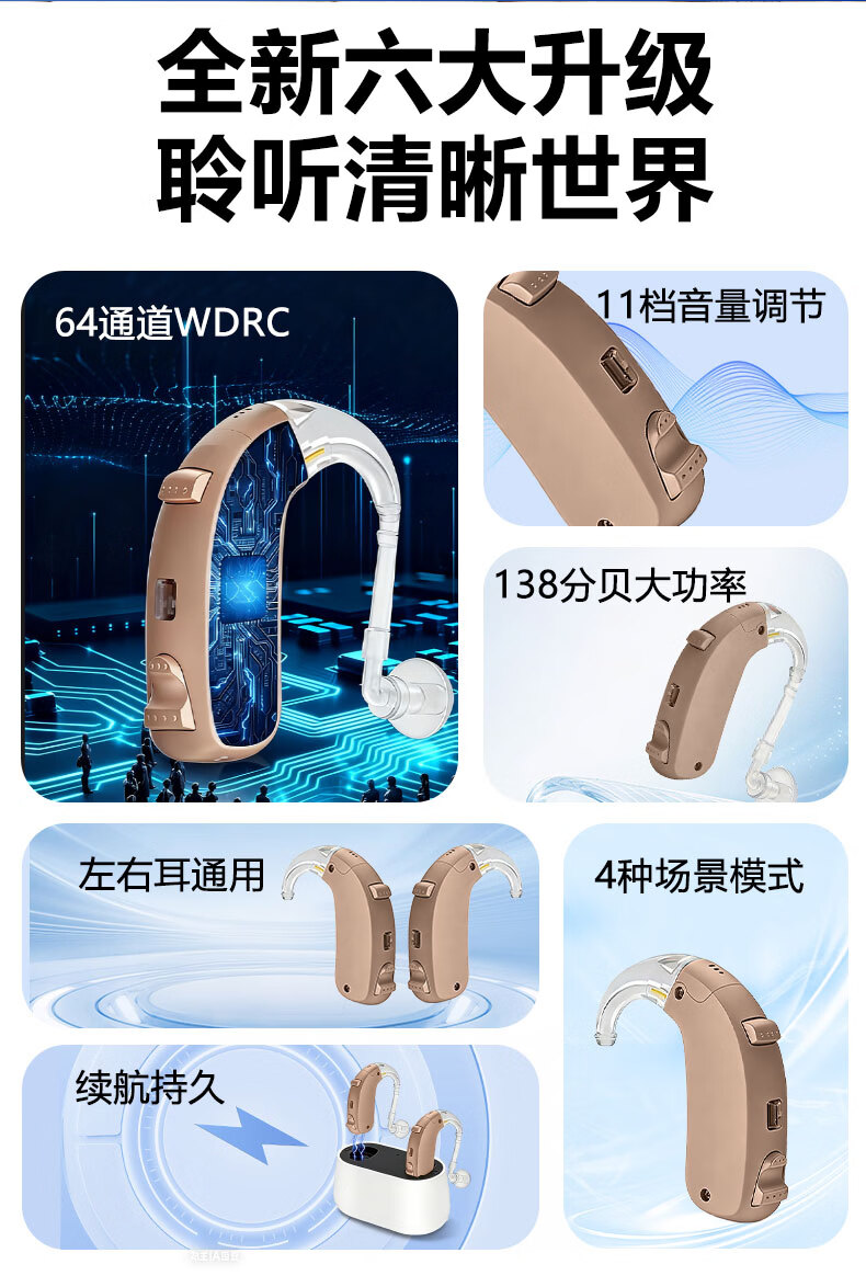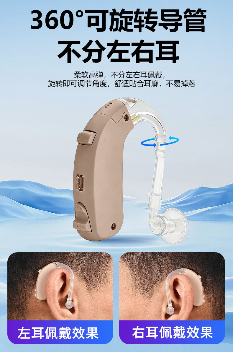 嘉鸥医用级大功率耳背式助听器老年人专用正品无线隐形长续航重度老人 蓝色双耳/左右通用/ 中/重度专用/132大分贝