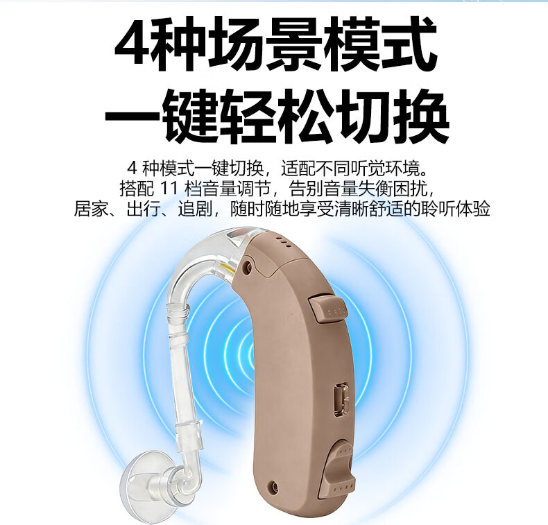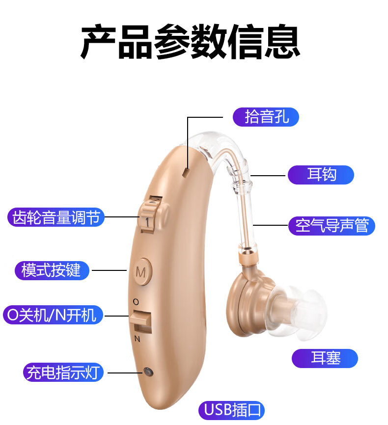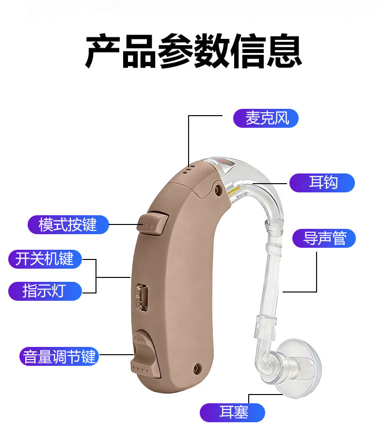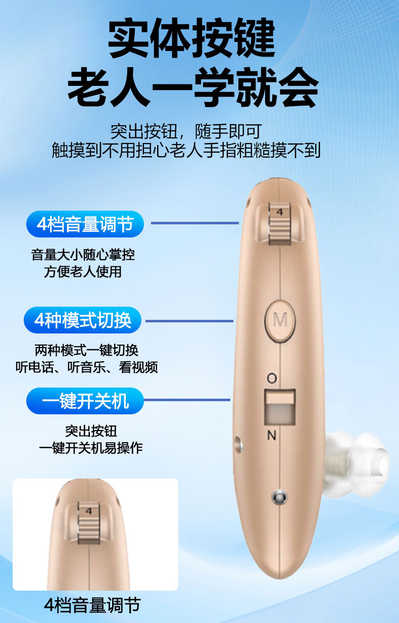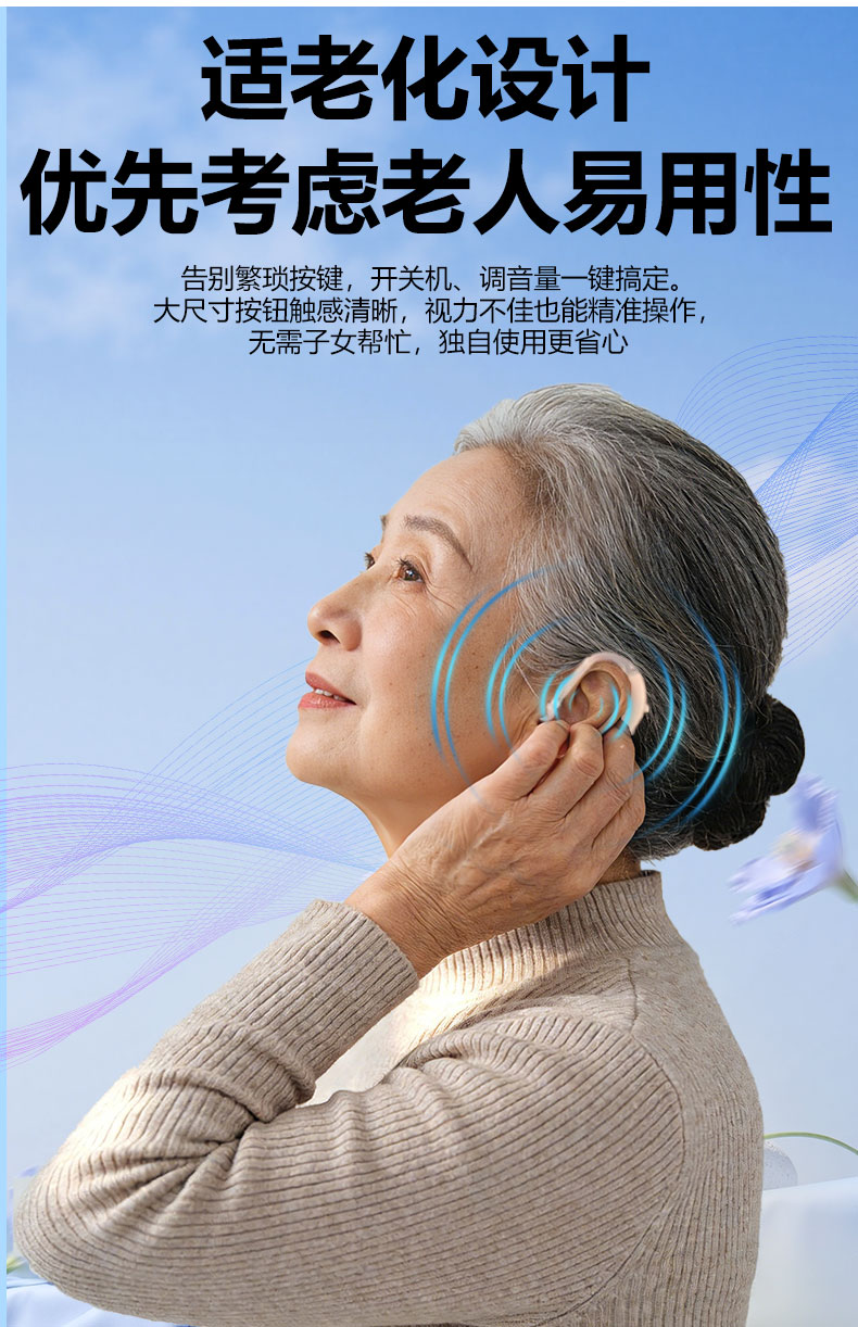嘉鸥医用级大功率耳背式助听器老年人专用正品无线隐形长续航重度老人 蓝色双耳/左右通用/ 中/重度专用/132大分贝
