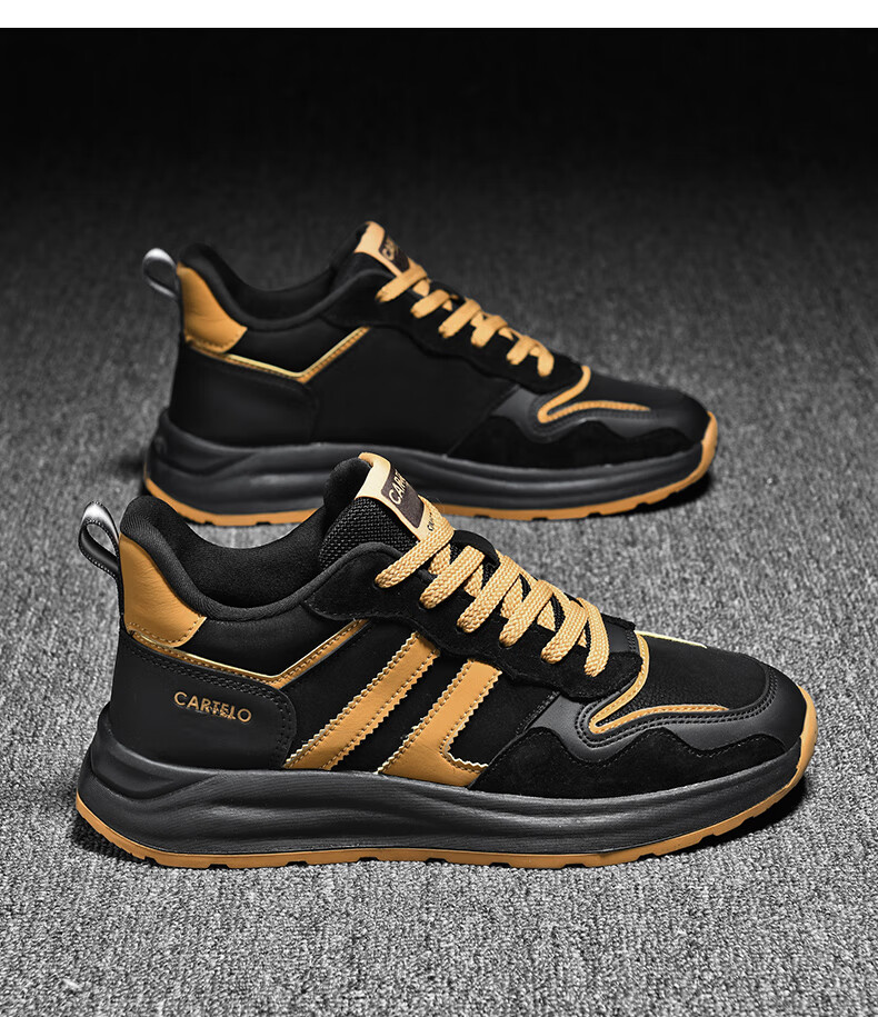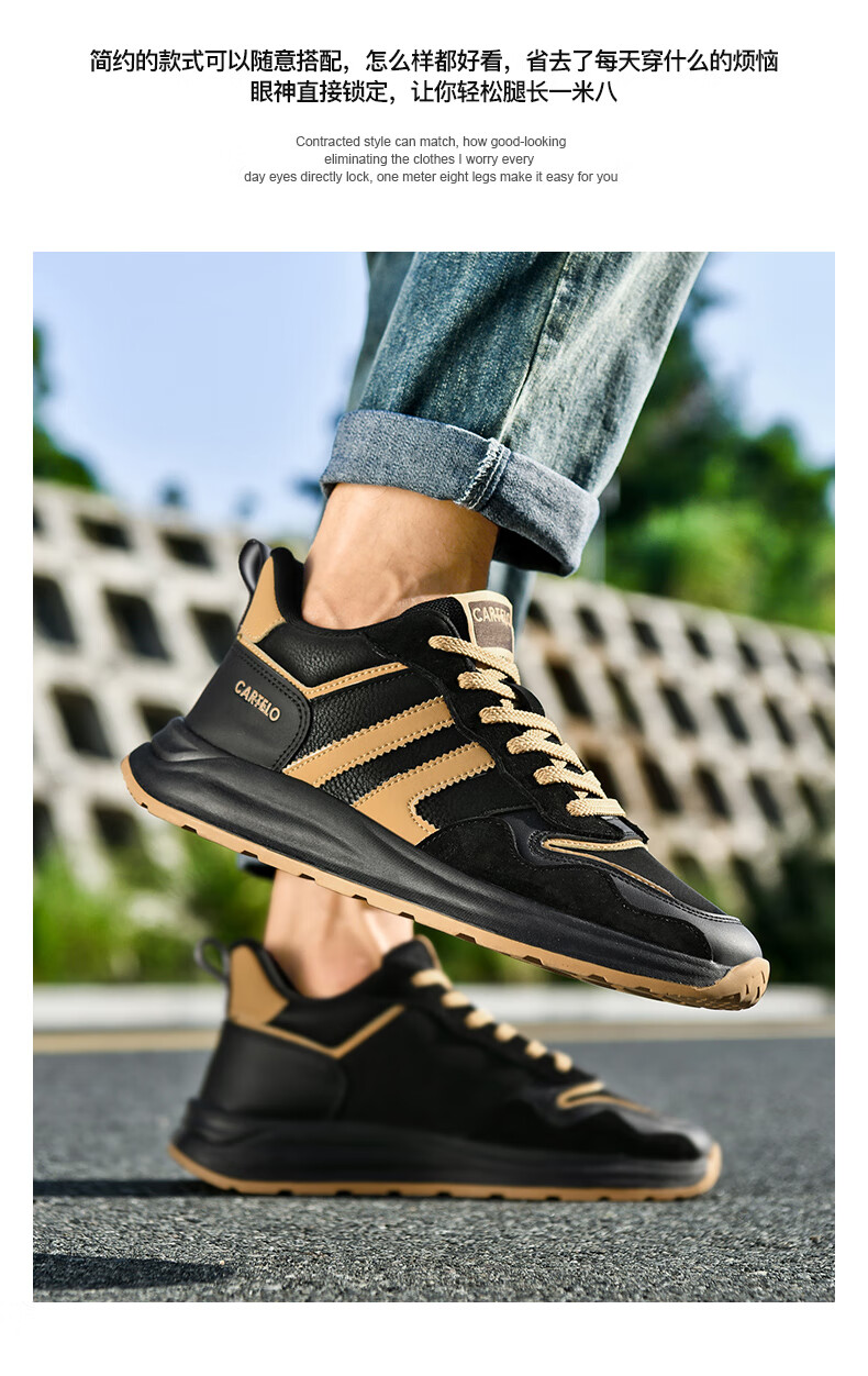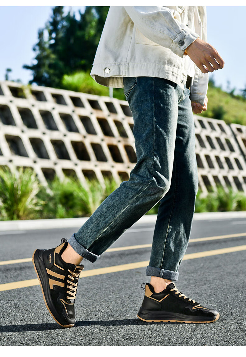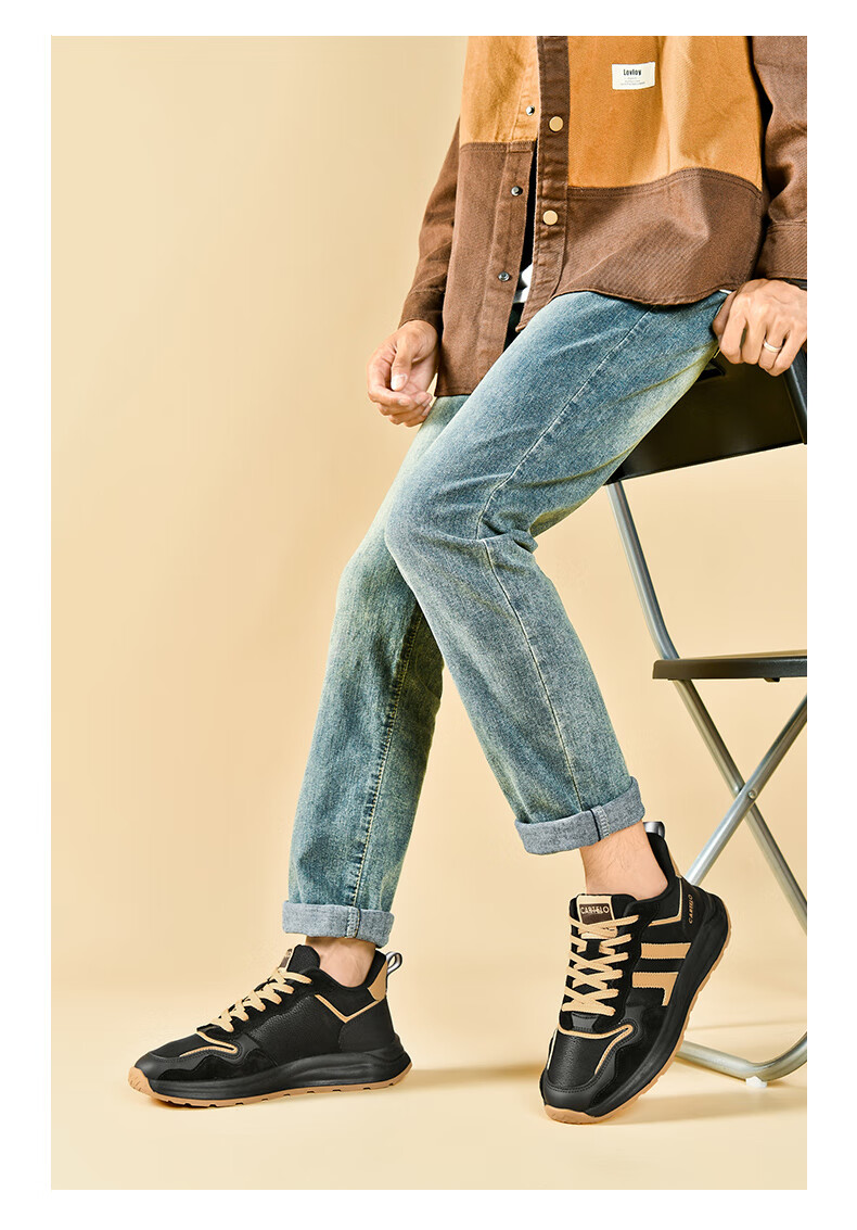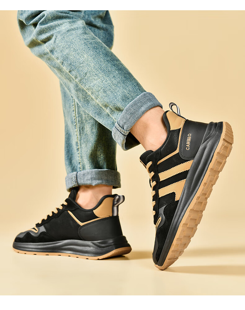 卡帝乐鳄鱼男士运动鞋潮流系带百搭运动鞋厚底复古防滑鞋子男舒适减震男鞋 黑黄 41