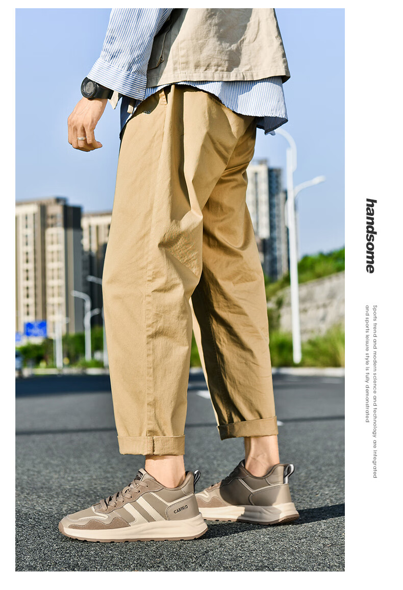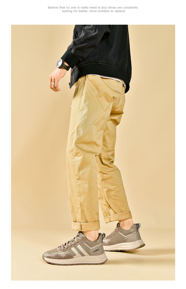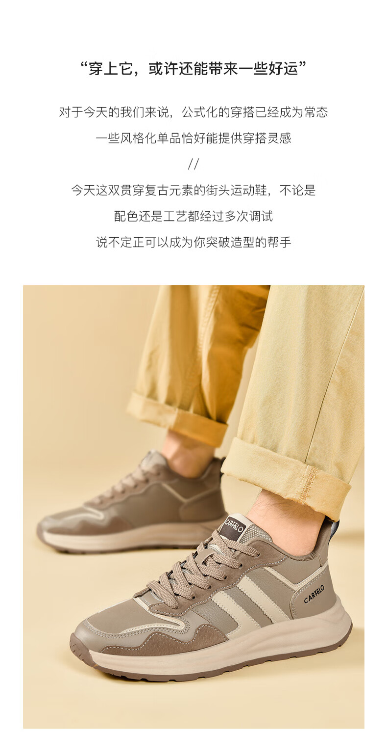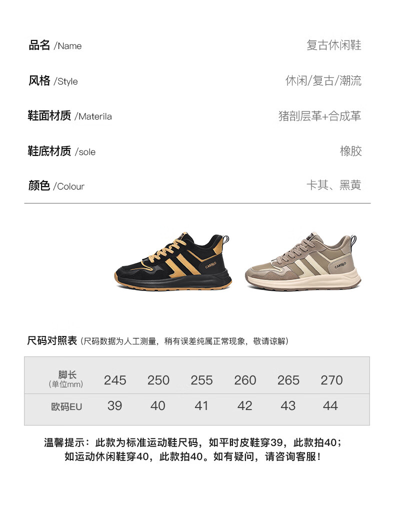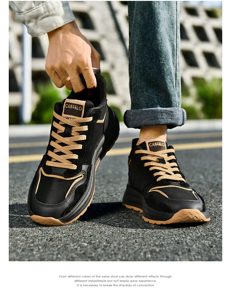 卡帝乐鳄鱼男士运动鞋潮流系带百搭运动鞋厚底复古防滑鞋子男舒适减震男鞋 黑黄 41