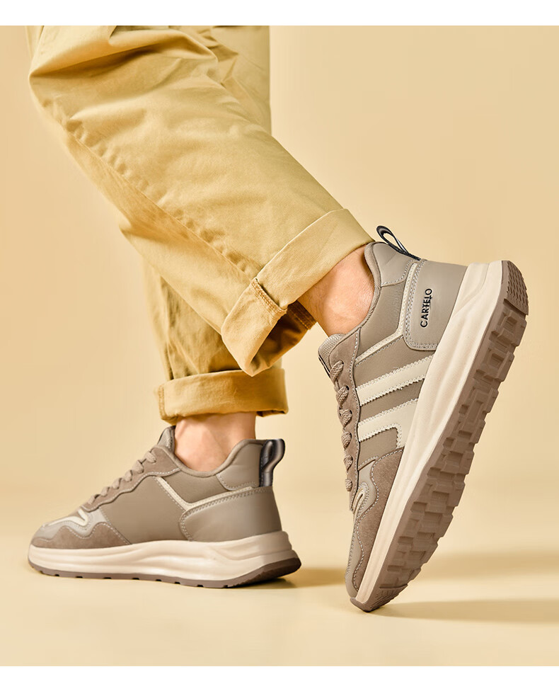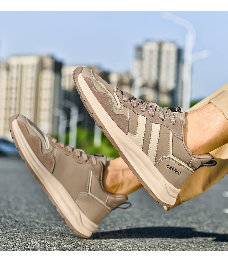 环球女鞋小白鞋子女2025春秋配裙子情侣百搭透气厚底增高休闲板鞋子男 驼色【厚底增高4厘米】 39 男码-【标准码,正常拍】