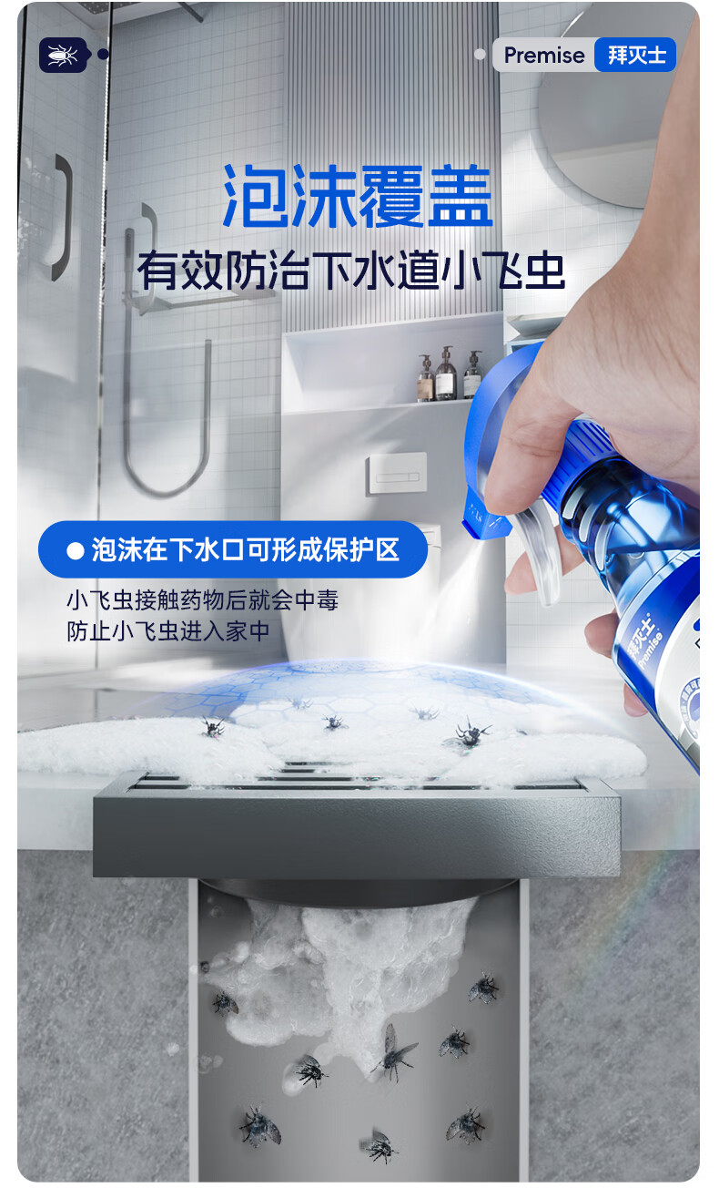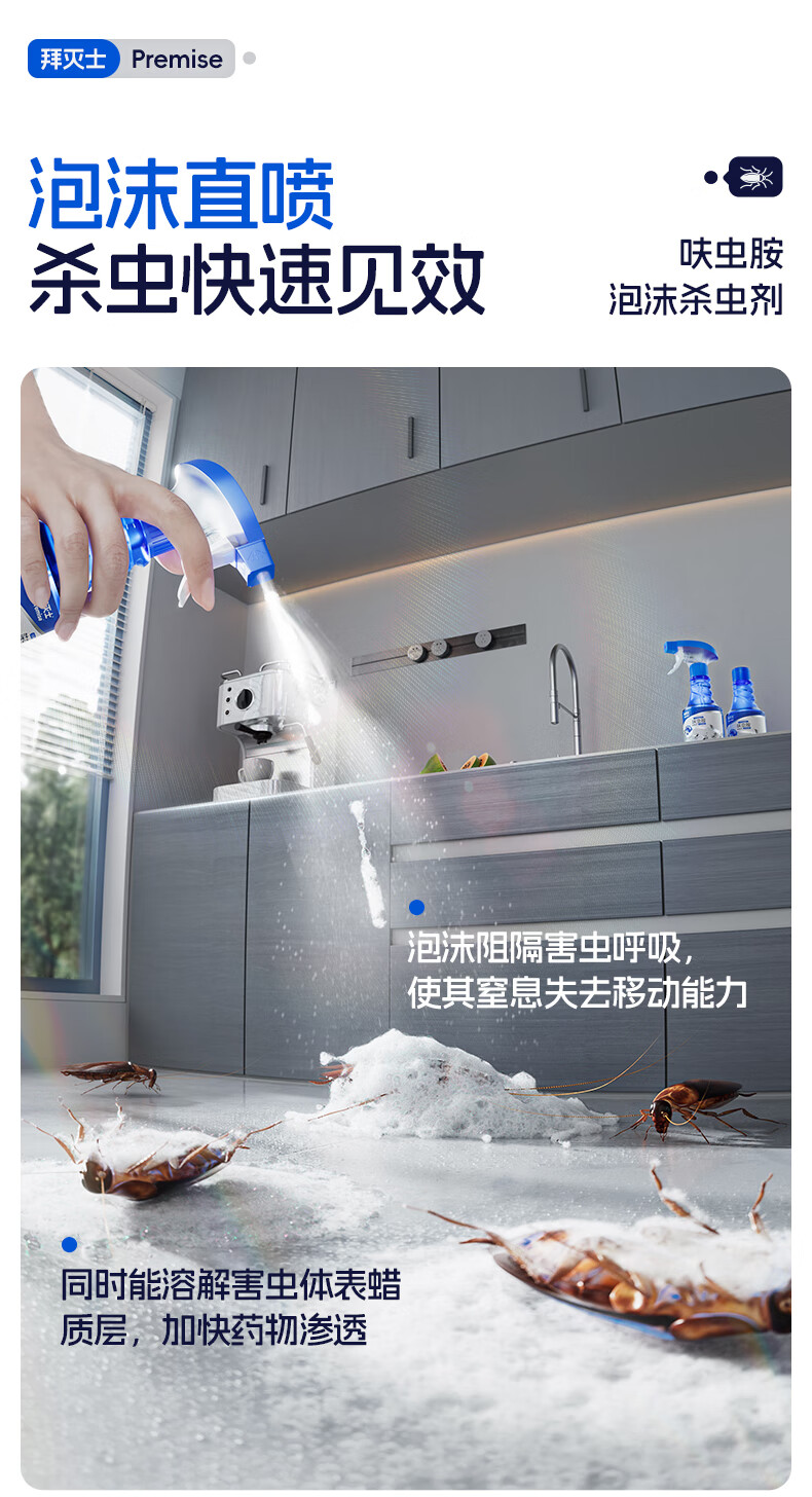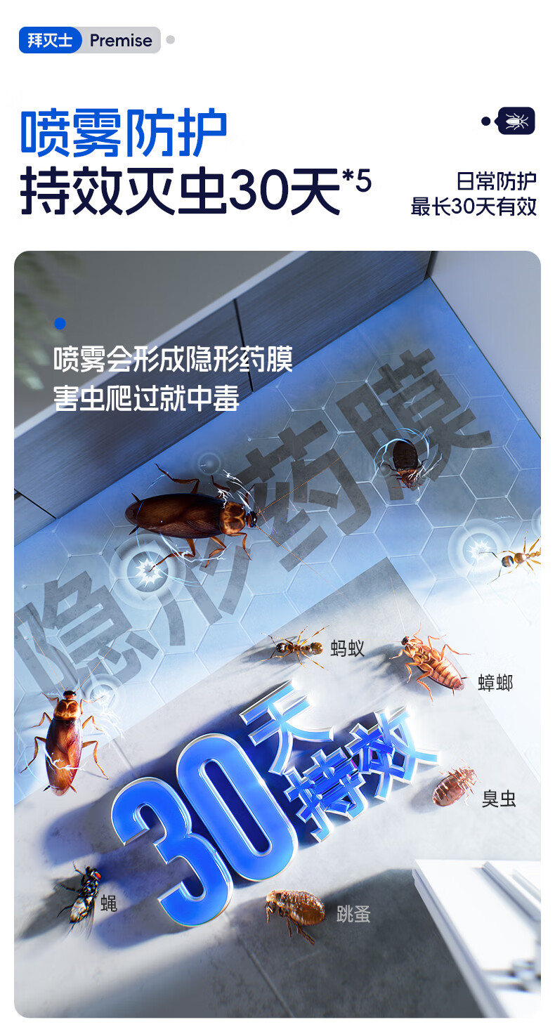 拜灭士呋虫胺杀虫剂喷雾660ml蟑螂跳蚤蚂蚁蝇非隐翅虫下水道去除小飞虫