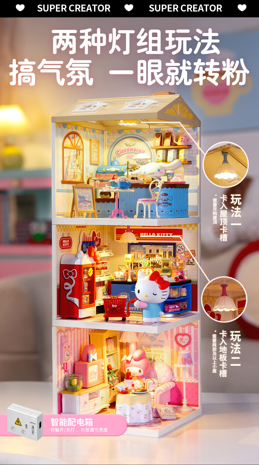 若来(Rolife)超级世界三丽鸥四宫格diy手工小屋积木拼装玩具儿童生日礼物女孩