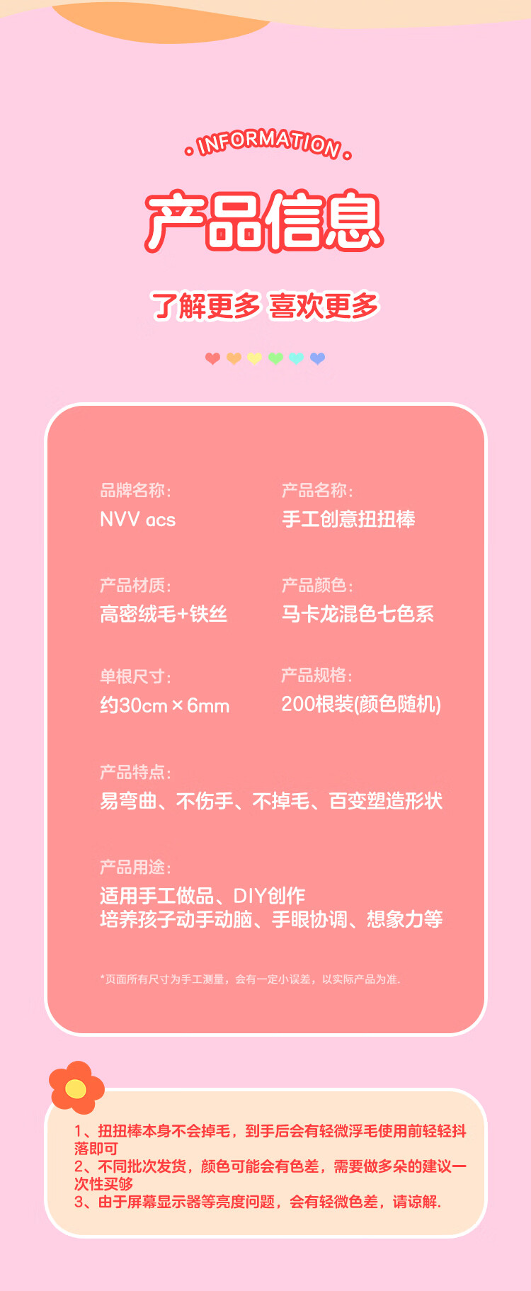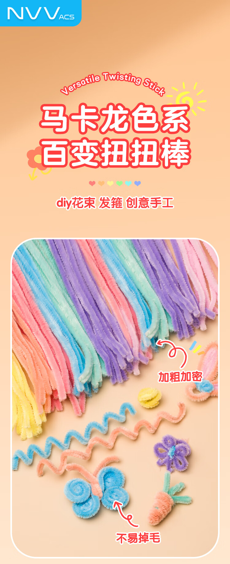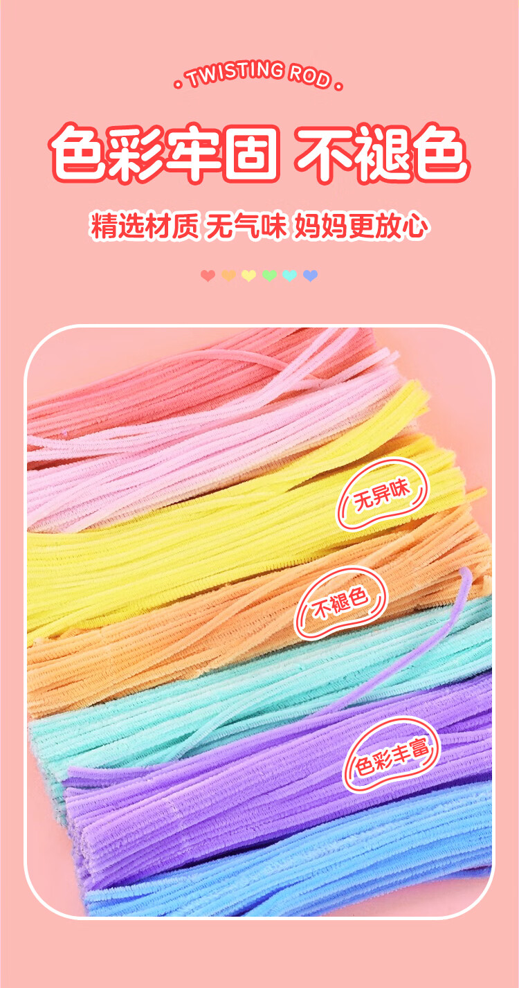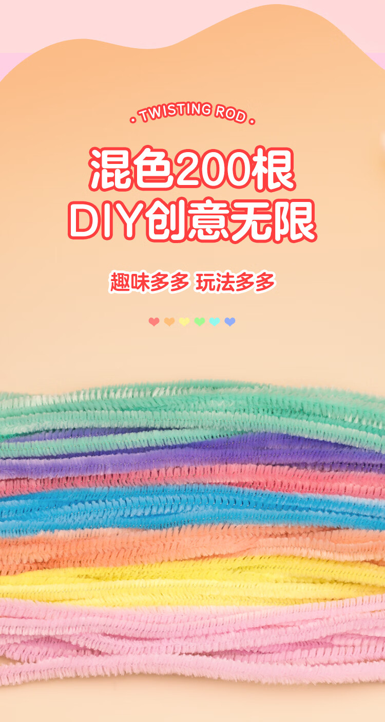 NVV 扭扭棒马卡龙色毛根加密儿童幼儿园学生手工制作国庆节花束diy材料包礼品礼盒 200根/包 NR-NB200