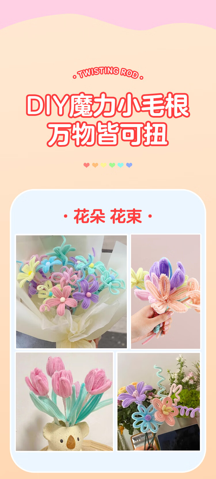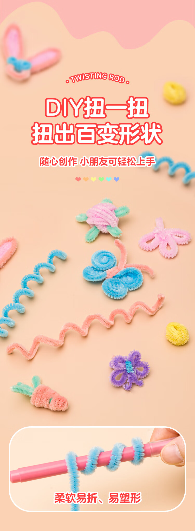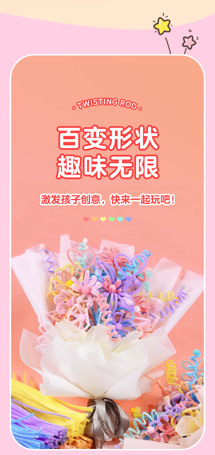 NVV 扭扭棒马卡龙色毛根加密儿童幼儿园学生手工制作国庆节花束diy材料包礼品礼盒 200根/包 NR-NB200