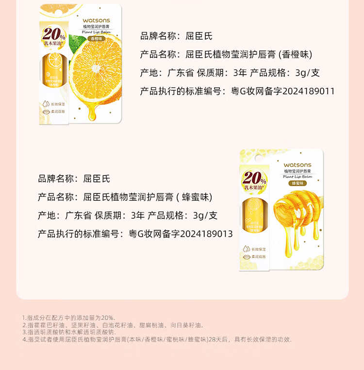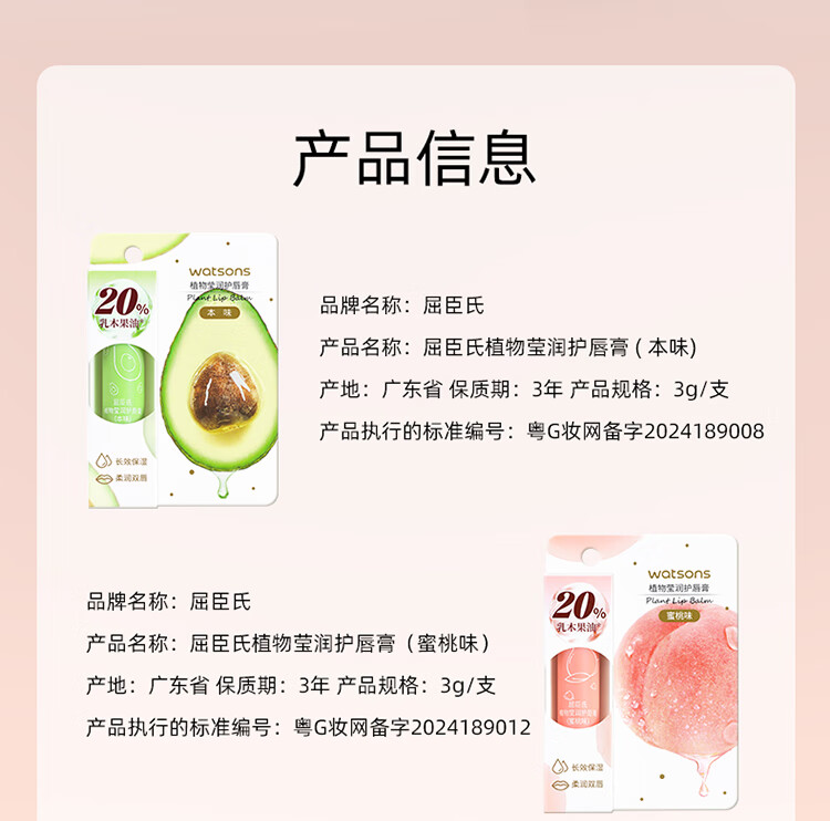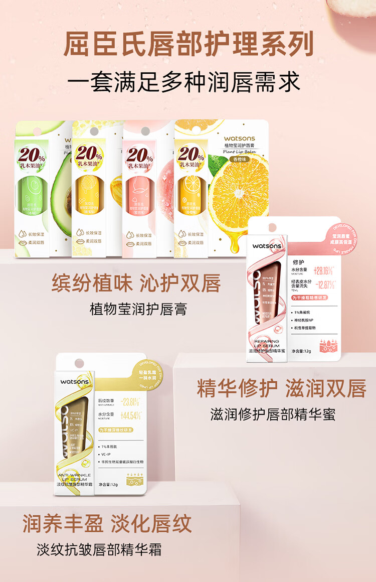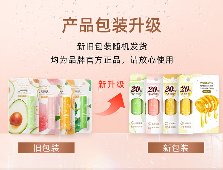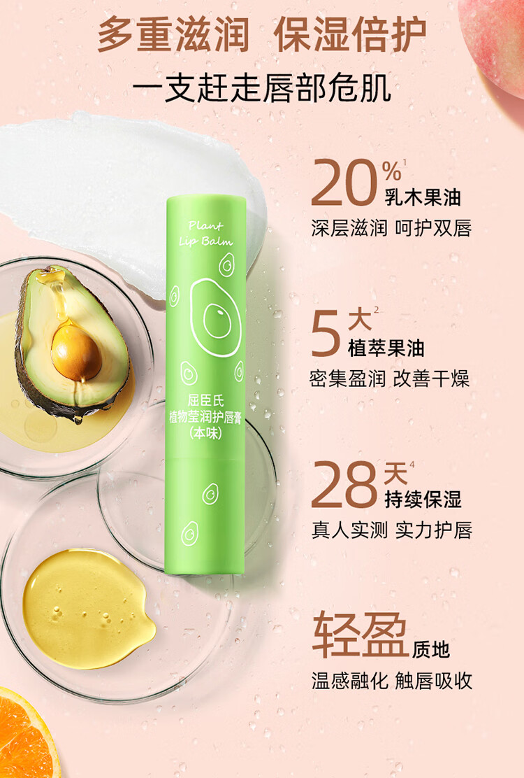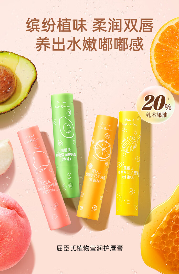 屈臣氏植物莹润护唇膏无香型3g精油滋养 柔润双唇 保湿倍护
