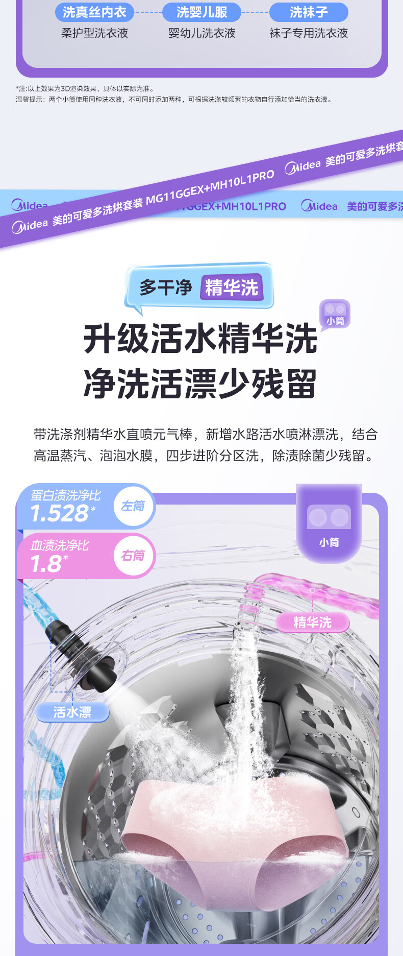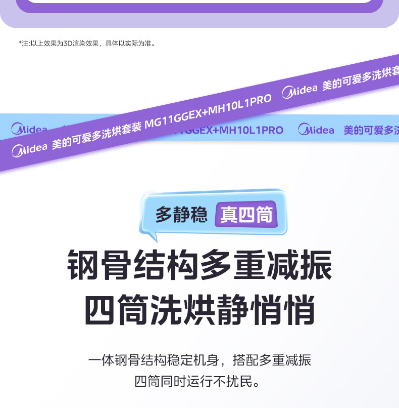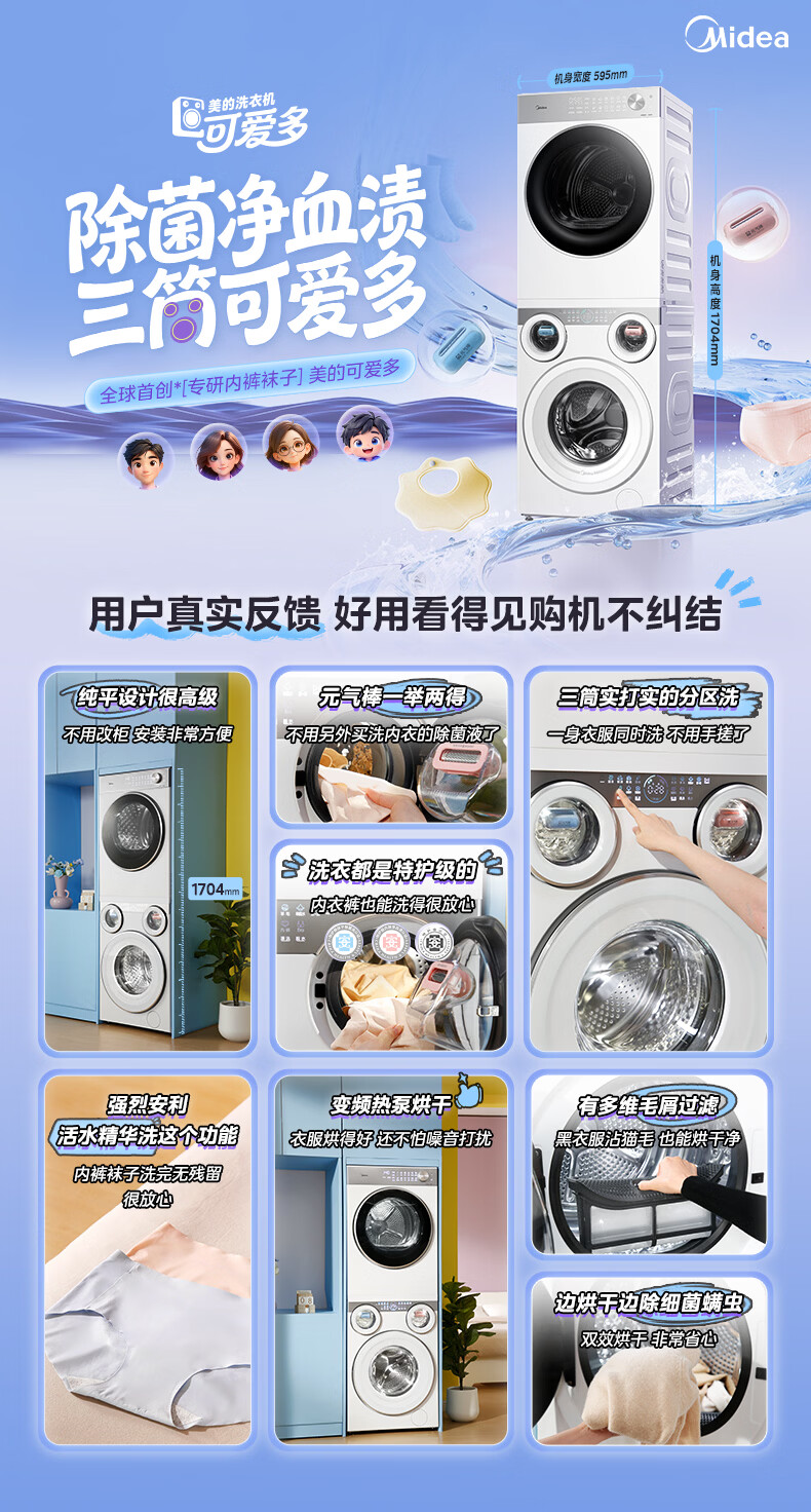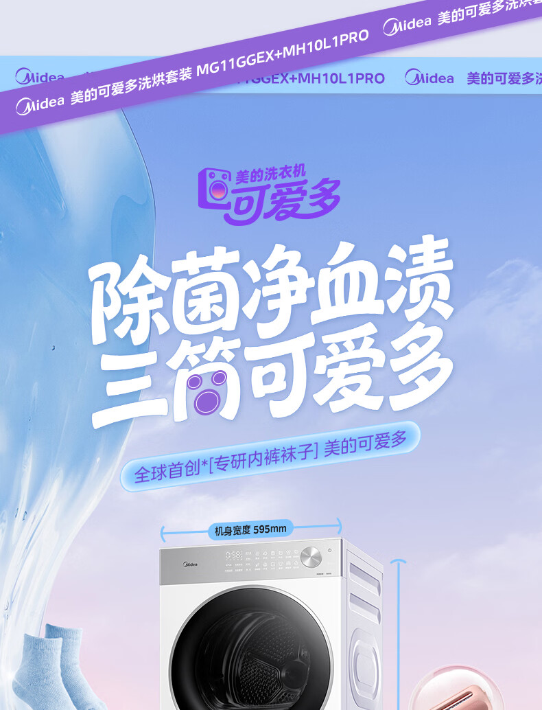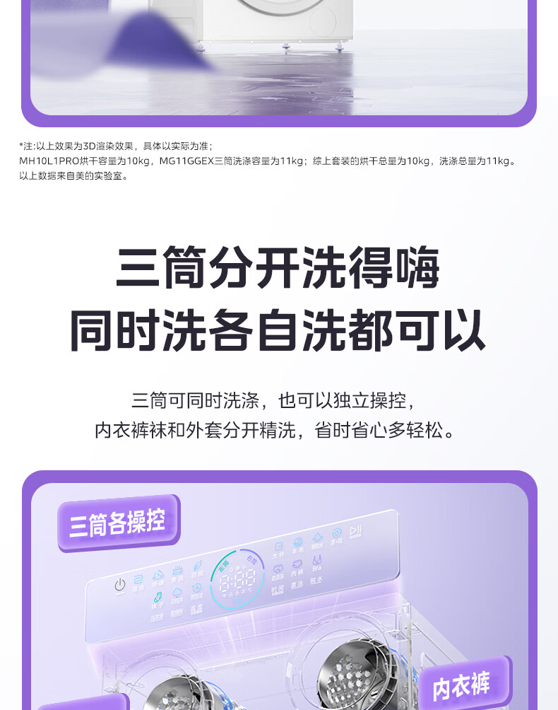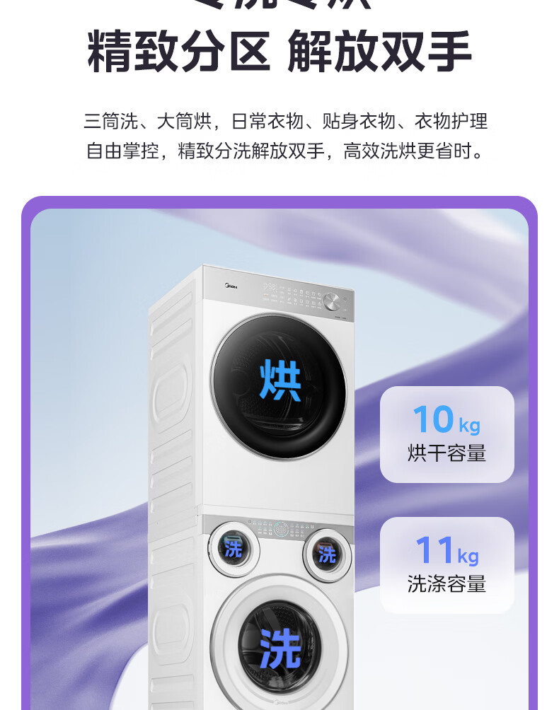 美的(Midea)可爱多分区洗三筒洗烘套装全自动11kg滚筒+10kg热泵烘干机 变频三桶母婴儿洗智能投放 除菌除螨焕新补贴 MG11GGEX+MH10L1PRO