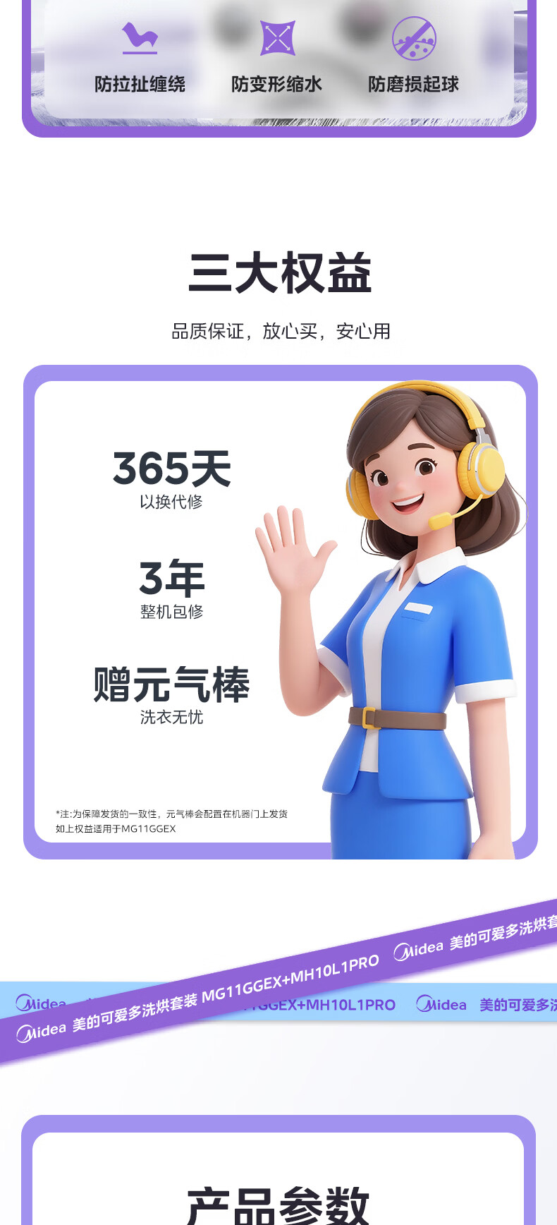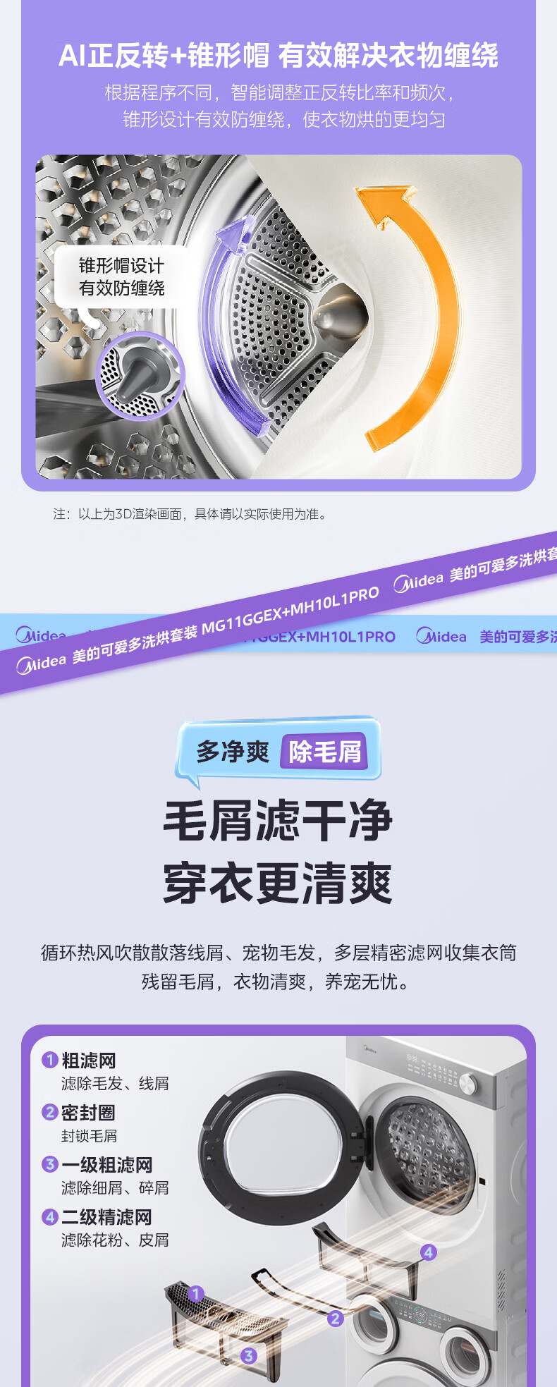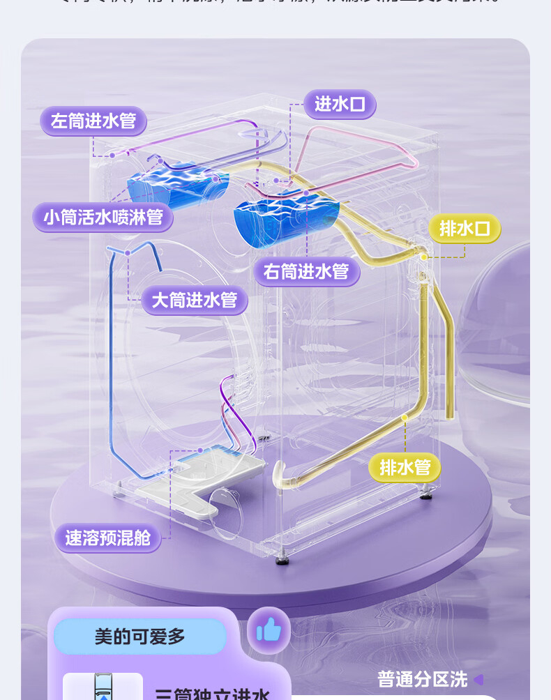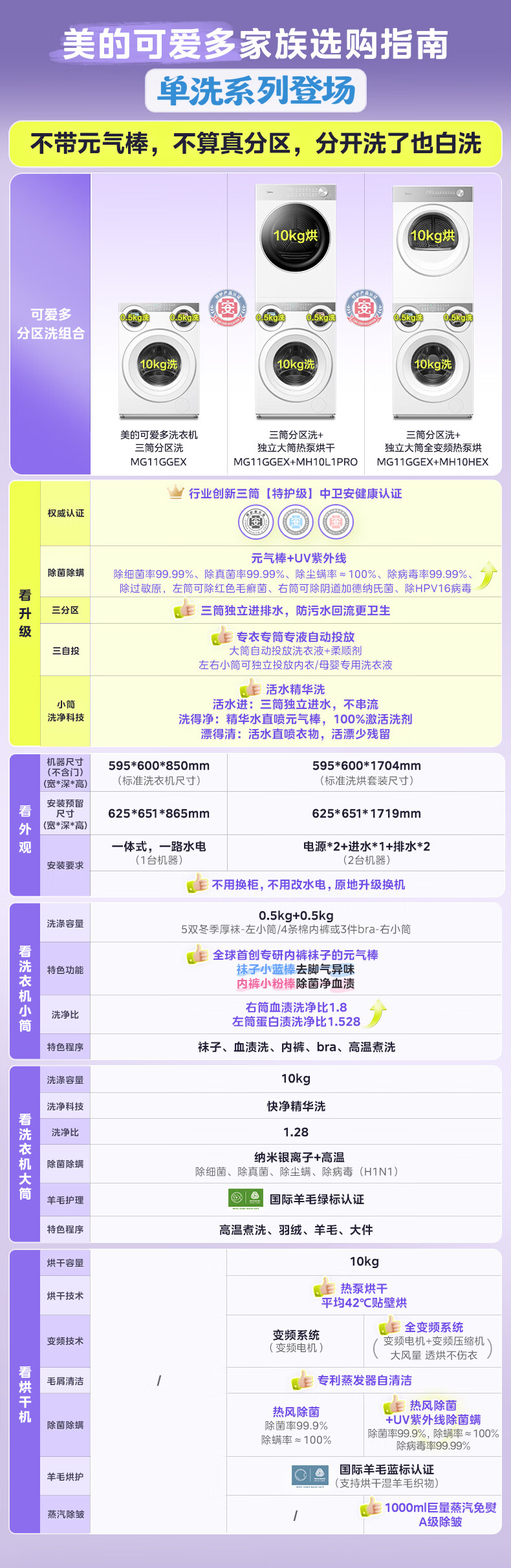 美的(Midea)可爱多分区洗三筒洗烘套装全自动11kg滚筒+10kg热泵烘干机 变频三桶母婴儿洗智能投放 除菌除螨焕新补贴 MG11GGEX+MH10L1PRO