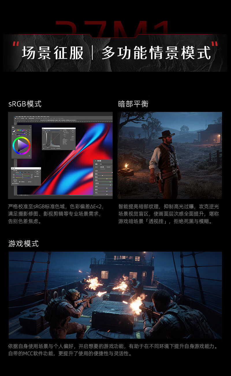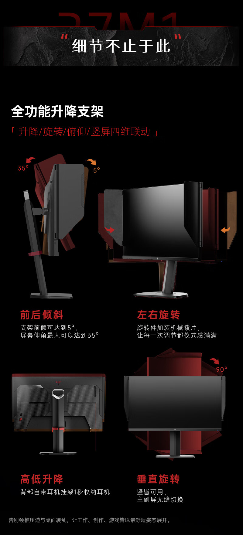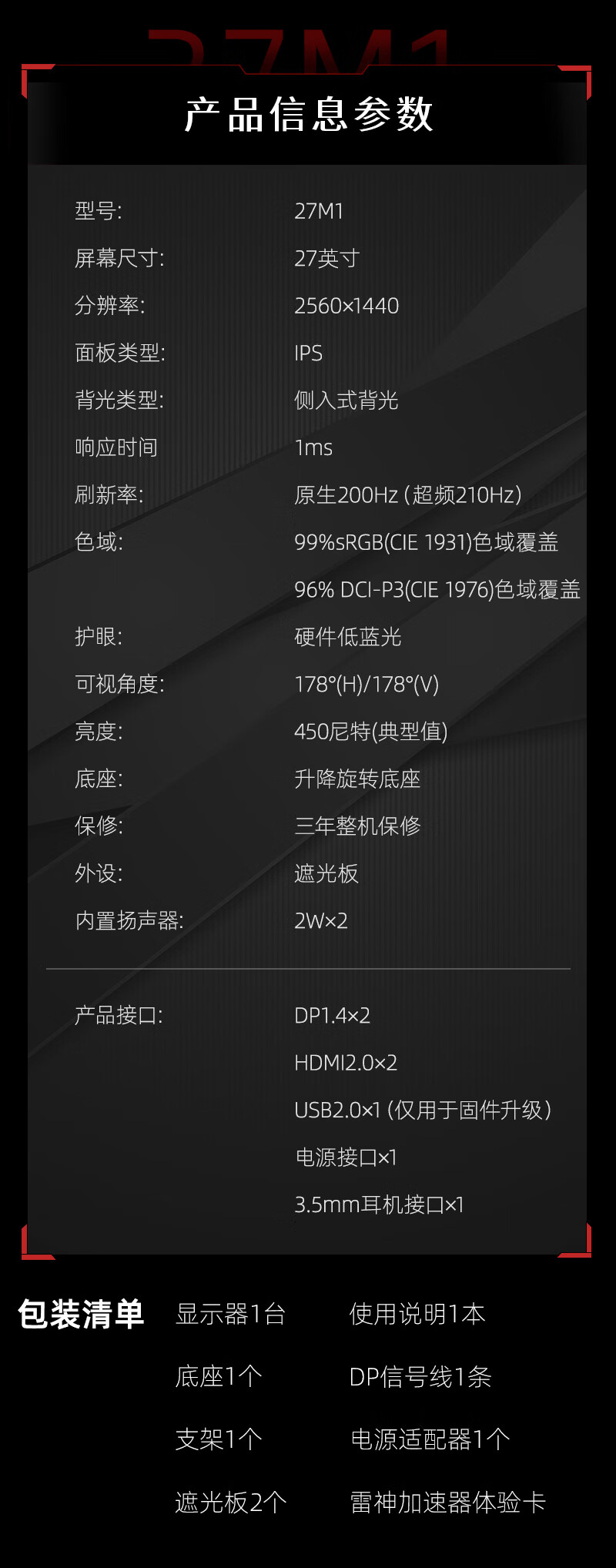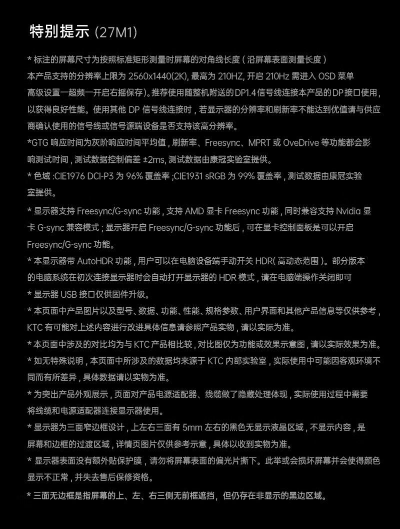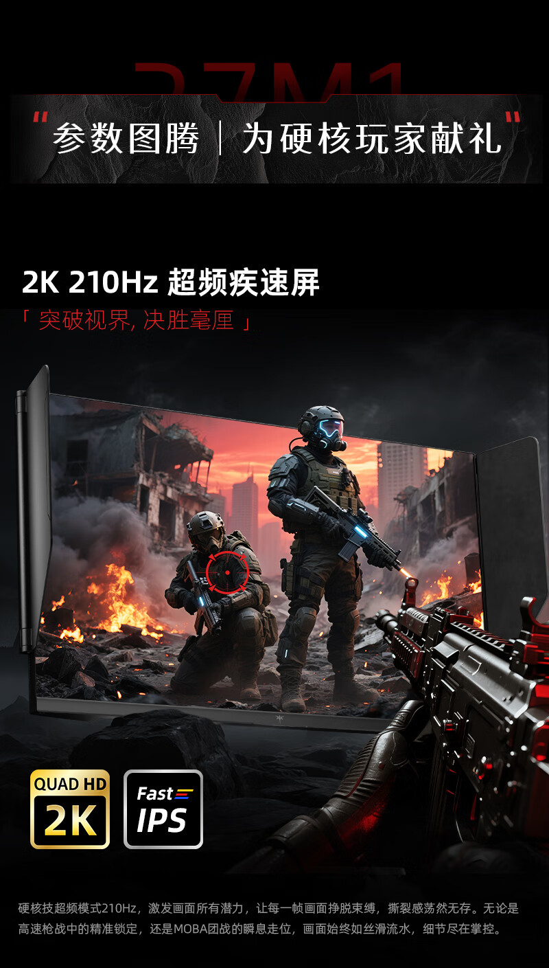 KTC 27英寸2K高清210Hz显示屏HDR450nit原生200Hz内置音箱 硬件低蓝光 升降旋转显示器大师27M1