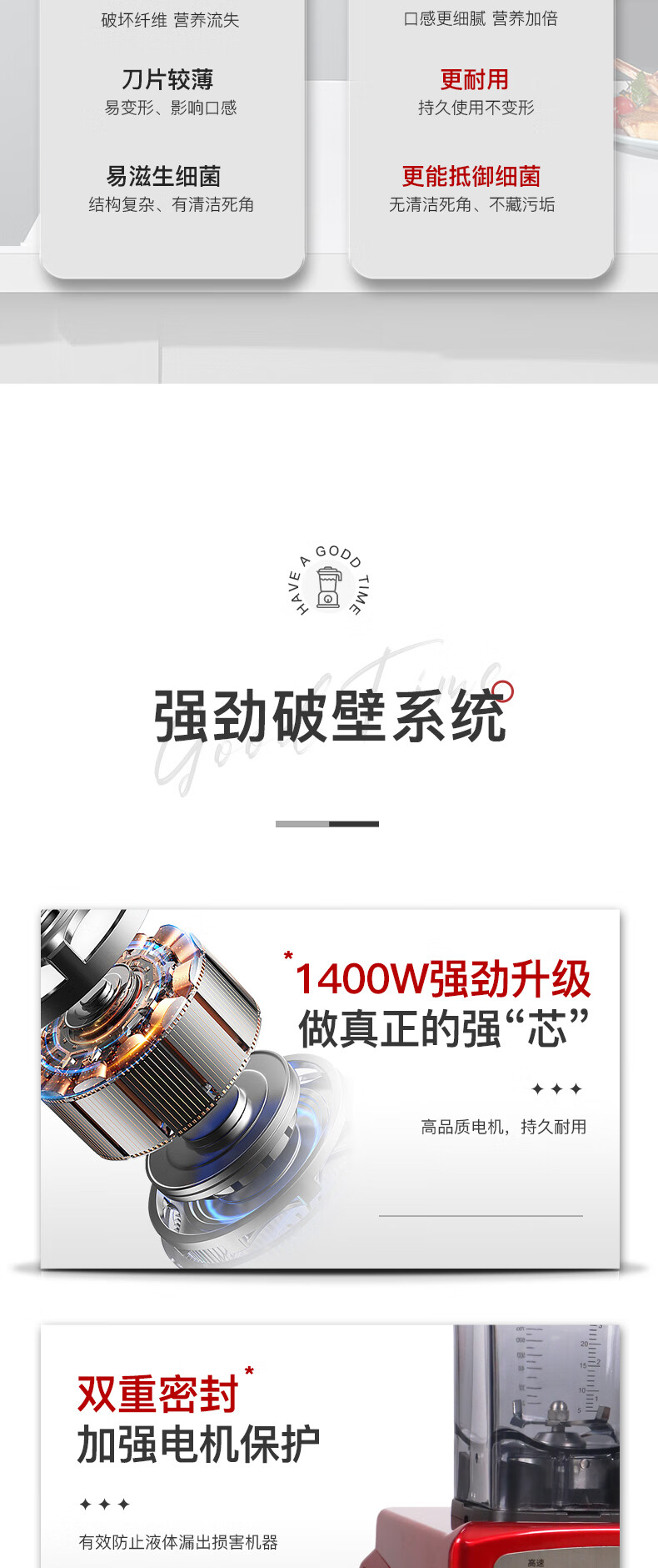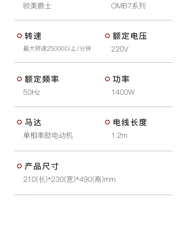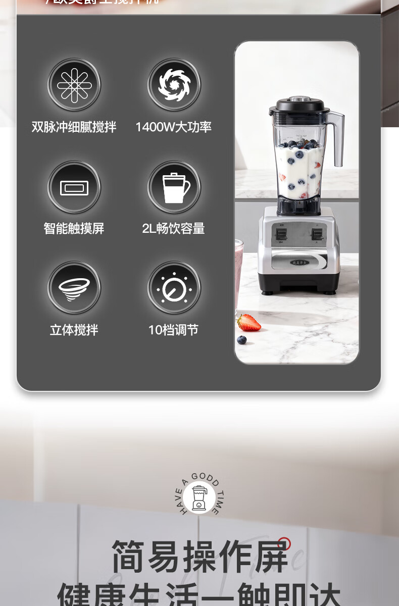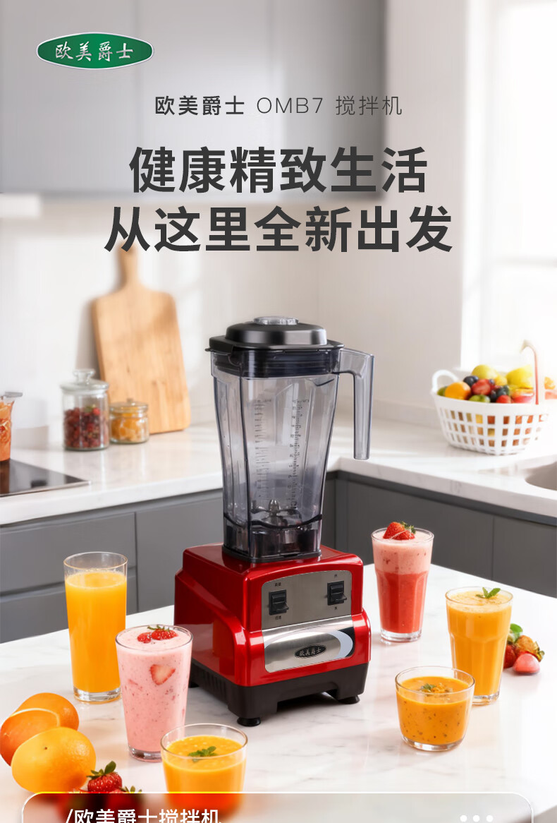 欧美爵士破壁机大容量家用轻音全自动多功能降噪早餐料理机沙冰磨浆搅拌机豆浆榨果汁机婴儿辅食机OMB7R-C