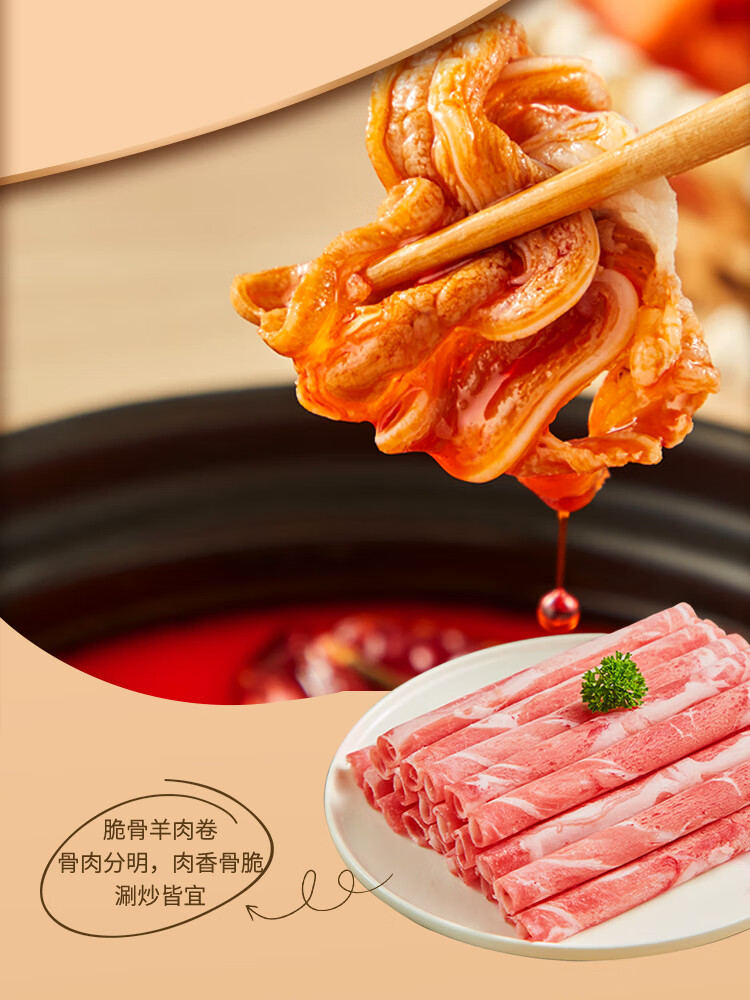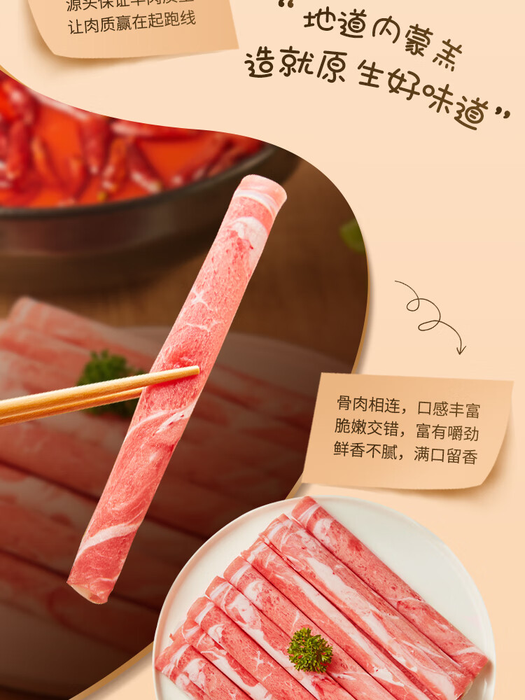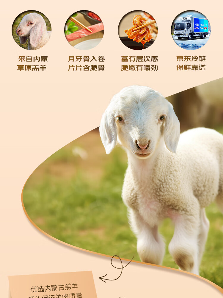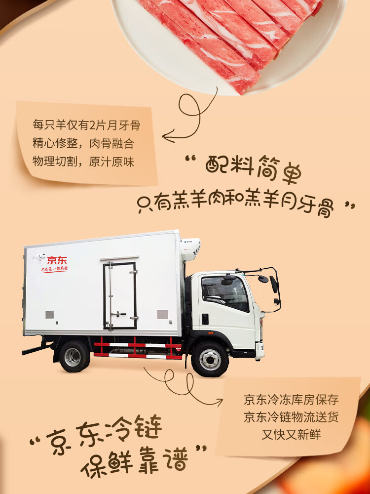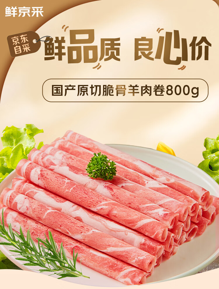 鲜京采国产原切高钙羊肉卷1.6斤(400g*2)京东自有品牌 春节也送货
