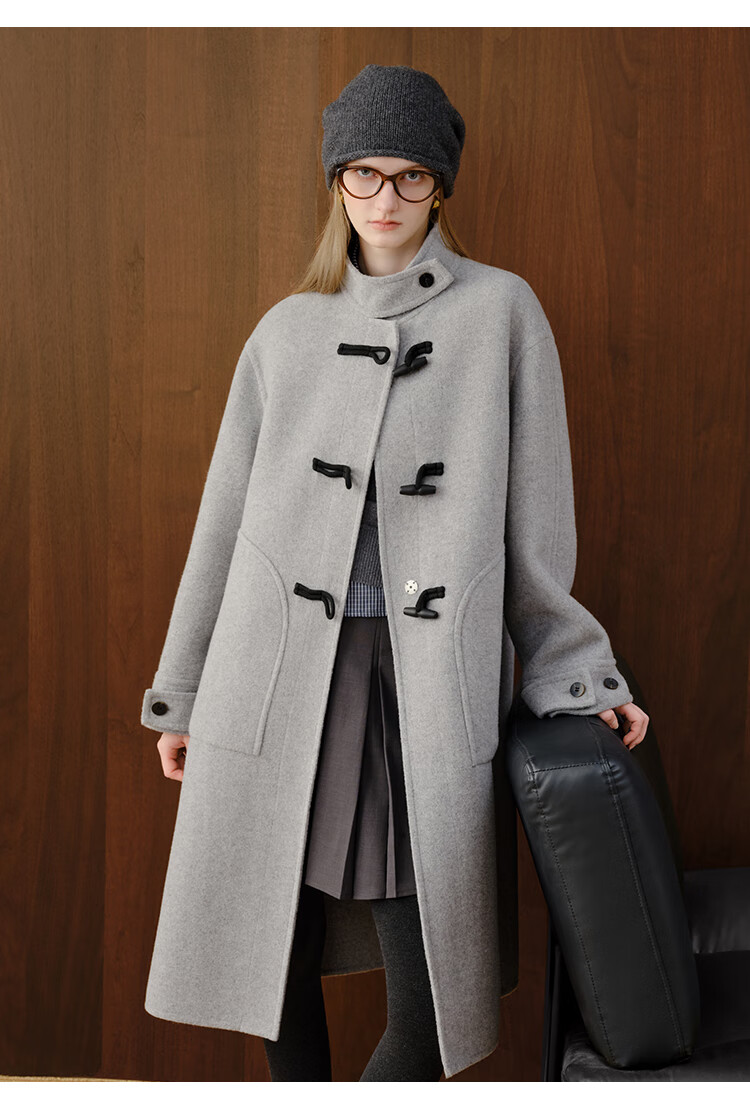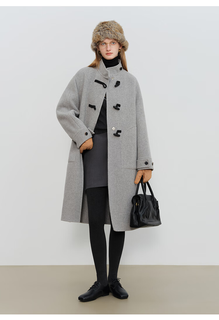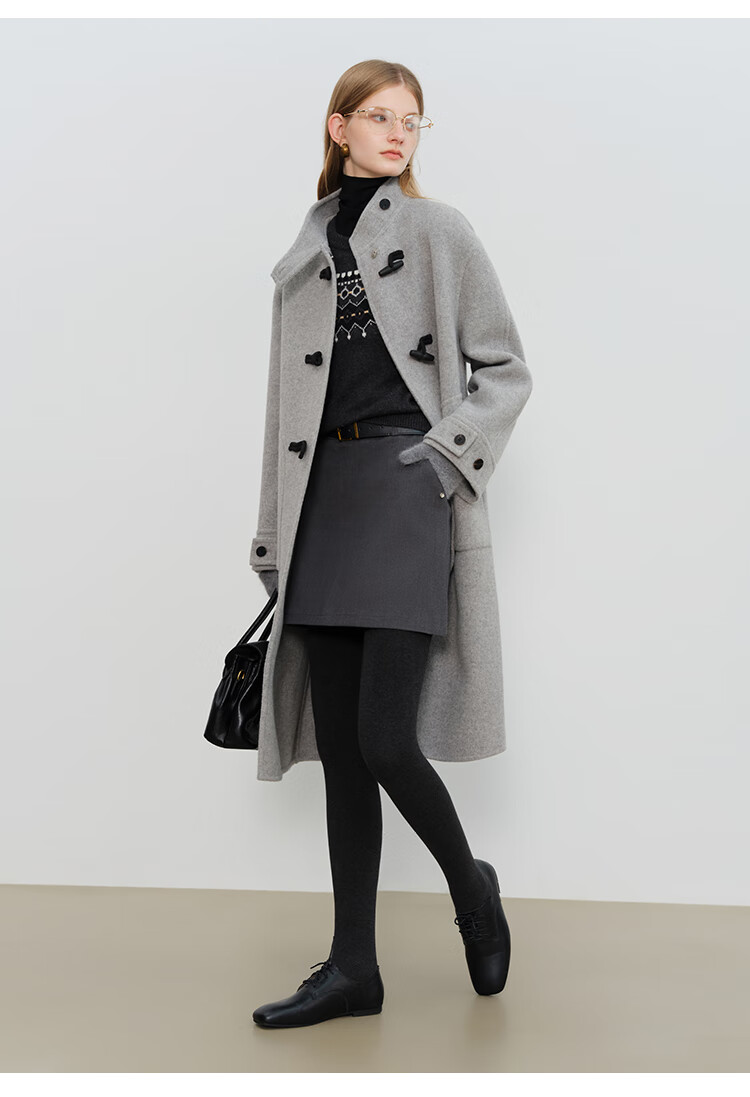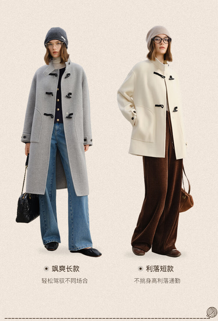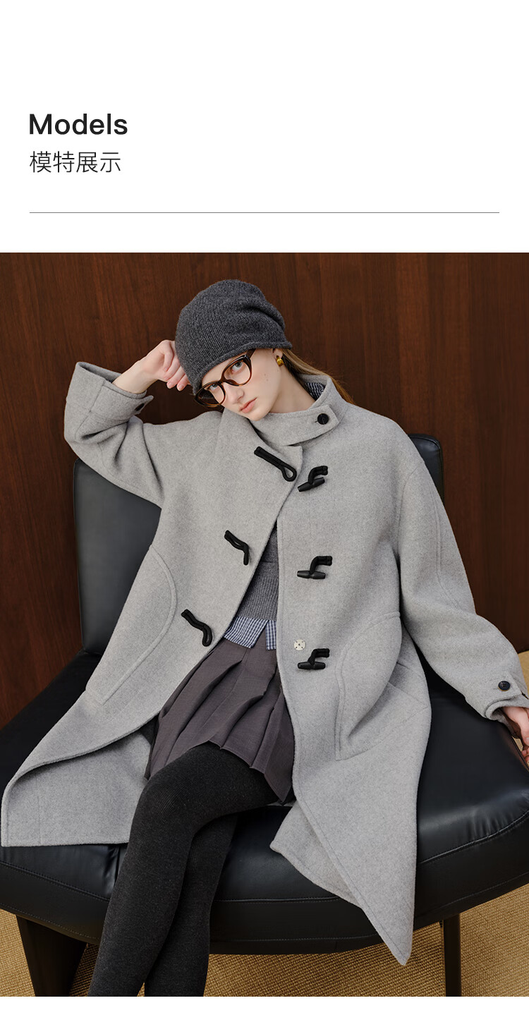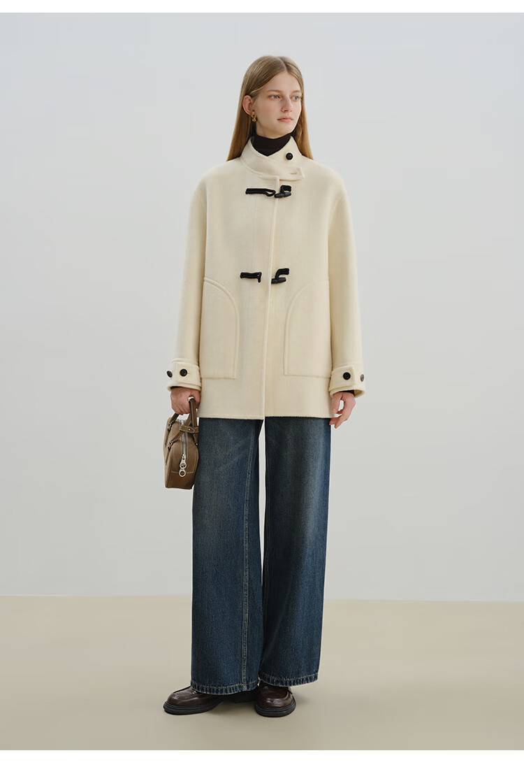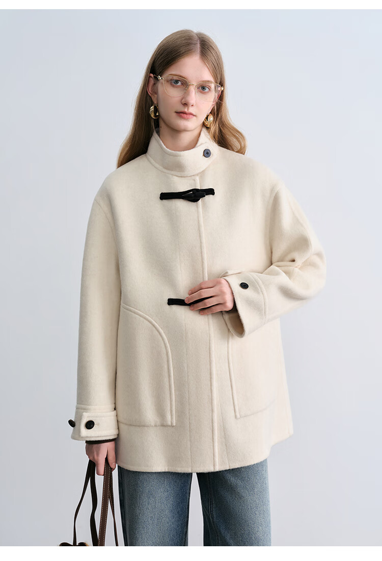 自巧巧制STUDIO 小个子牛角扣羊毛大衣女2025新款立领双面呢外套 奶油白短款 XXS (尺码:1)