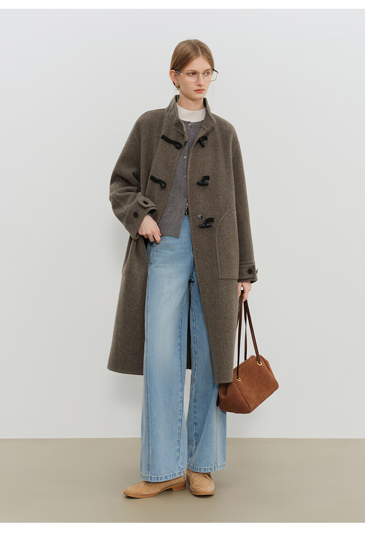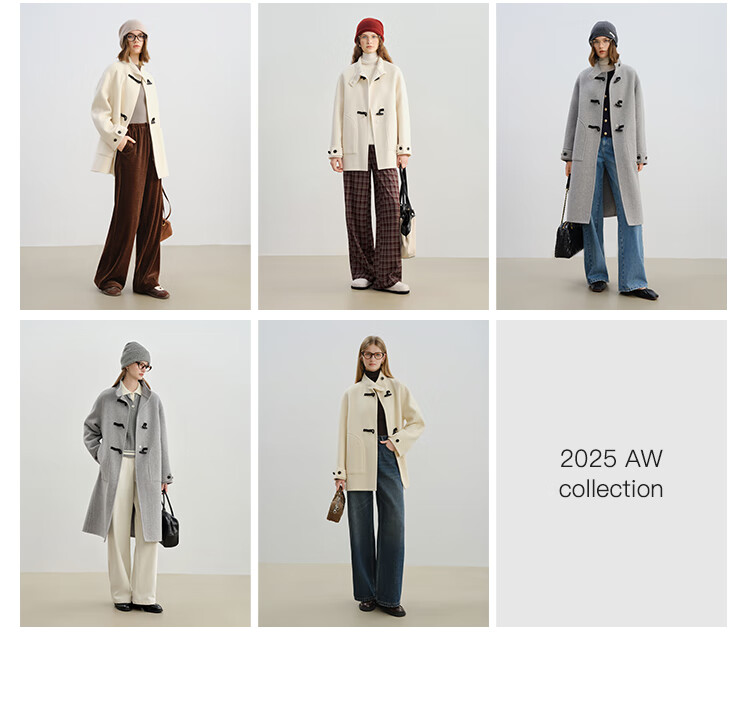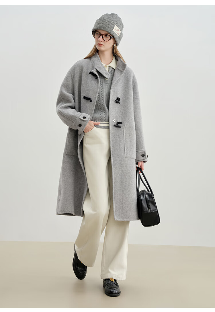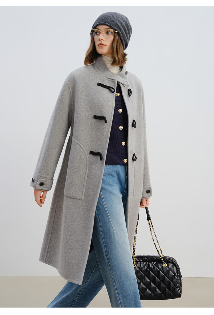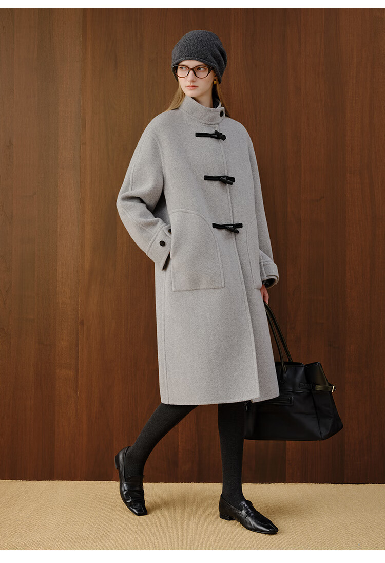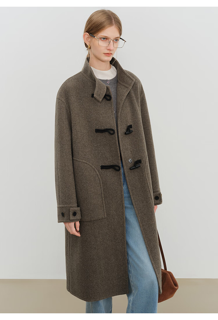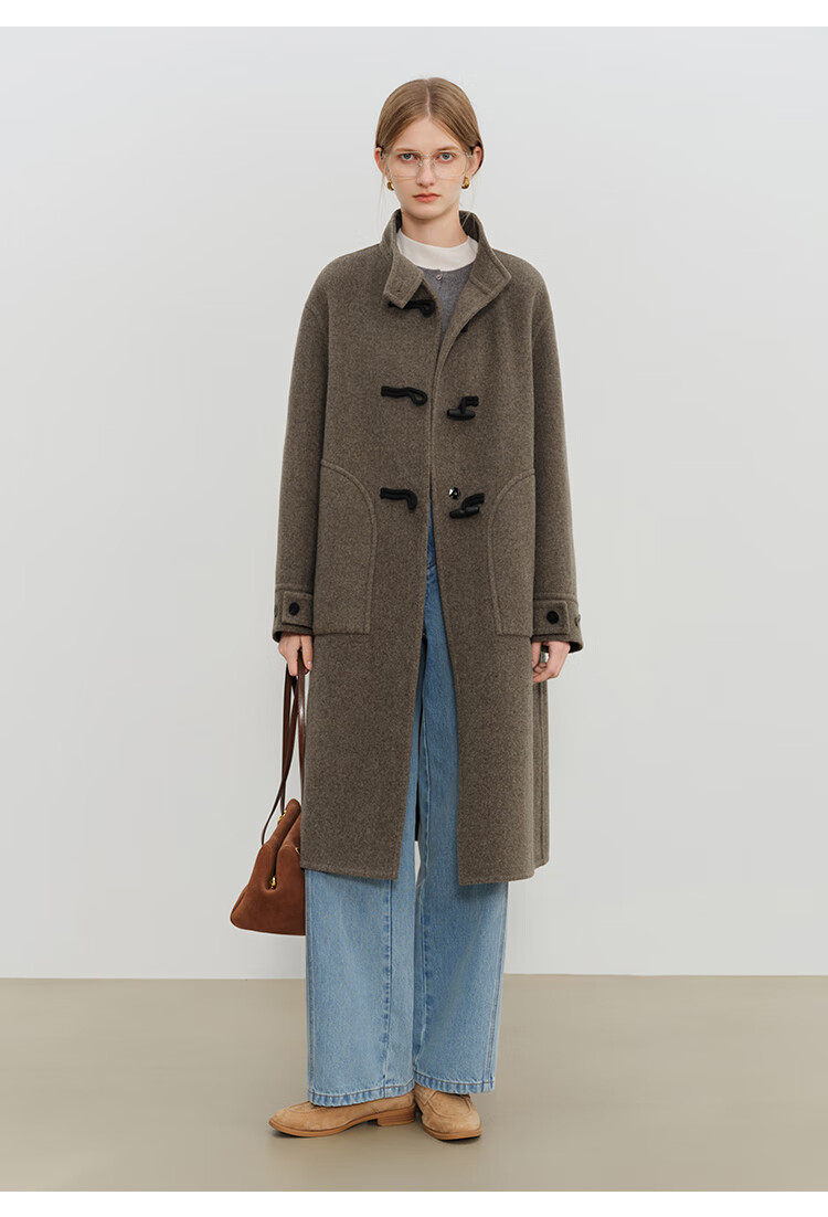 自巧巧制STUDIO 小个子牛角扣羊毛大衣女2025新款立领双面呢外套 奶油白短款 XXS (尺码:1)
