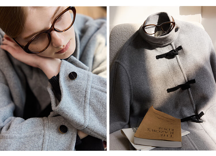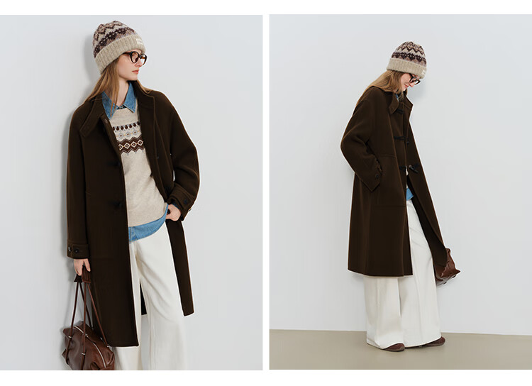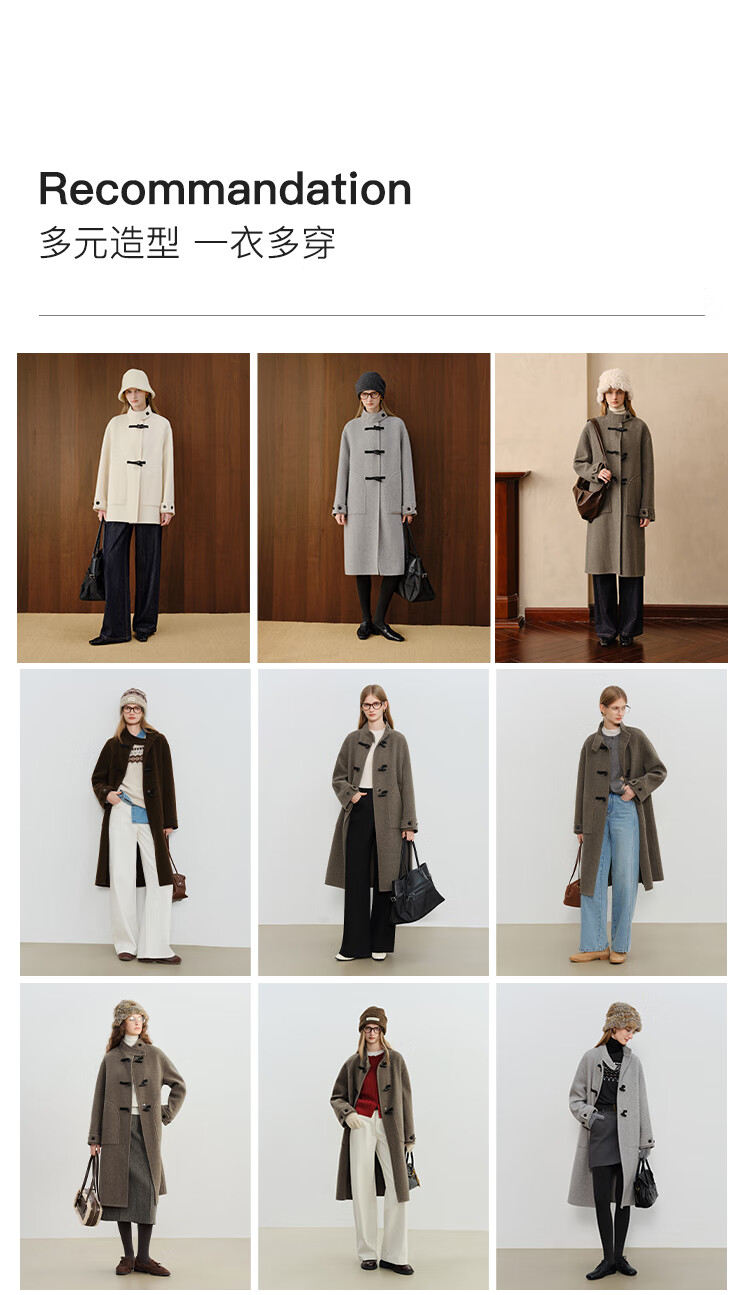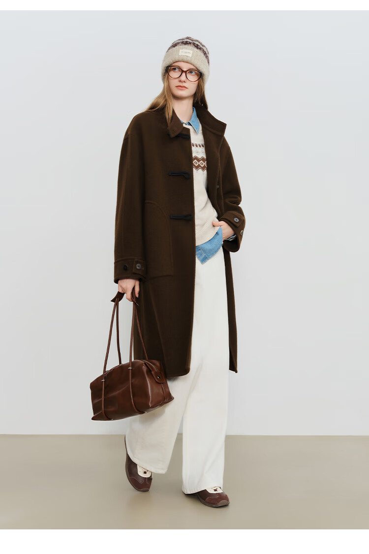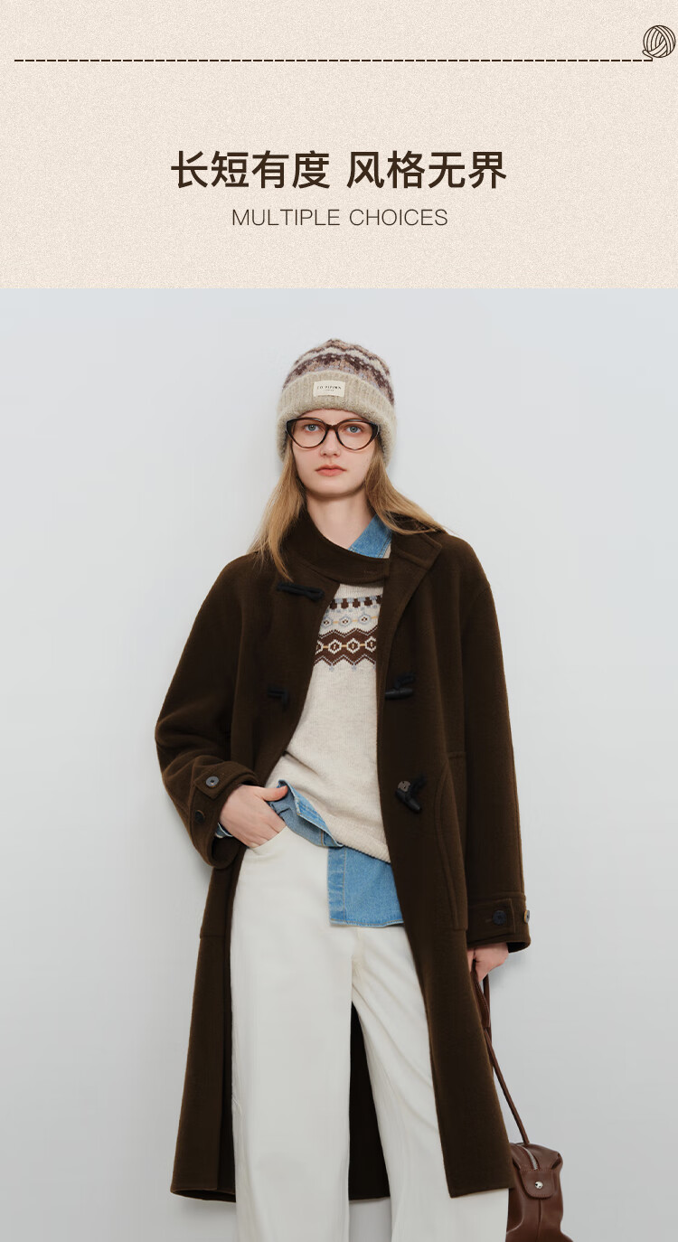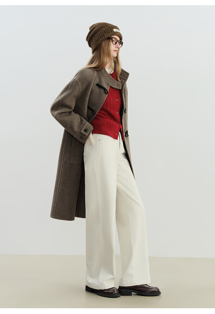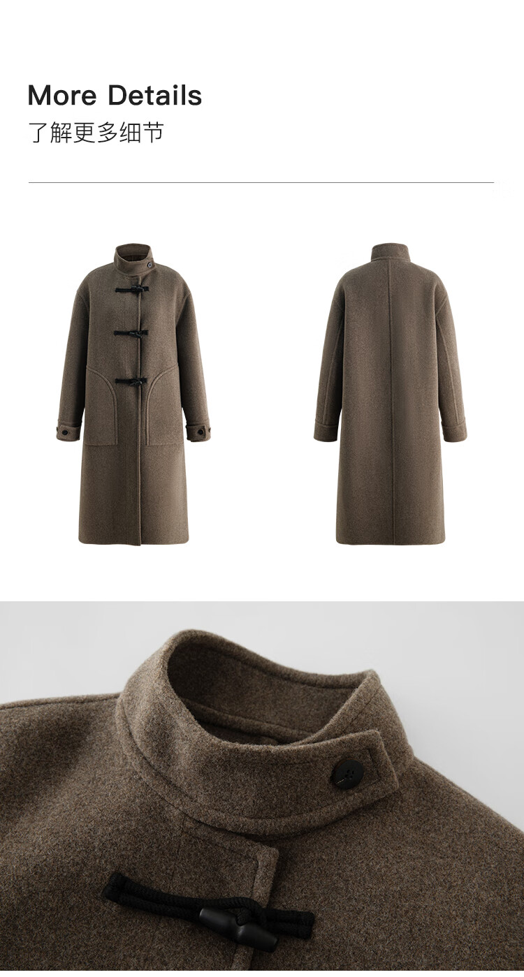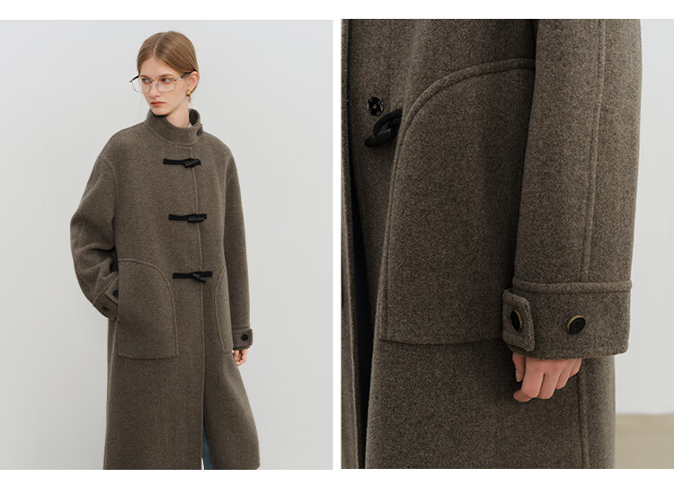 自巧巧制STUDIO 小个子牛角扣羊毛大衣女2025新款立领双面呢外套 奶油白短款 XXS (尺码:1)