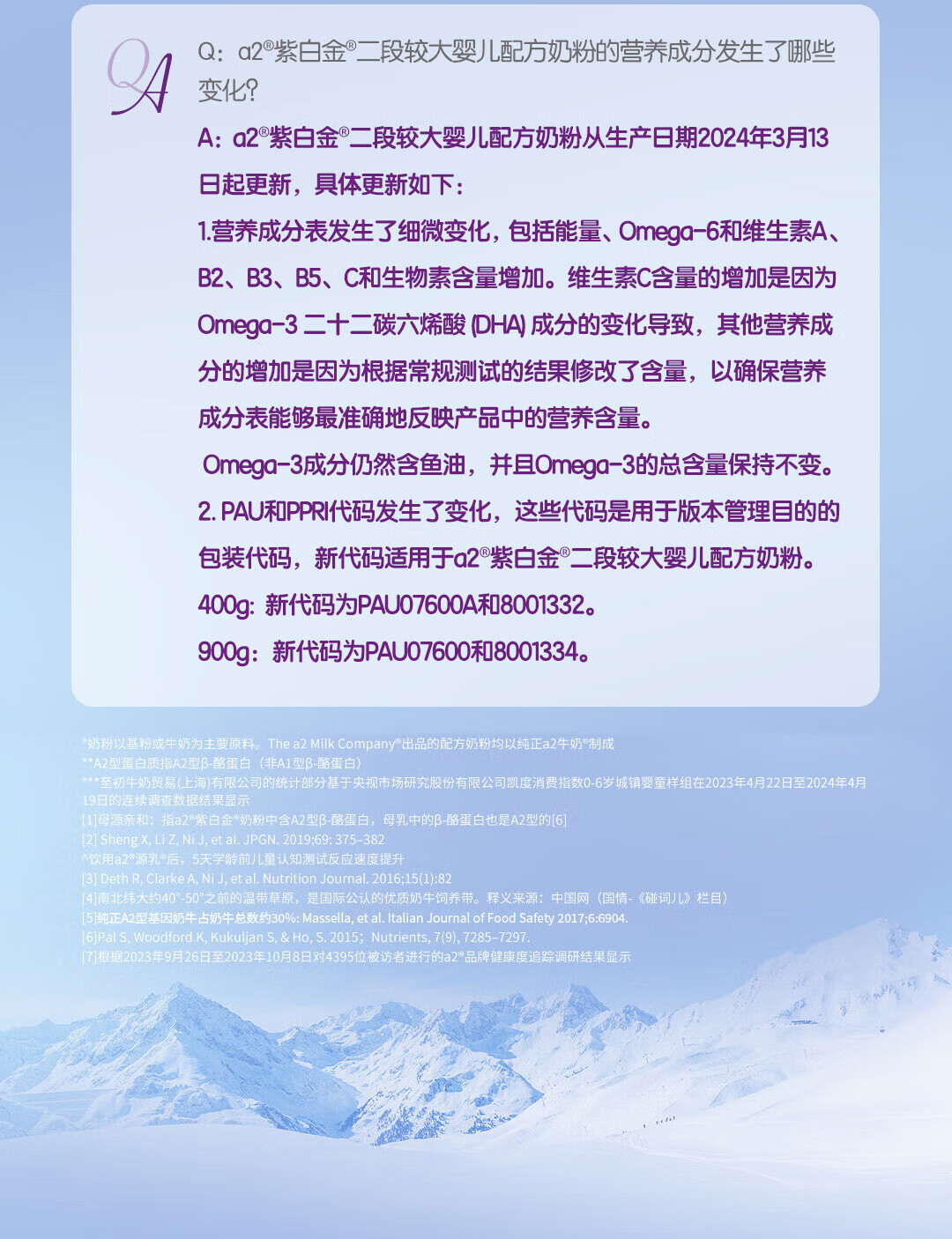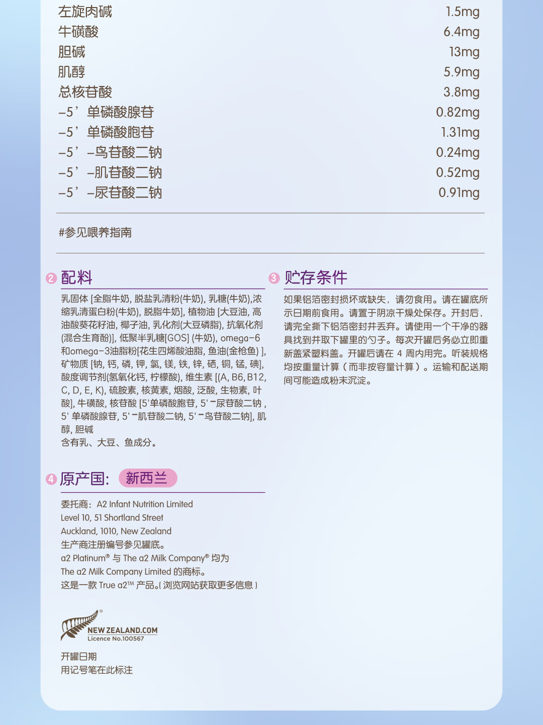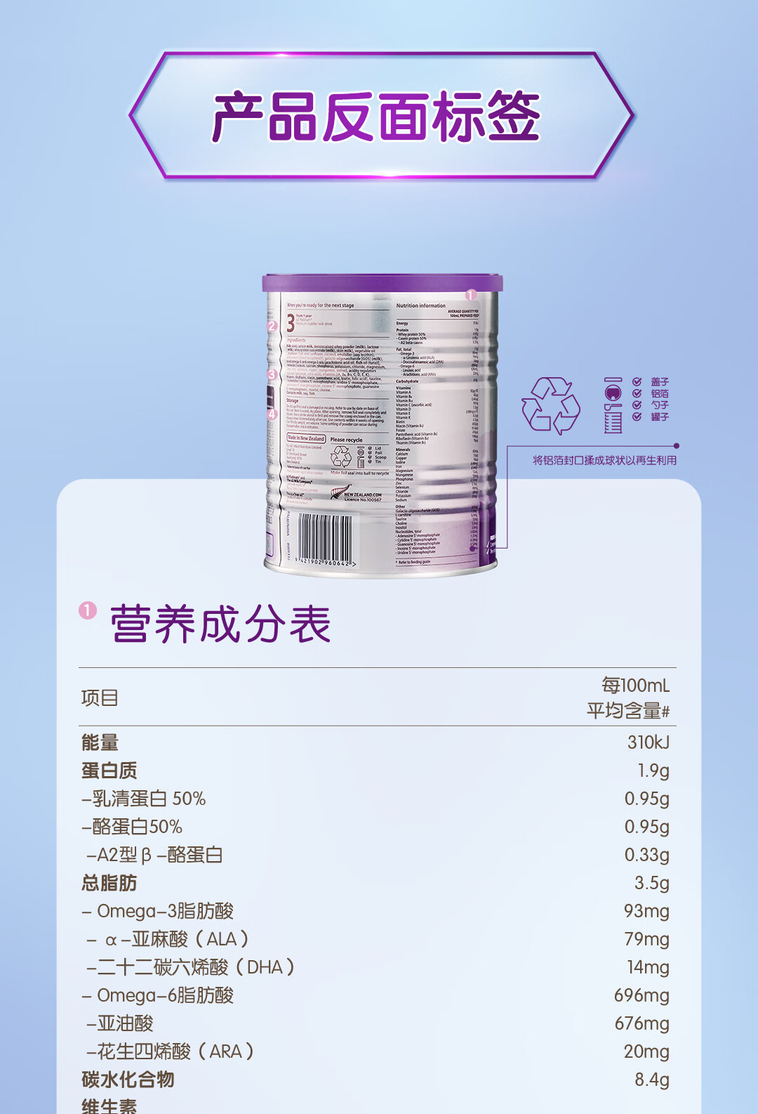 a2奶粉紫白金A2蛋白+DHA+核苷酸 婴儿配方奶粉2段400g试用装
