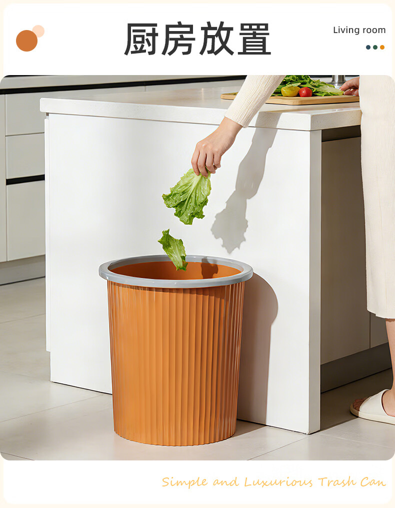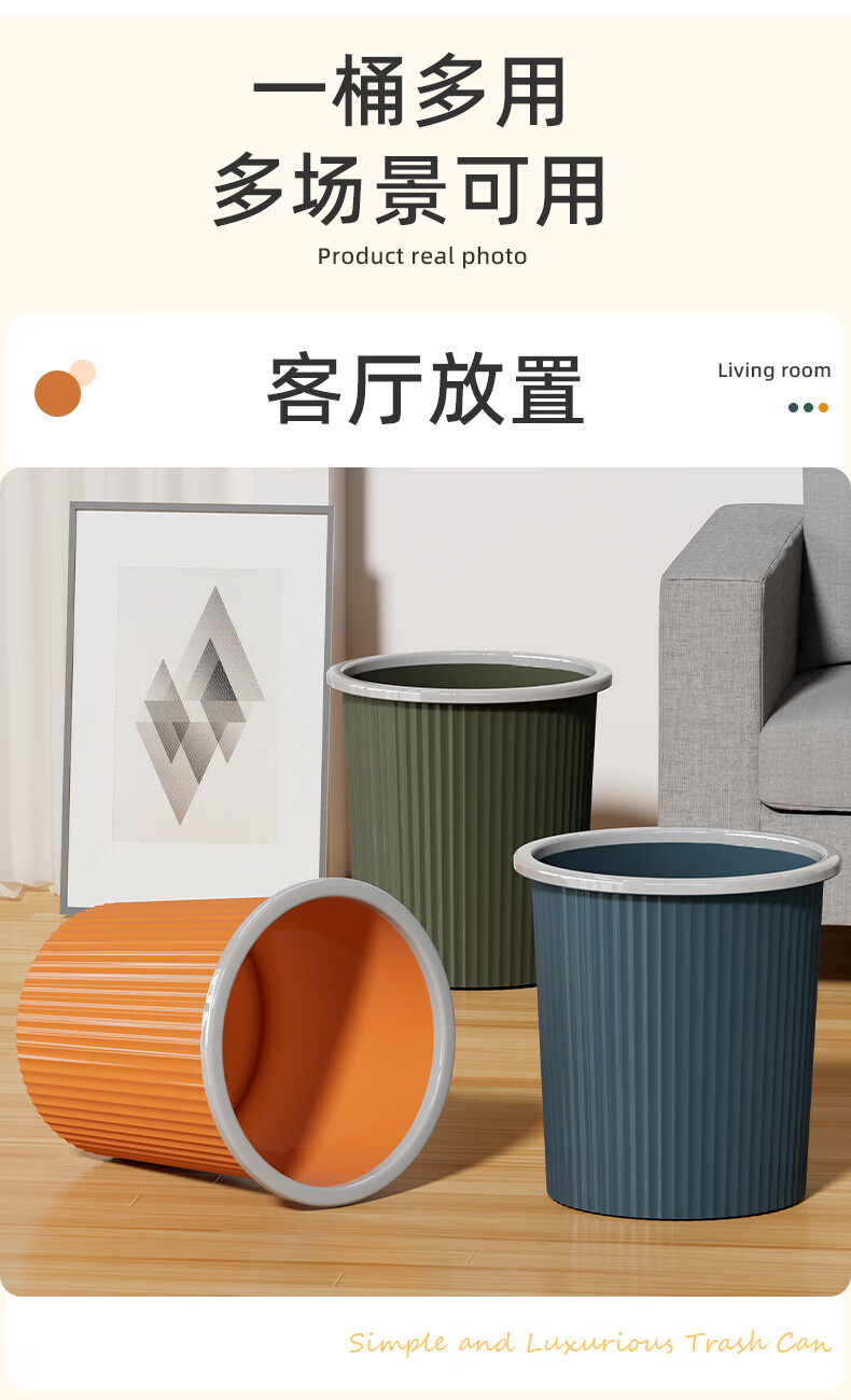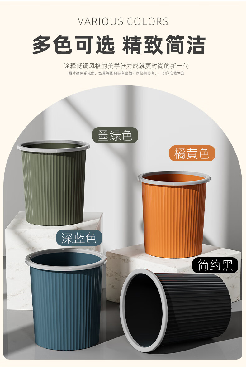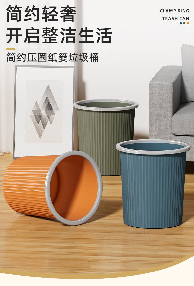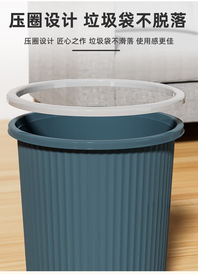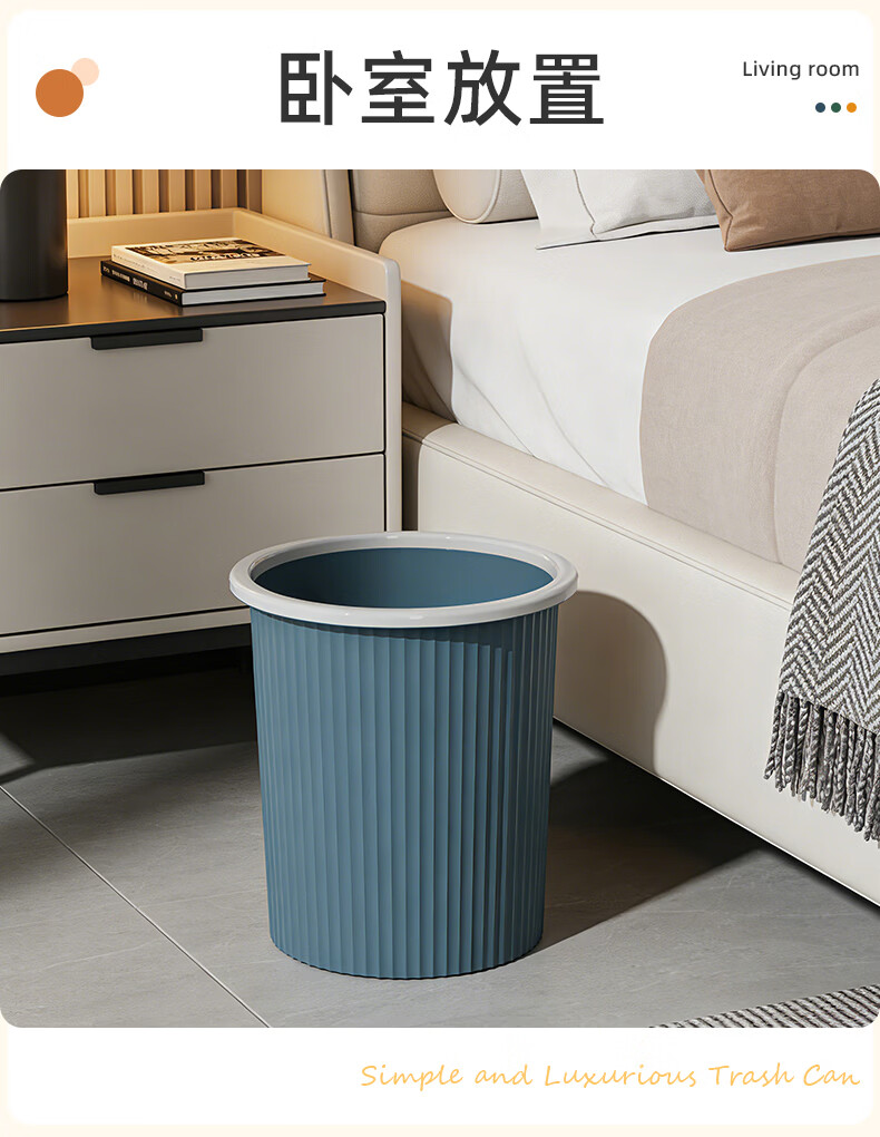 垃圾桶居家厨房轻奢家用卫生间学生宿舍大容量客厅卧室压圈纸篓 (深蓝色)加厚耐摔 中号1个装