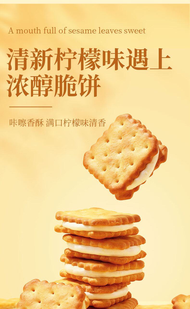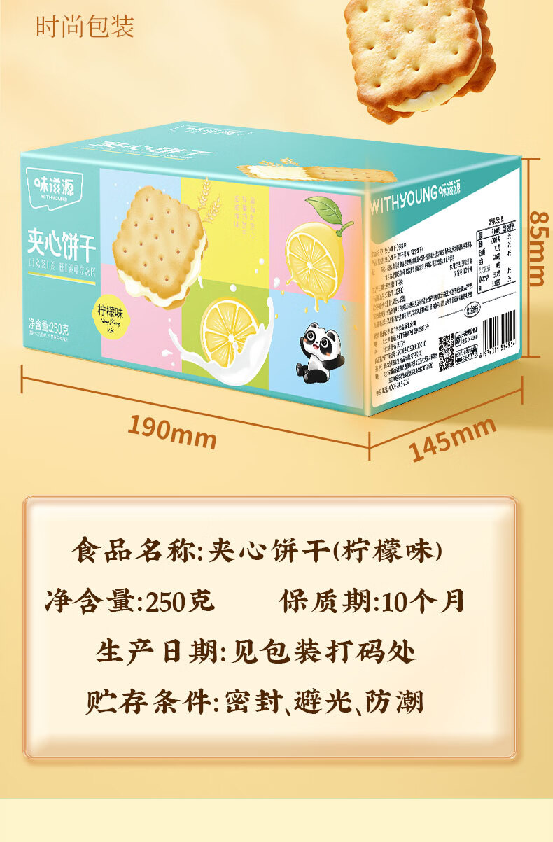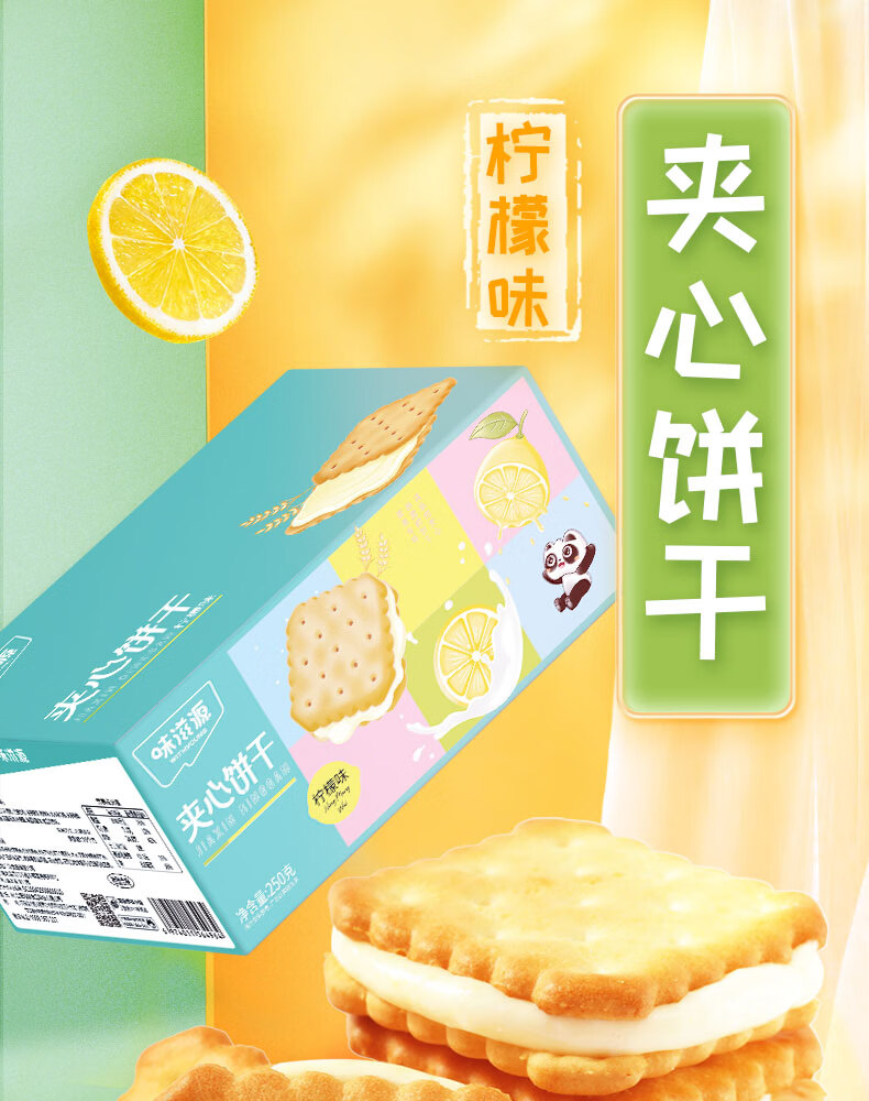 味滋源柠檬味夹心饼干250g早餐食品办公室小吃下午茶点心休闲零食 柠檬夹心饼干250g*3箱