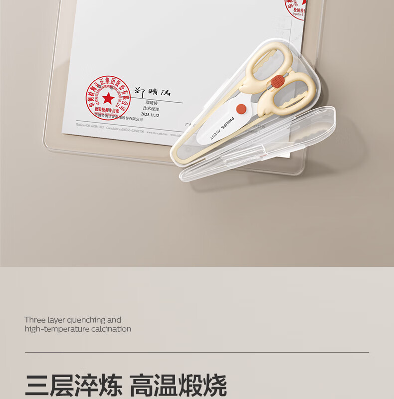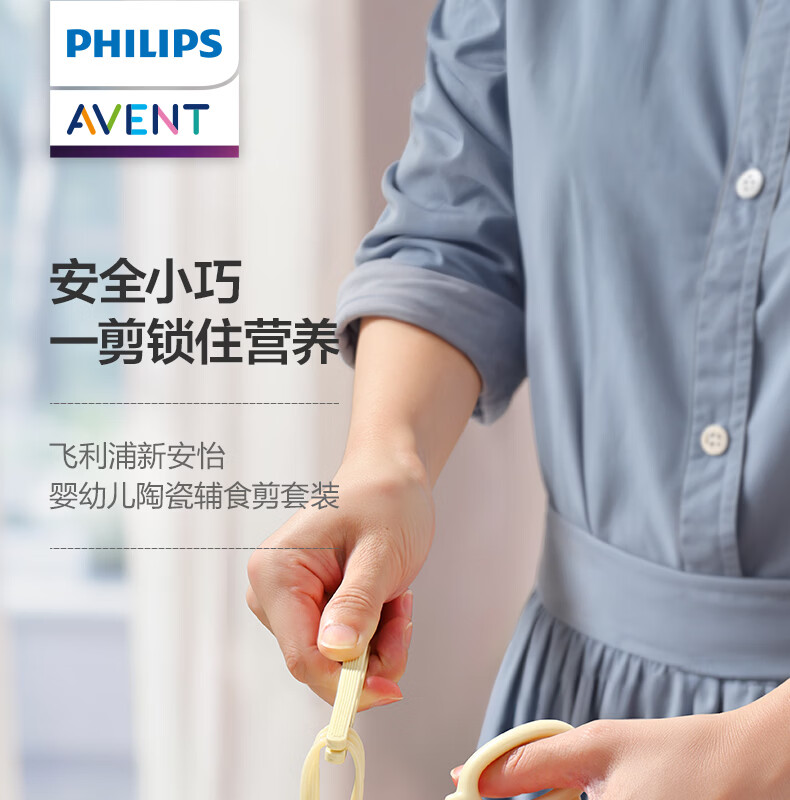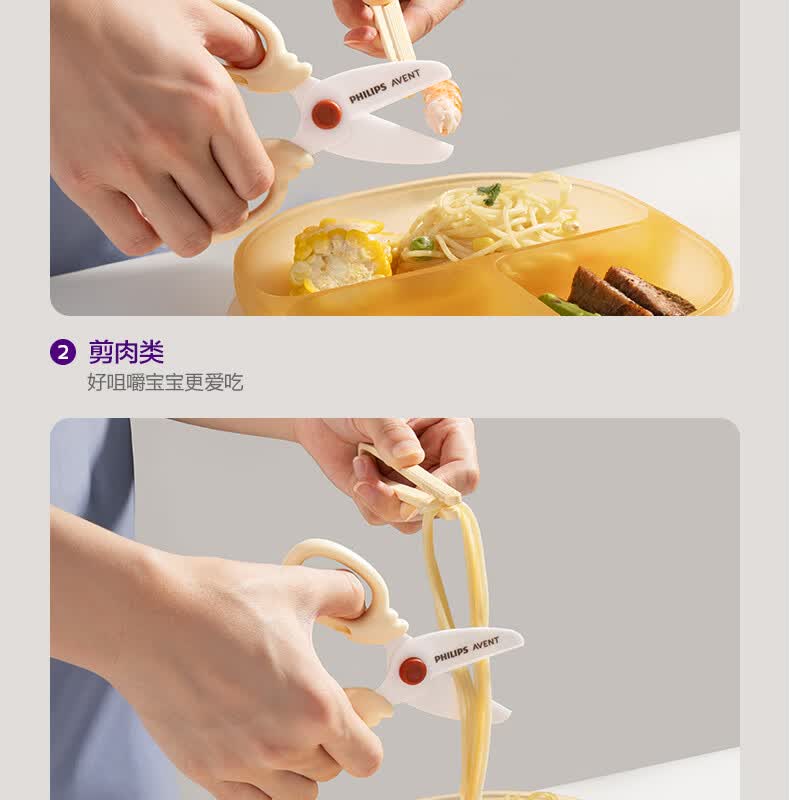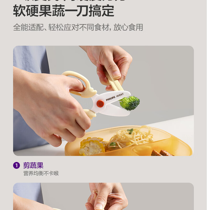 新安怡飞利浦宝宝辅食剪刀婴儿食物陶瓷剪便携带外儿童剪肉菜工具 【升级款】辅食剪刀+食物夹【赠收纳盒】童锁设计