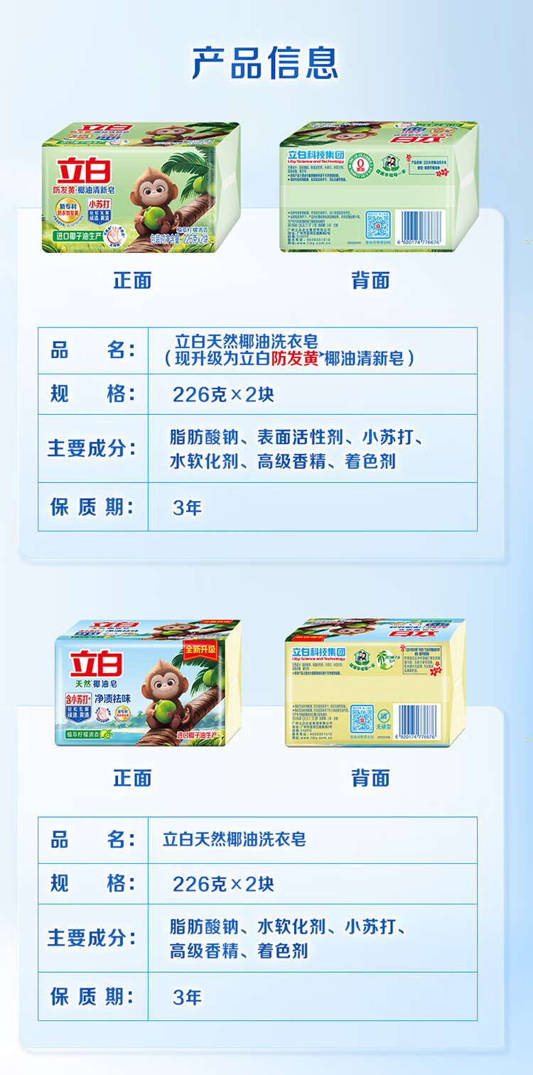 立白馨香洗衣皂 肥皂洗衣皂透明皂肥皂持久留香耐用不伤手多规格可选 101g椰油洗衣皂*1块