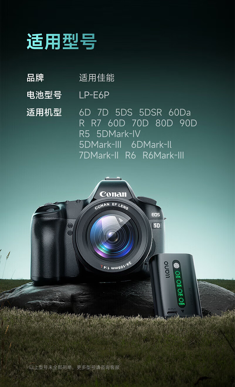 绿巨能(llano)极光电池适用佳能LP-E6P相机直充电池R5 MarkII/5D3/R6/5D4/70d/60d/90d/80d/6D2/5DSR单反2520mAh