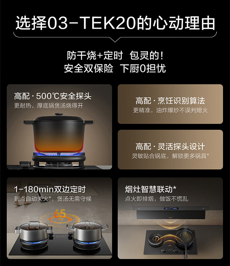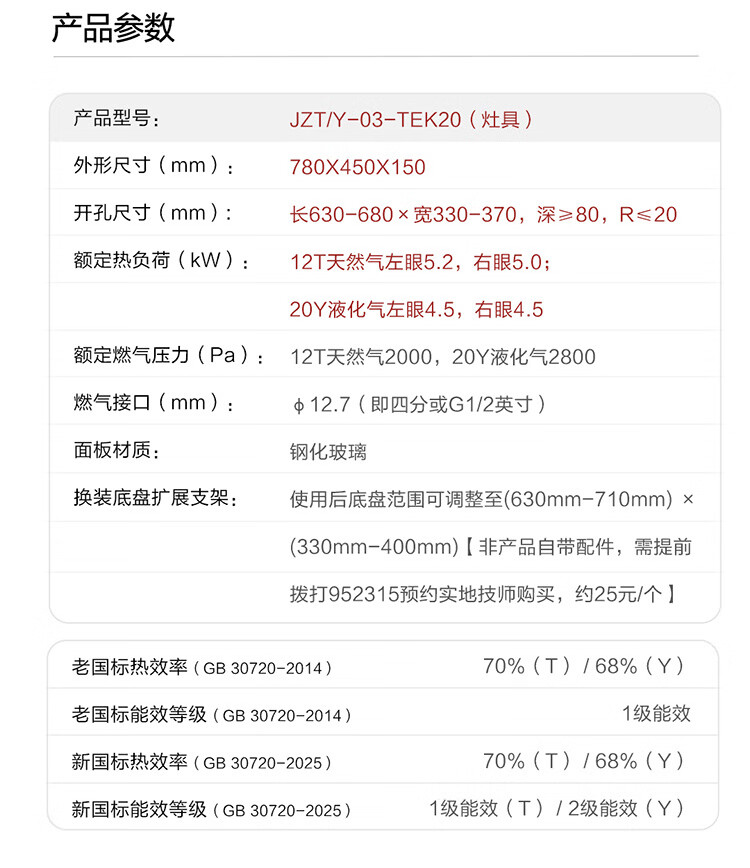 方太(FOTILE)燃气灶03-TEK20系列 天然气5.2kW猛火70%热效率定时防干烧可联动灶具 03-TEK20 4.5火力68%热效率液化气