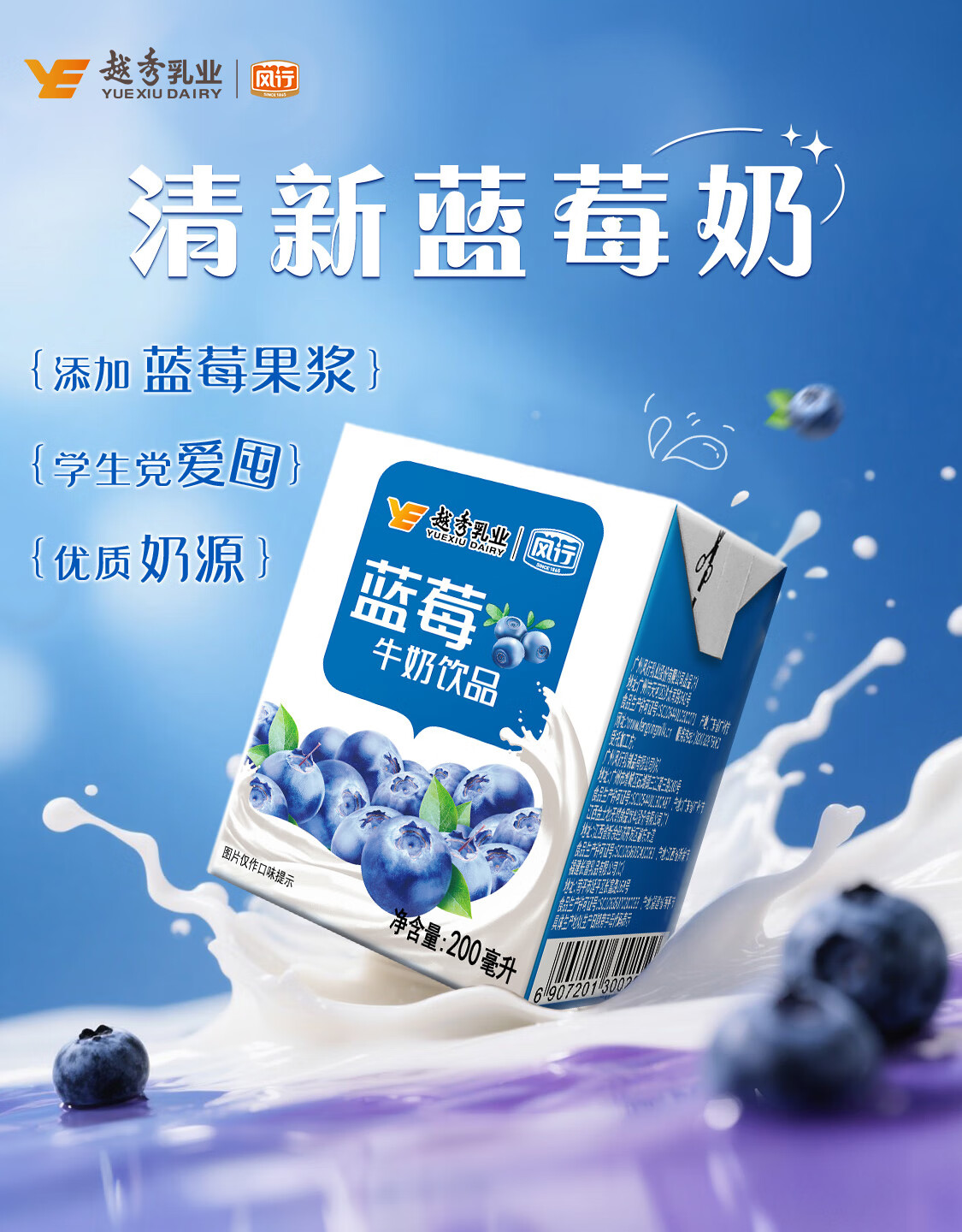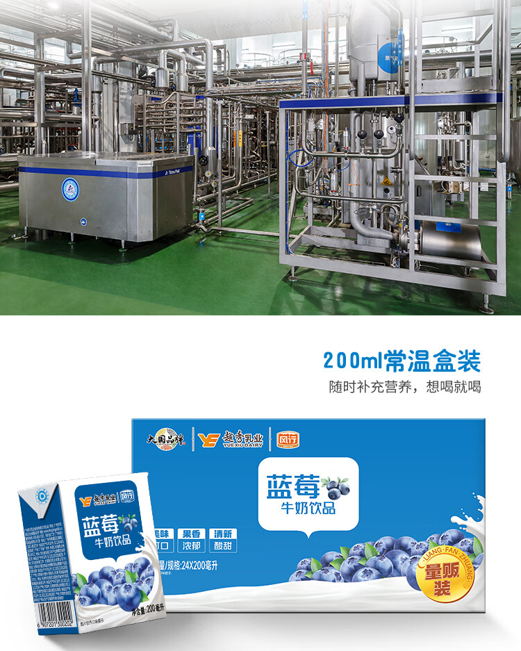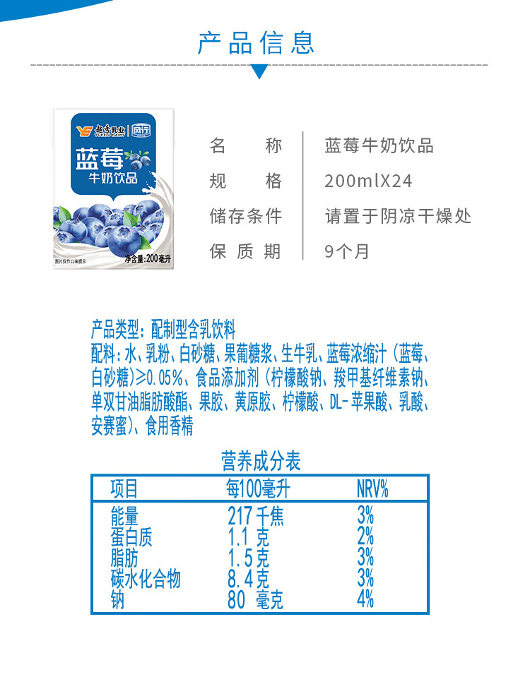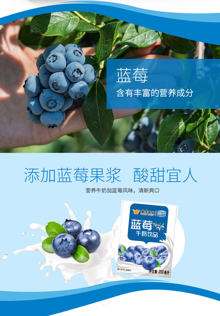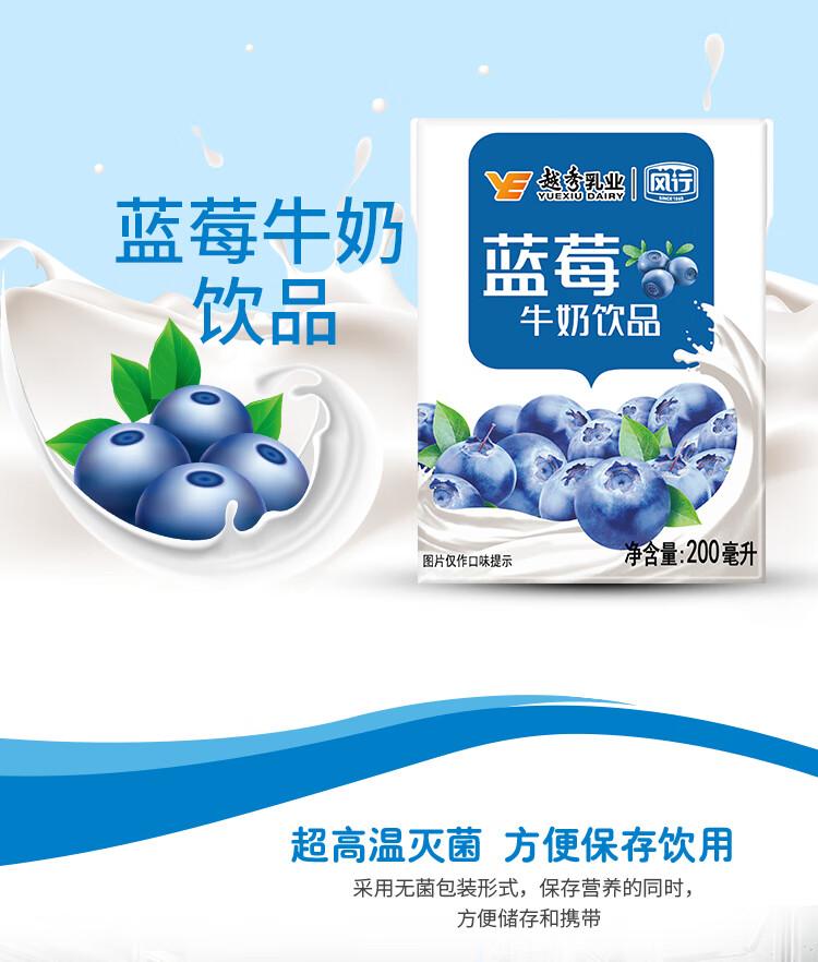 风行蓝莓风味牛奶饮品 200ml*24盒 风味牛奶量贩装团购 礼盒装送礼