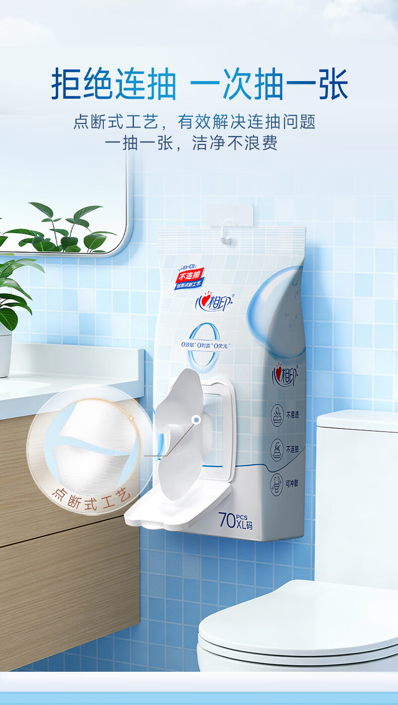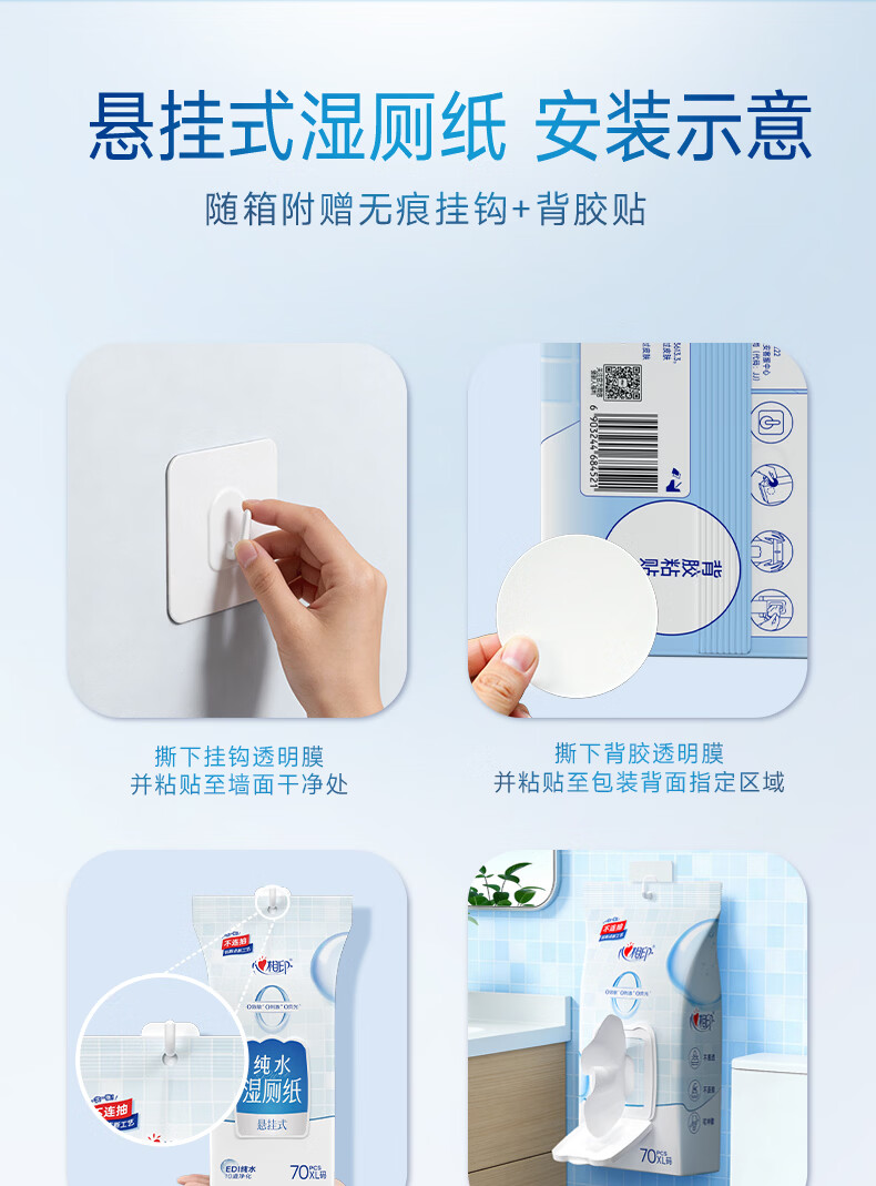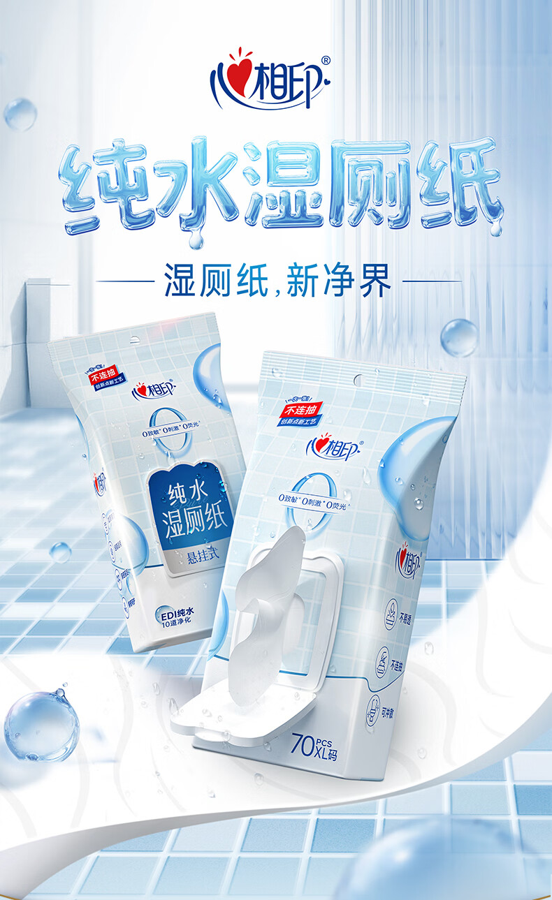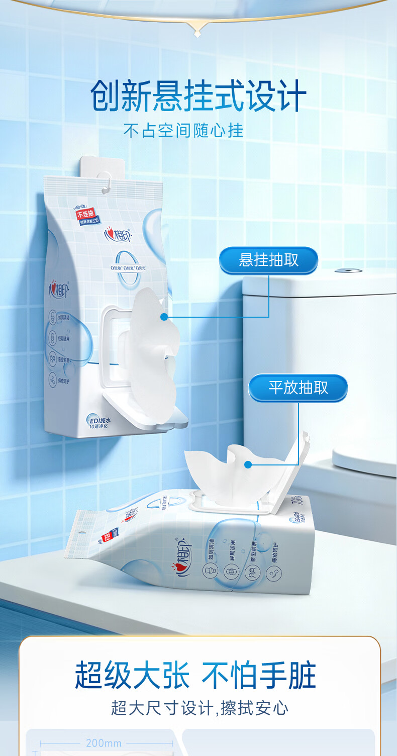 心相印悬挂湿厕纸70片6包XL码 EDI纯水挂式湿纸巾厕纸湿巾卫生纸 家庭装