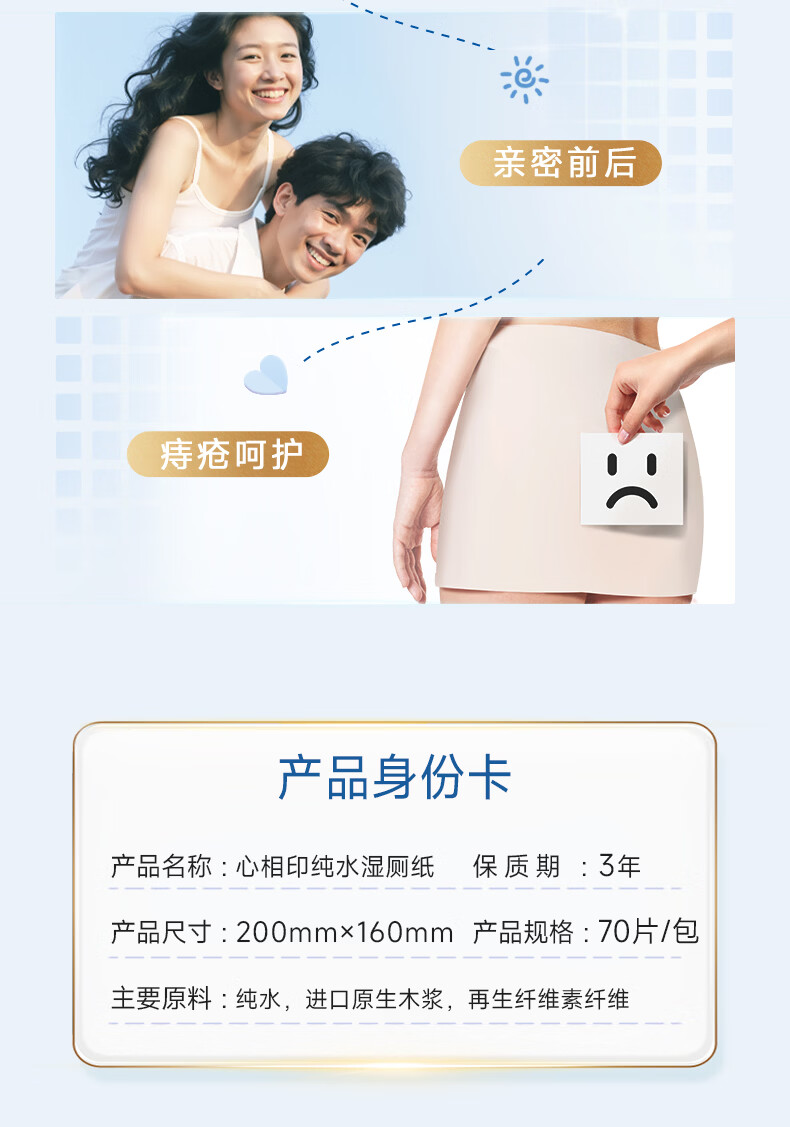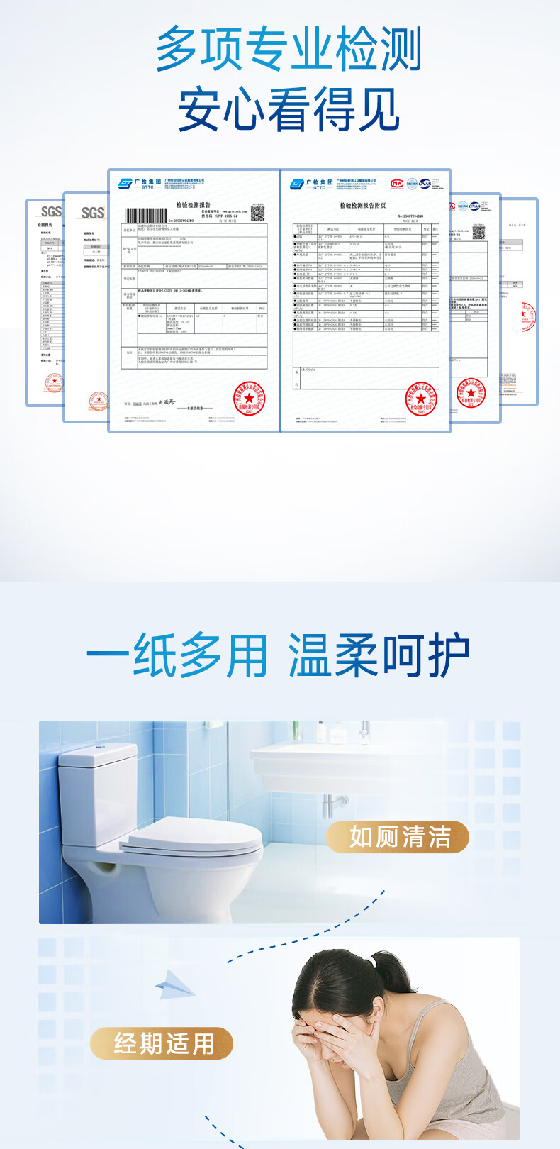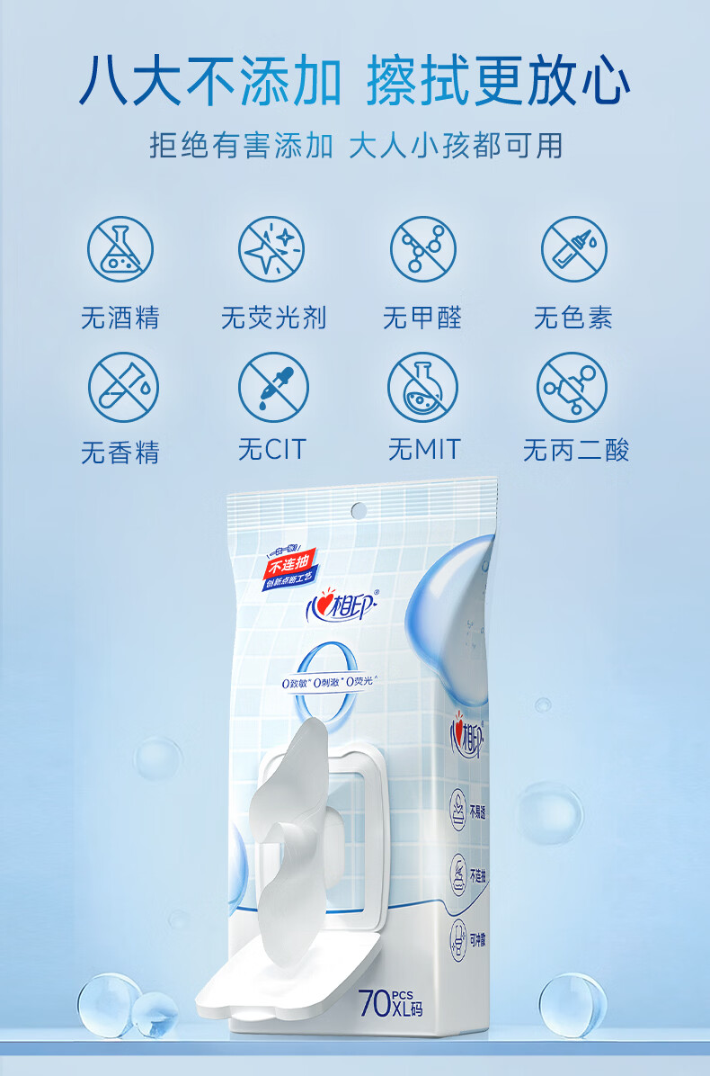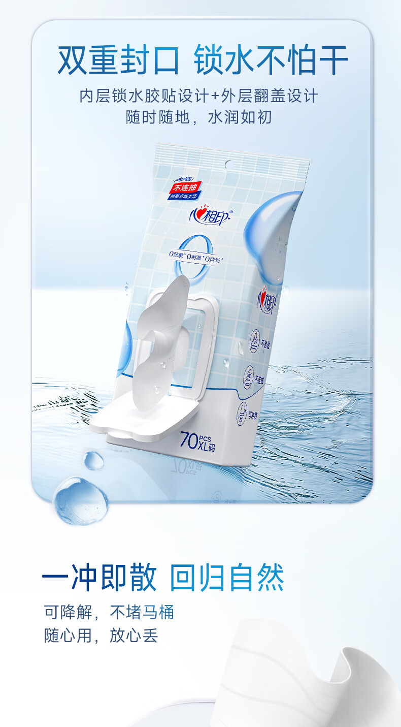 心相印悬挂湿厕纸70片6包XL码 EDI纯水挂式湿纸巾厕纸湿巾卫生纸 家庭装